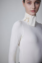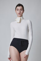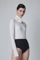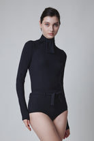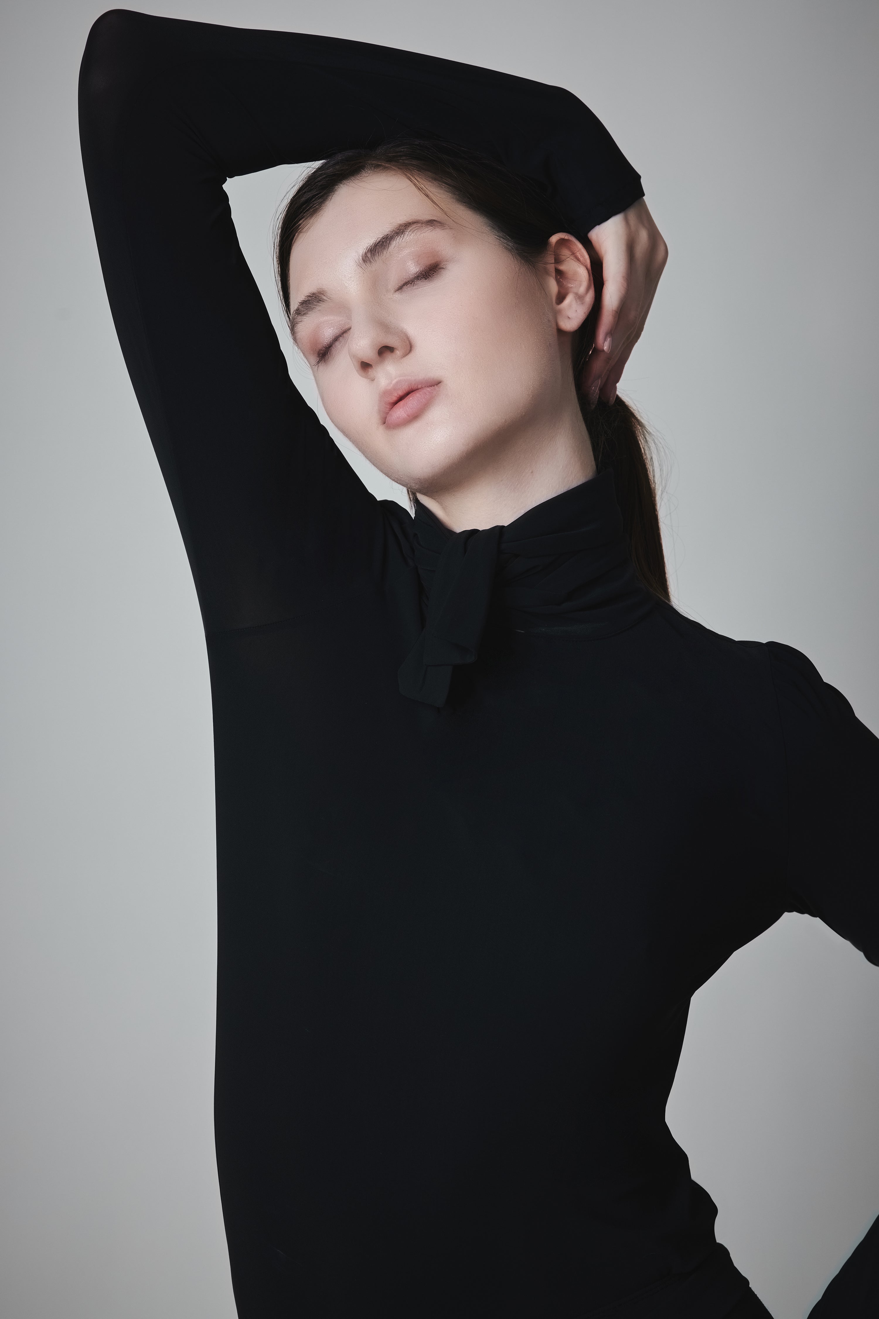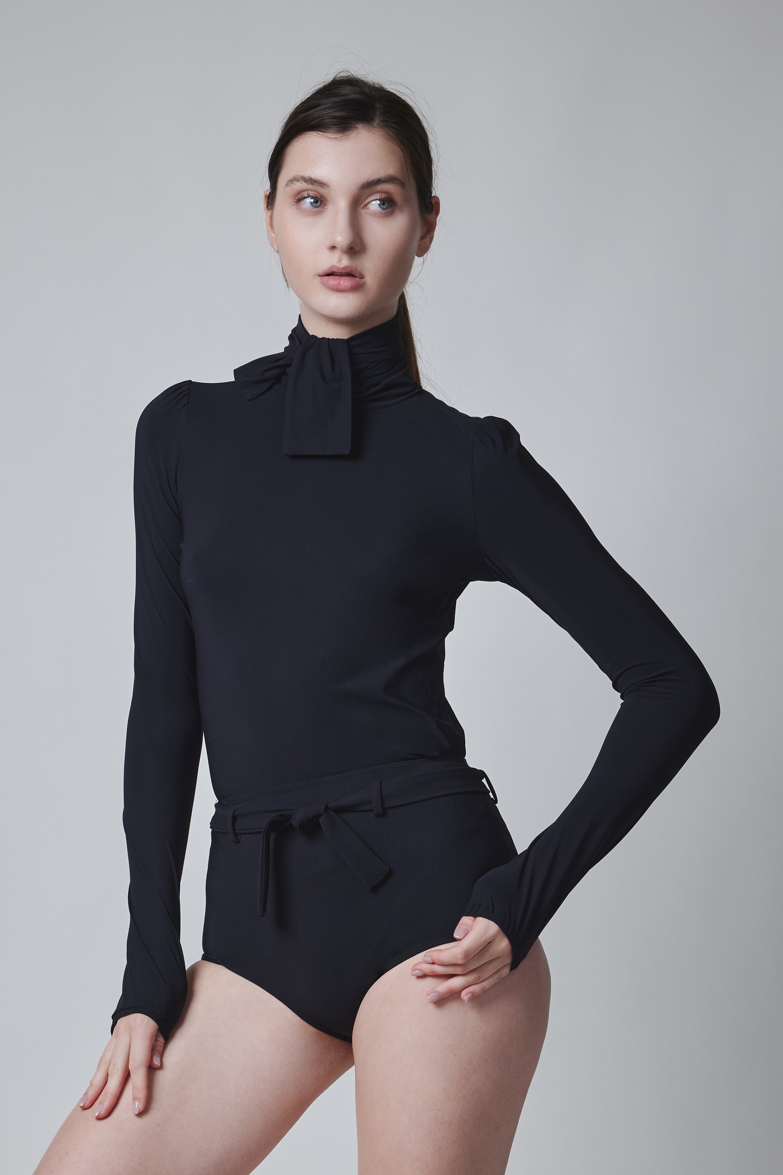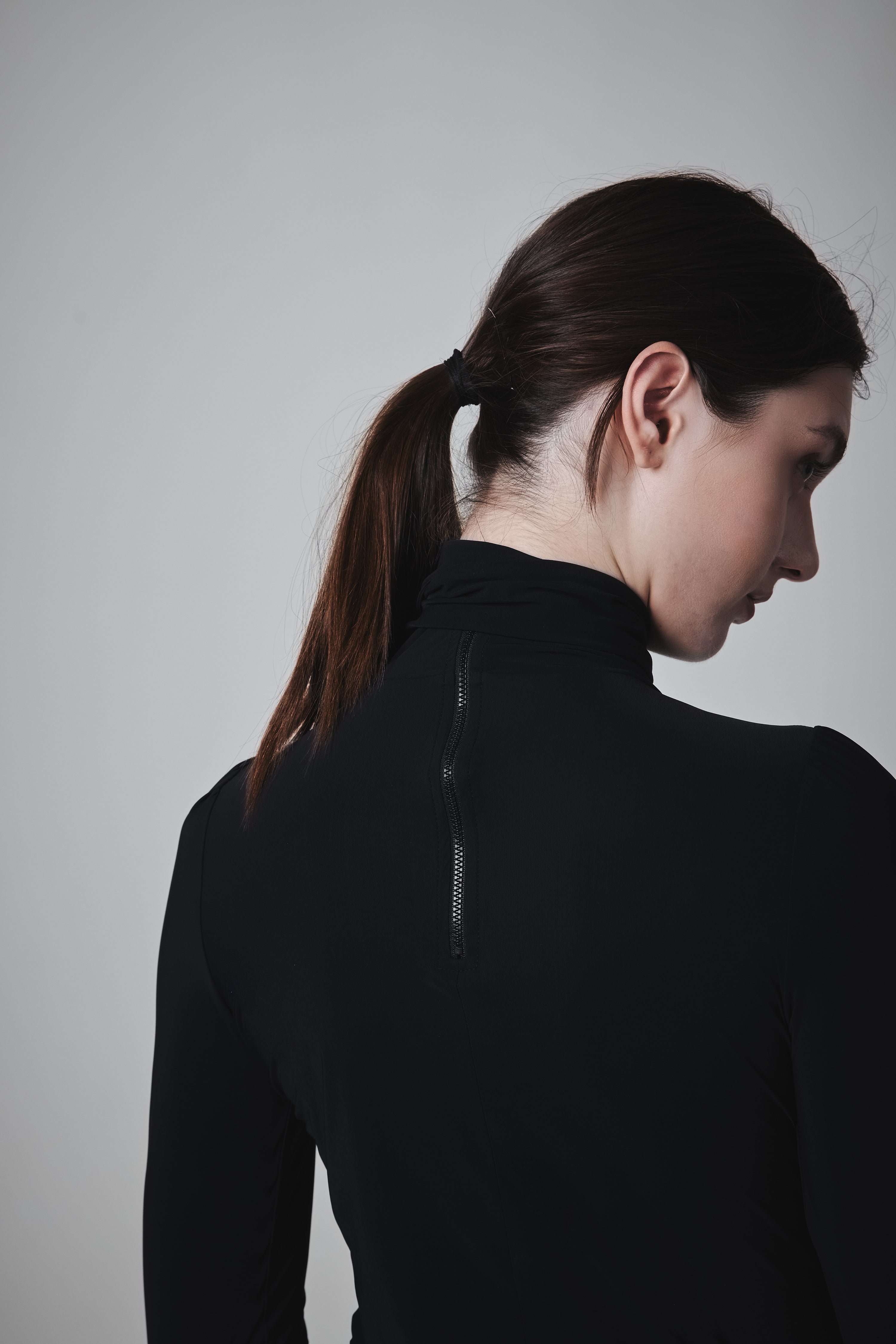 Precisely crafted with our four-way stretch Italian fabric, this extraordinary item redefines neck coverage with a unique twist, literally. You can now adjust the knot freely to decide the actual neck wrapping height, basing on the level of coverage you prefer. Added to this is a back zipper that allows you to slip into it effortlessly.