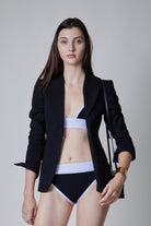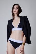 Being the core of the design, the underbust band of this bikini top creates a distinctive line that celebrates the natural curvature of the body. Adorned with our logo monogram, the subtle support of the band guarantees a secure and comfortable fit.
