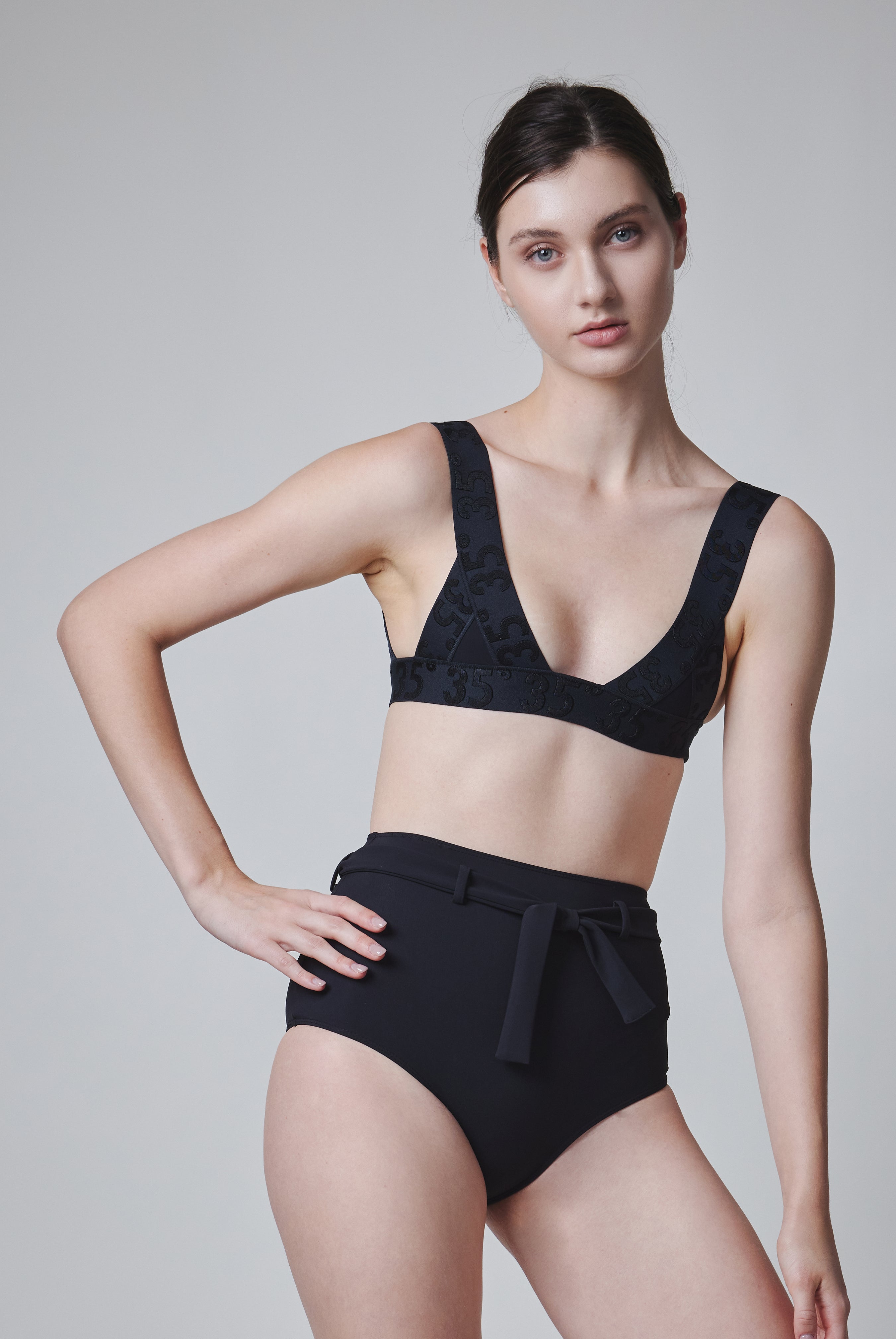 Our signature product. Adorned with our logo monogram pattern, the straight lines of the band form the cups, shoulder straps and underbust band, embodying an exceptional chic appeal. While showcasing the visual captivation that’s so distinctively 35°, this bikini top gives you a secure and comfortable fit.