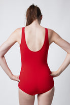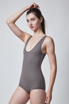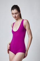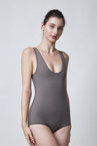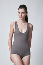 One-Piece Swimsuit with Low Exposed Cut. Front Silhouette Embrace.