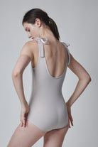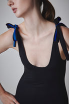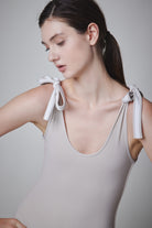 By lowering the front cut, this one-piece swimsuit creates a graceful aesthetic that frames the neckline and highlights the natural curves in a restrained style. Accentuating the front cut with its basic graphic form, the Round Neckline with Adjustable Shoulder Straps represents a subtle yet powerful expression of chic modesty. Precisely crafted with our four-way stretch Italian fabric, this item is characterised by the voguish knot on the straps as well as a full-coverage bottom design for a complete, sculpted fit of your hip.