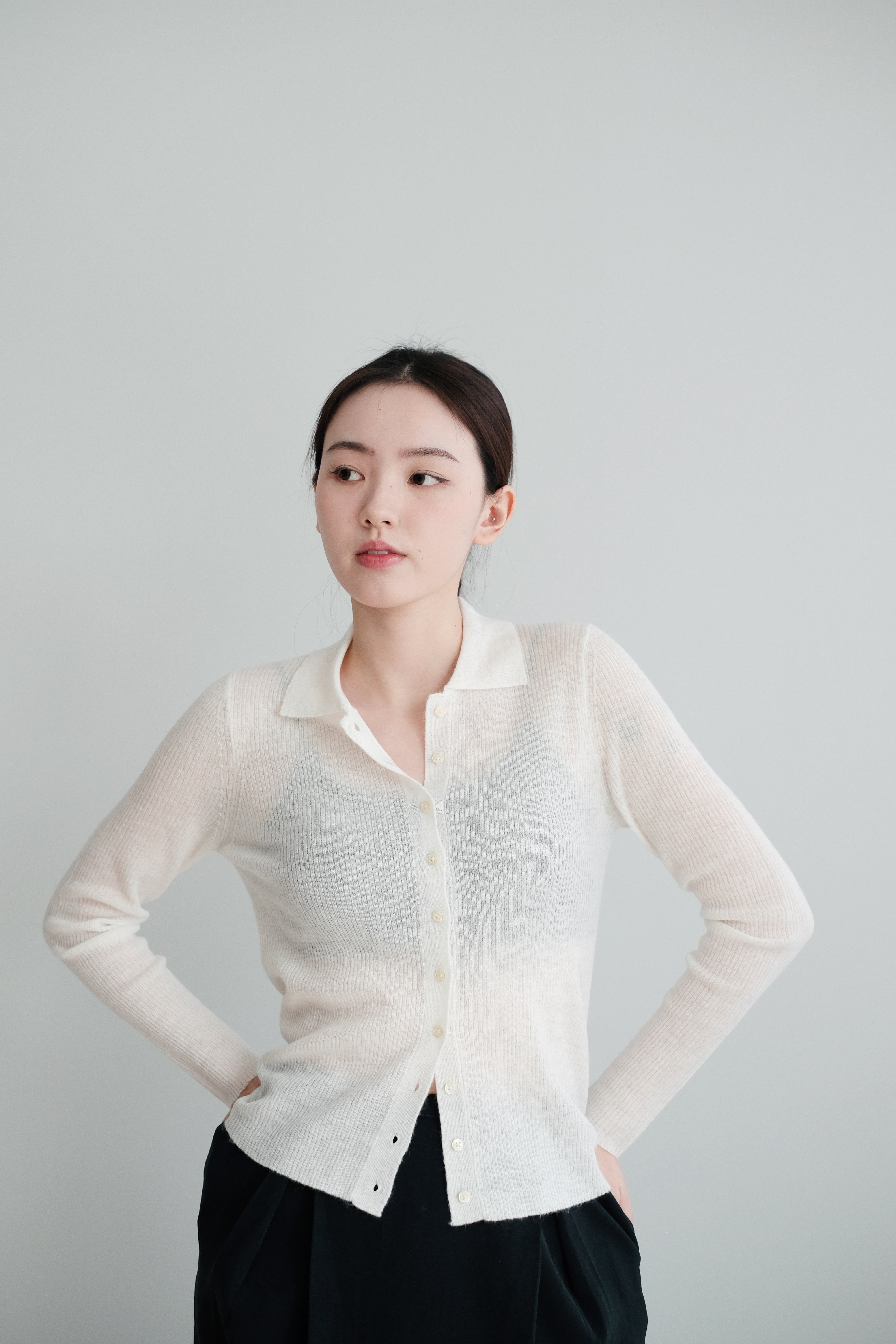 This mohair cardigan is light as air, crafted with a fine mohair blend that feels incredibly soft and gentle on the skin. The subtle transparency and natural sheen of the knit bring out an airy, elegant texture. With a slim fit and button-down front, it strikes a perfect balance between refined and relaxed, ideal for layering or wearing on its own.
