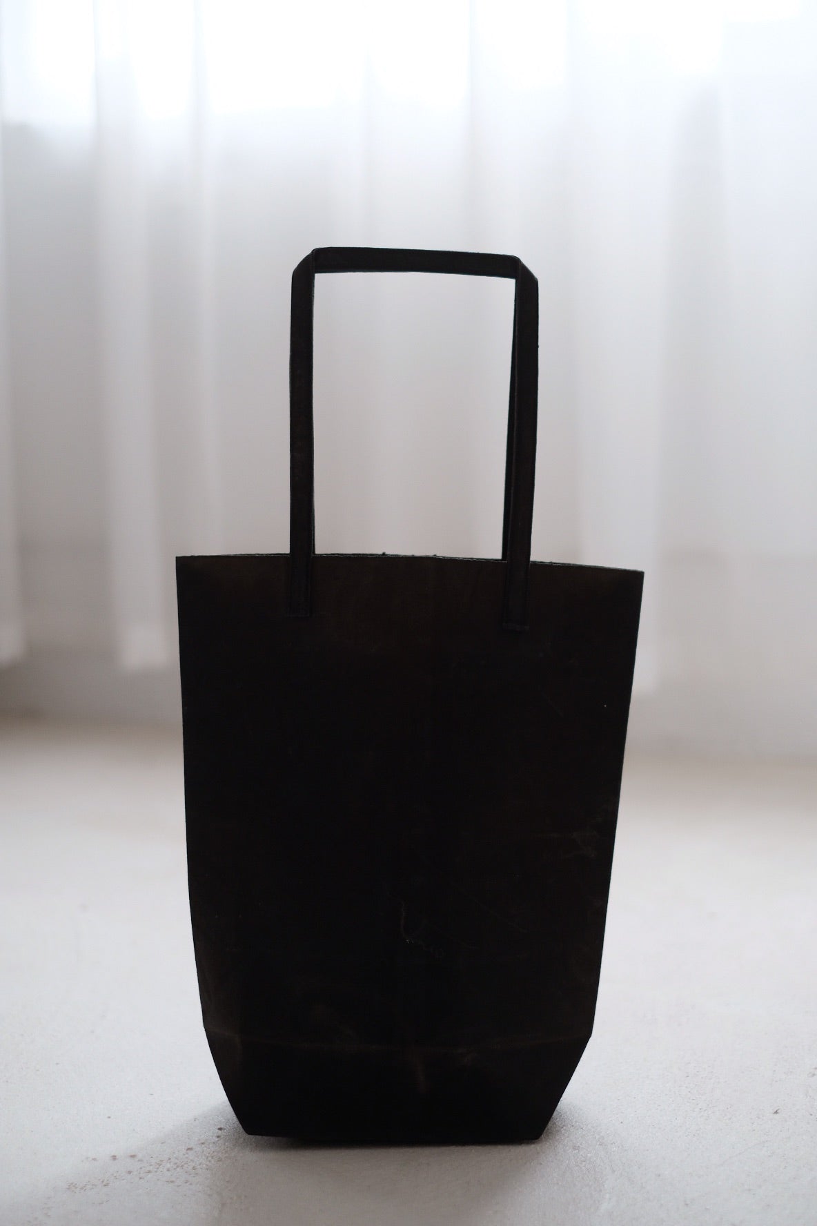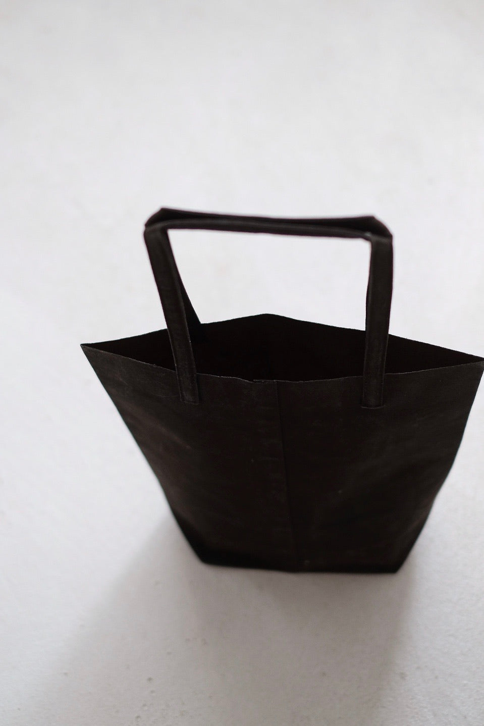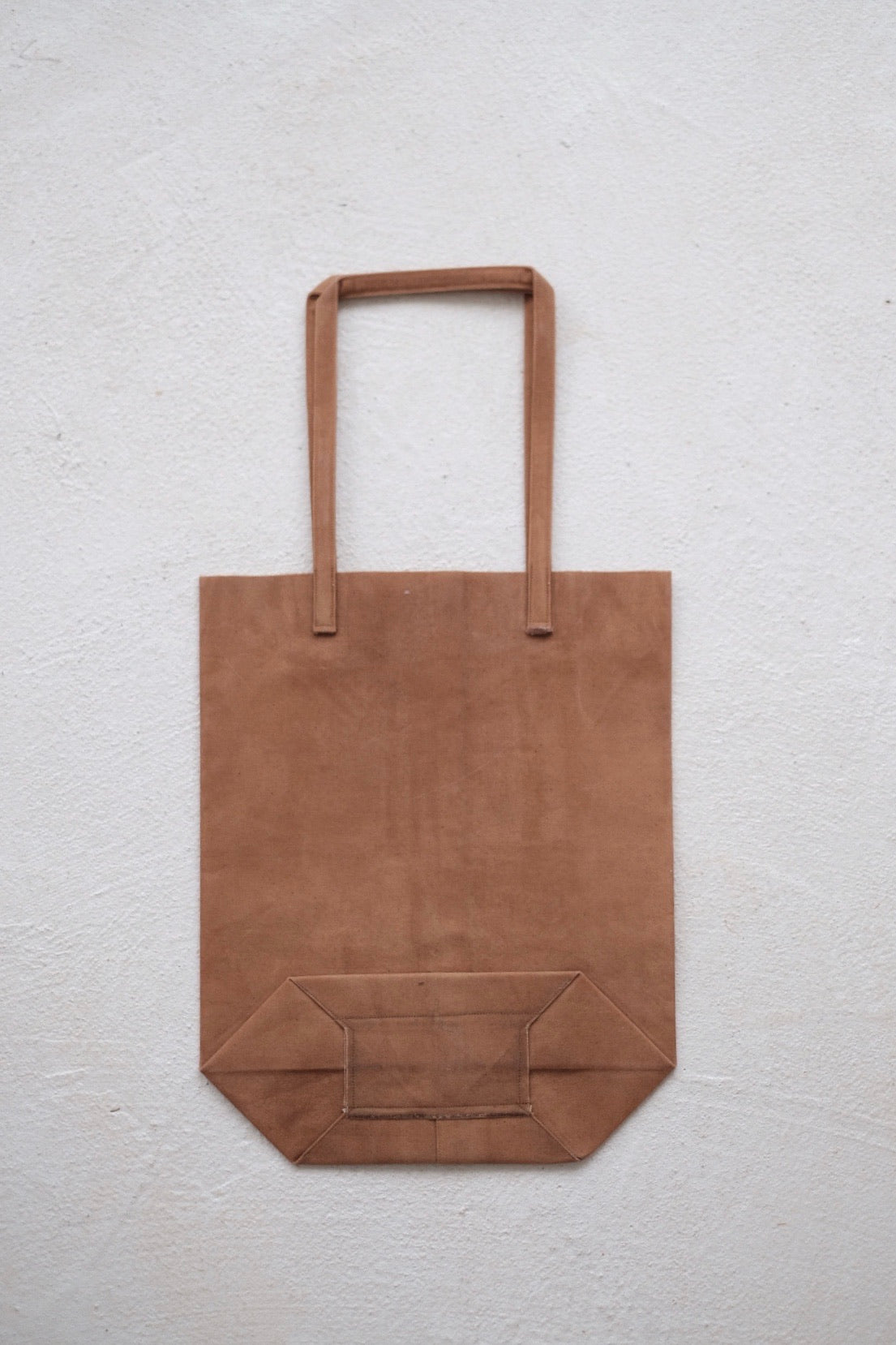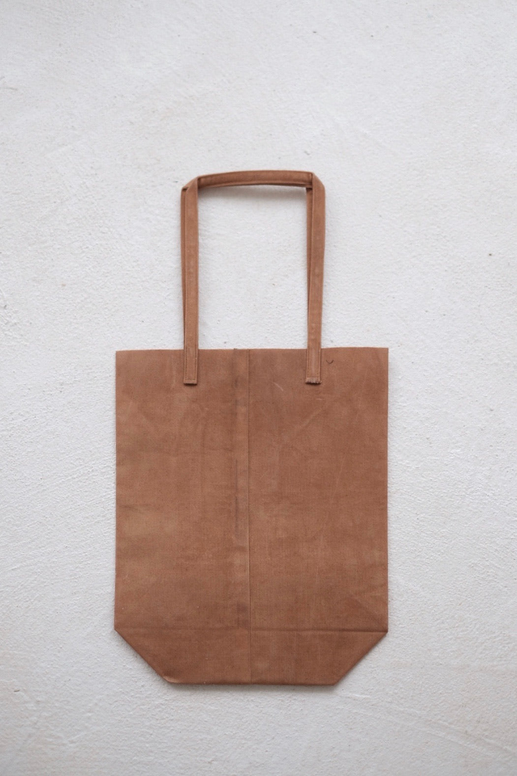 Kazumi Takigawa's original line of dyed and waxed canvas bags took their inspiration from the plain brown paper bag. Wanting to mimic the look of ordinary brown paper bag while creating something re-usable and long lasting Takigawa's experiments led her to a process that includes a traditional dyeing technique and the use of tea and coffee as dyes.
