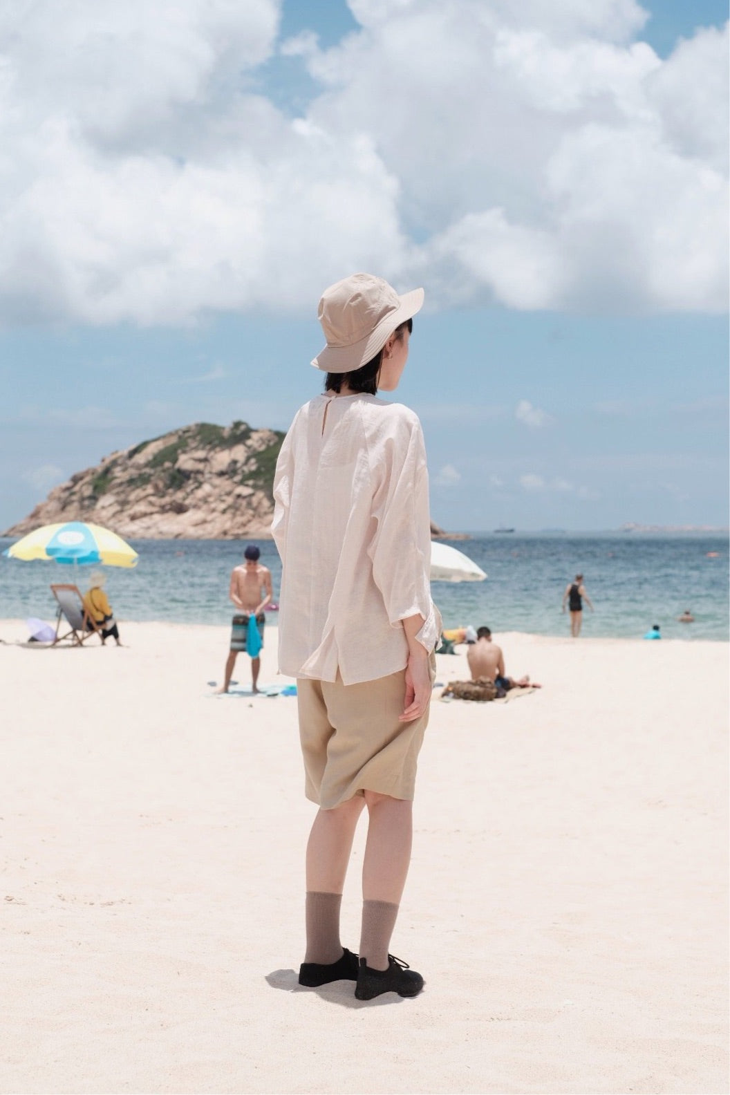 ARIA PLEAT-DETAIL SHORTS (BEIGE)