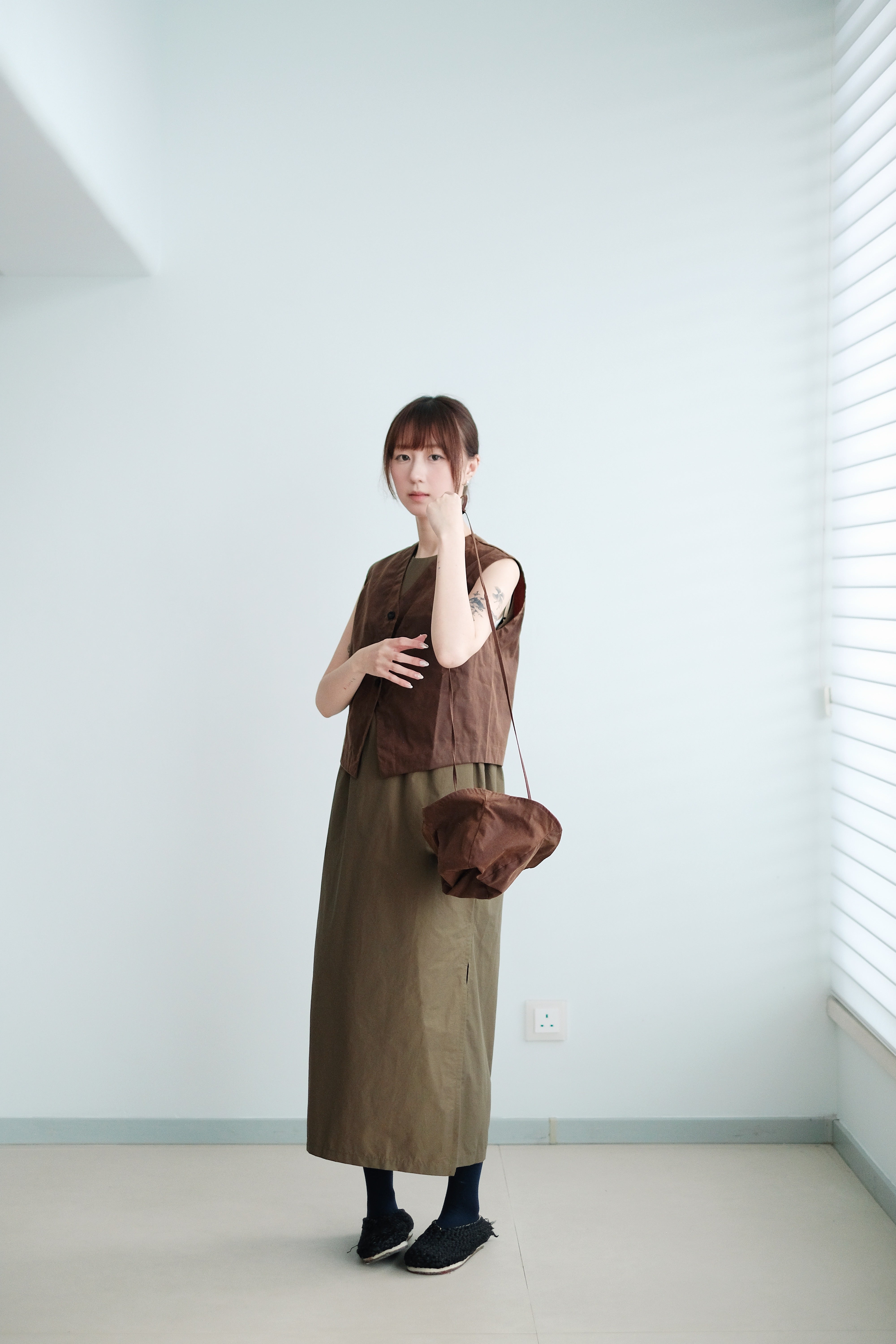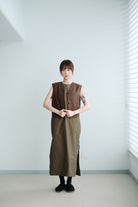 Crafted from waxed cotton fabric, this vest has a subtle matte sheen and a slightly structured touch. The wax finish adds a unique texture that feels both soft and resilient, giving off a quiet vintage charm. Perfect for layering over shirts or tees, it enhances the silhouette with depth and balance — a timeless piece that blends rugged character with everyday simplicity.