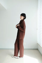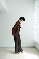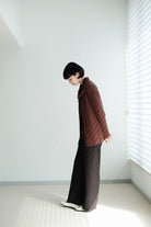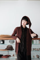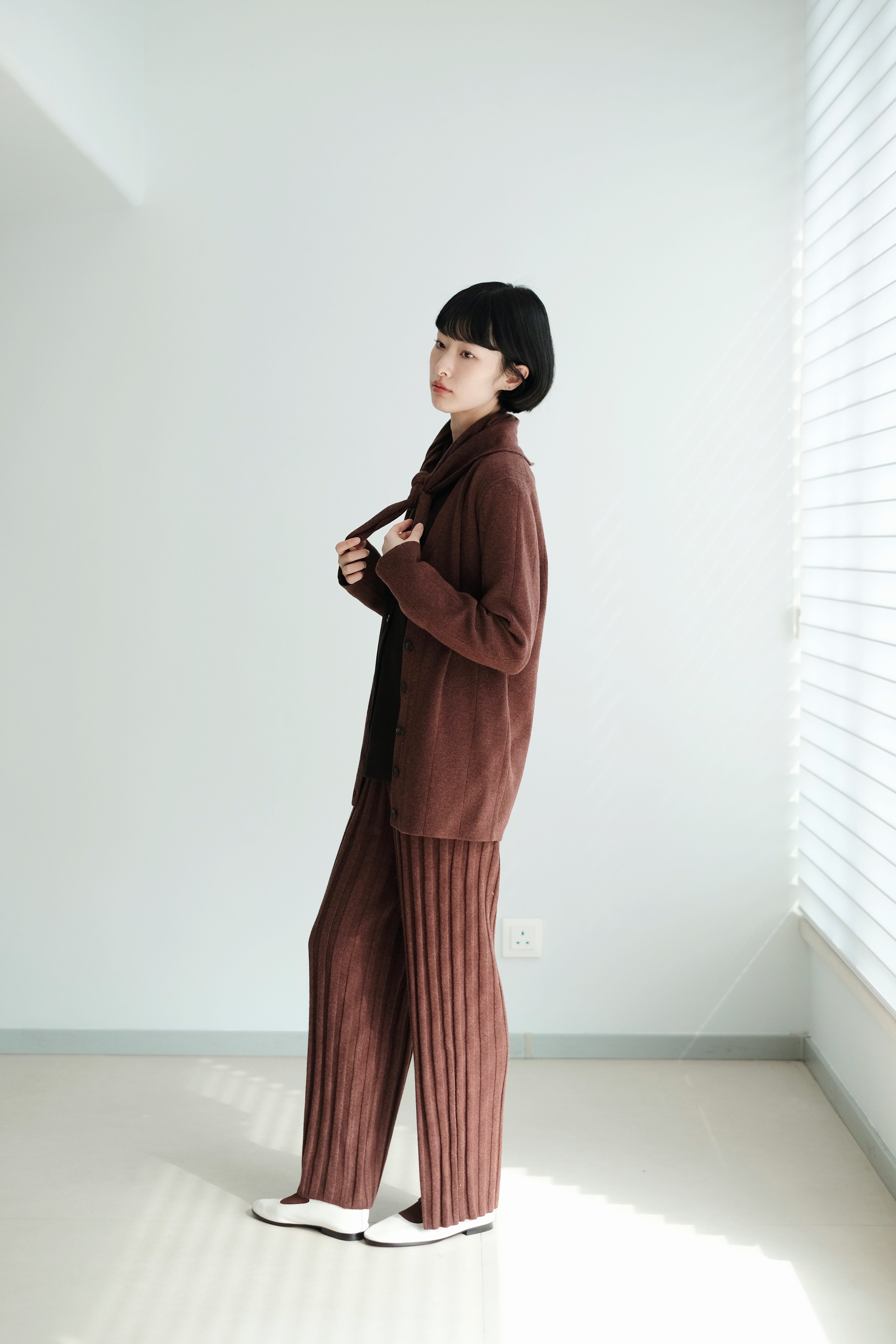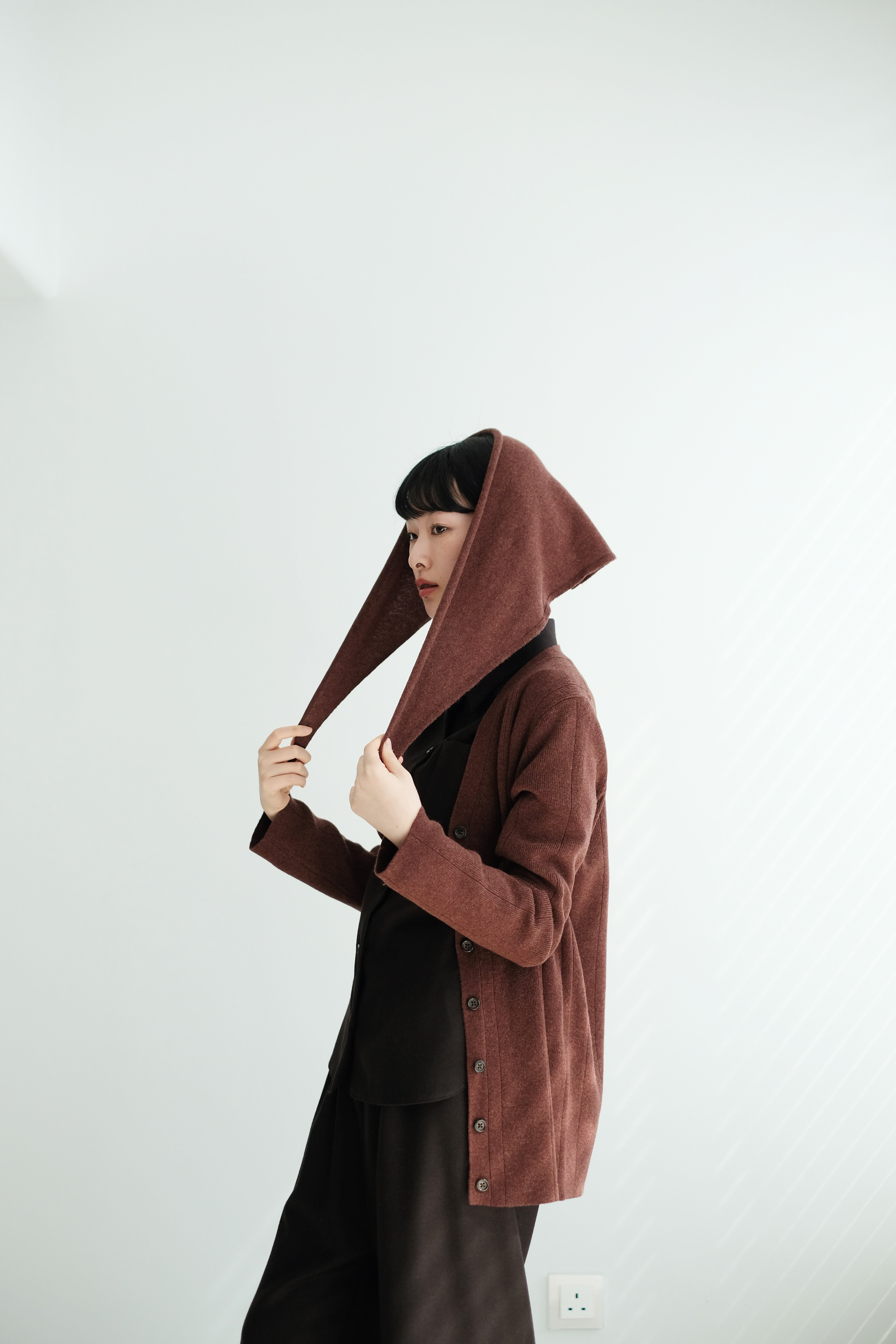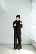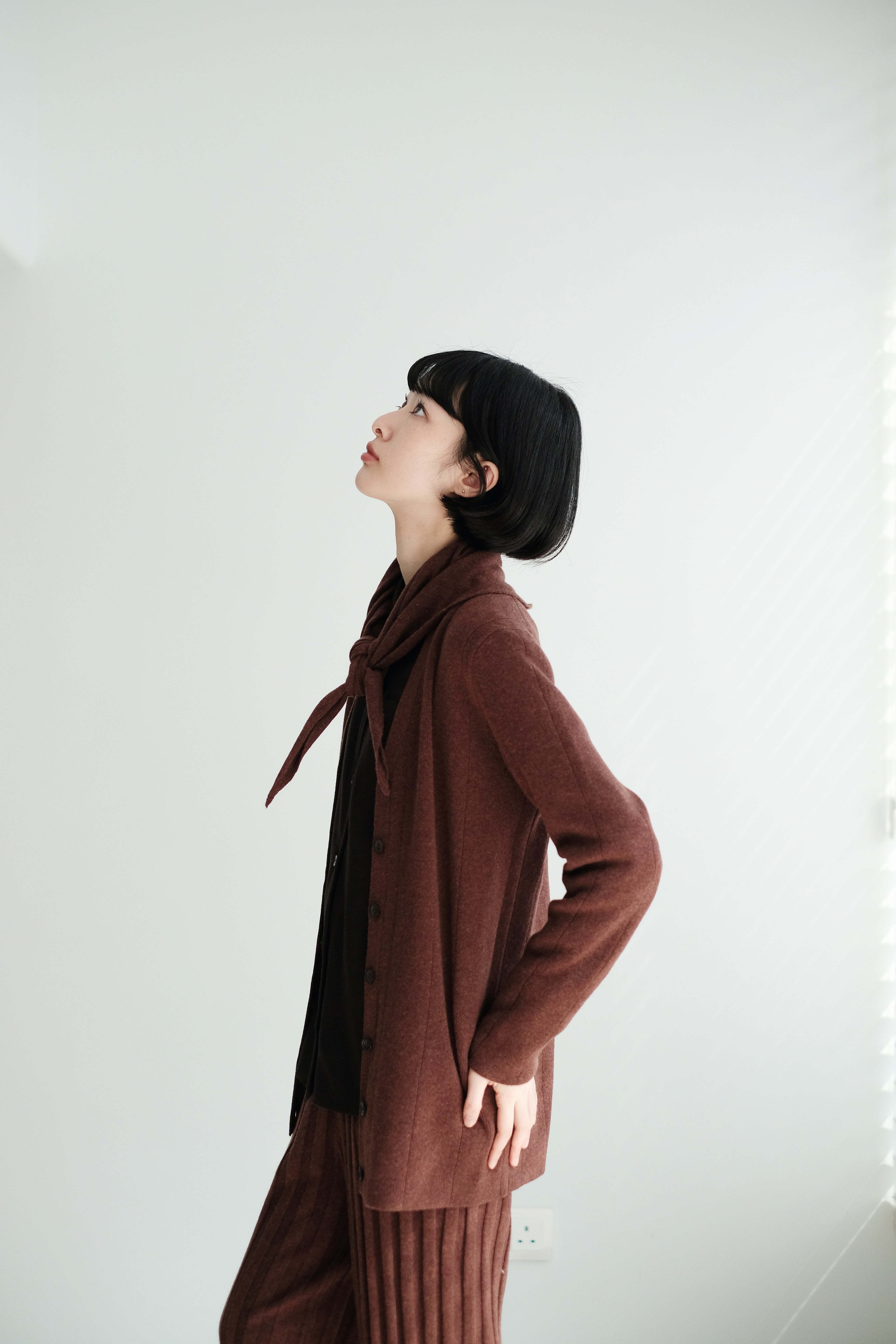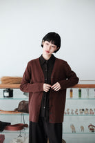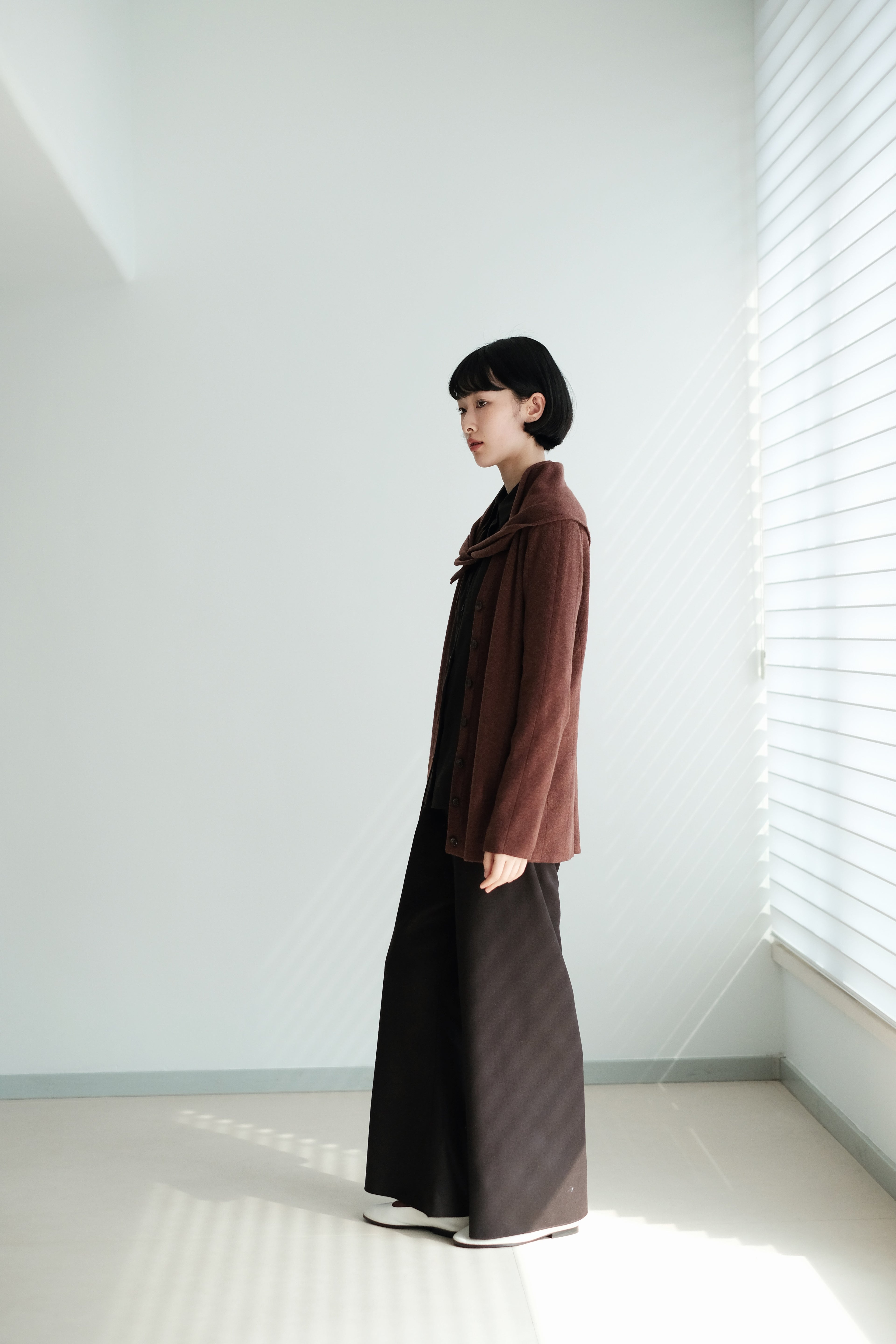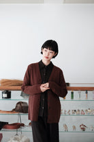 Designed with a relaxed straight silhouette, it features a natural dropped shoulder and refined back panel seams that create gentle structure. The multi-button front allows for versatile styling, perfect over shirts, vests, or turtlenecks. The warm reddish-brown tone adds a quiet sophistication to any autumn–winter look.