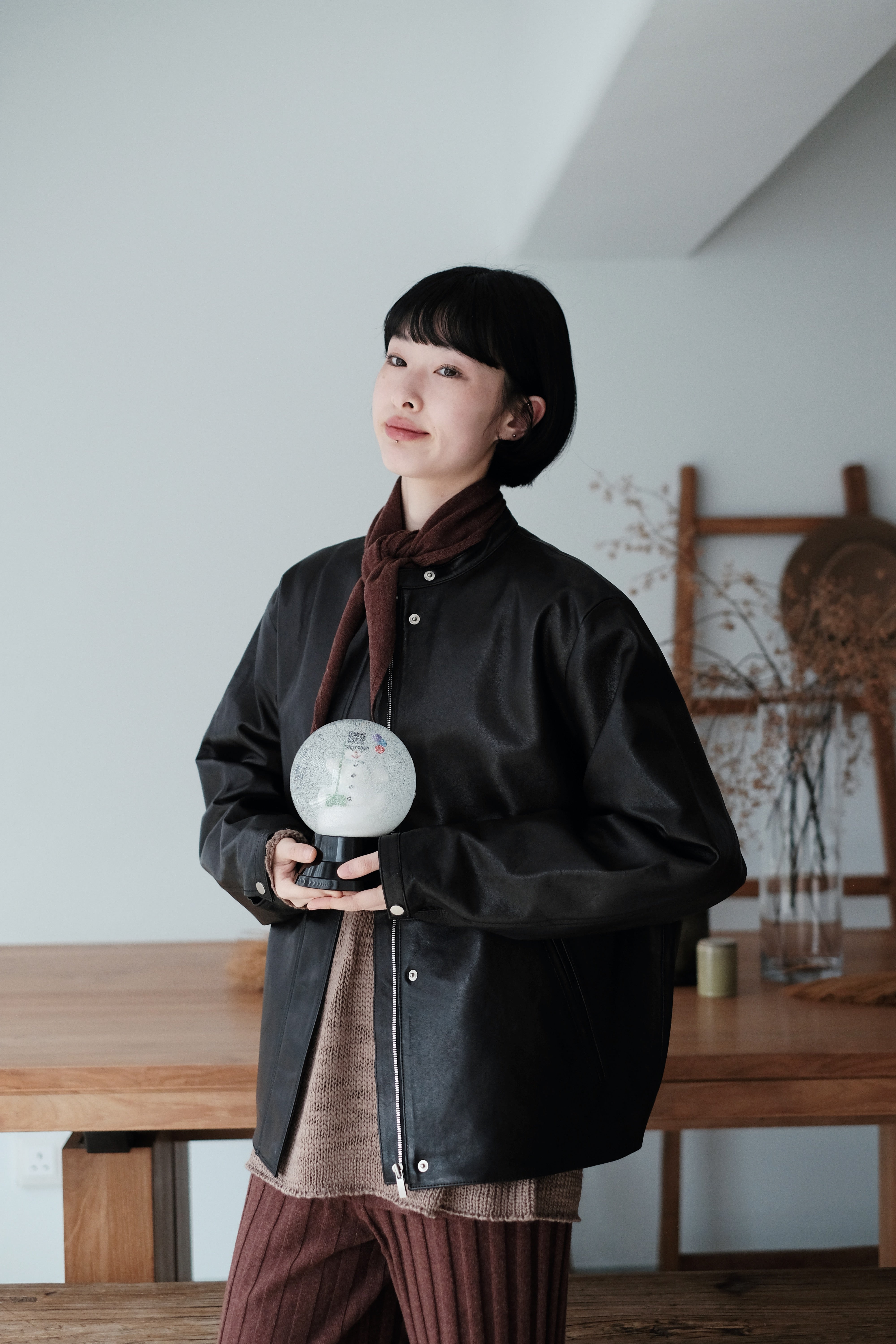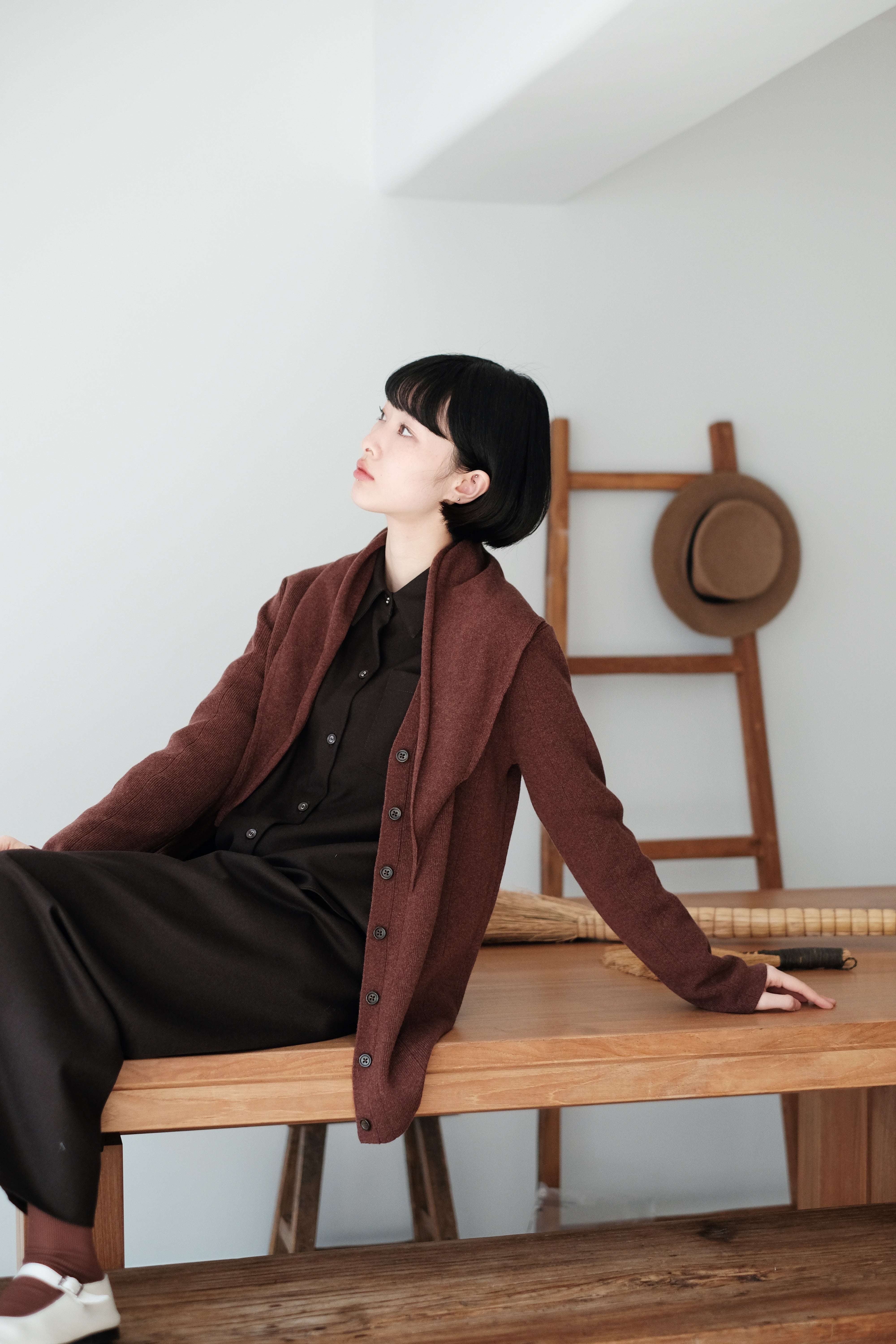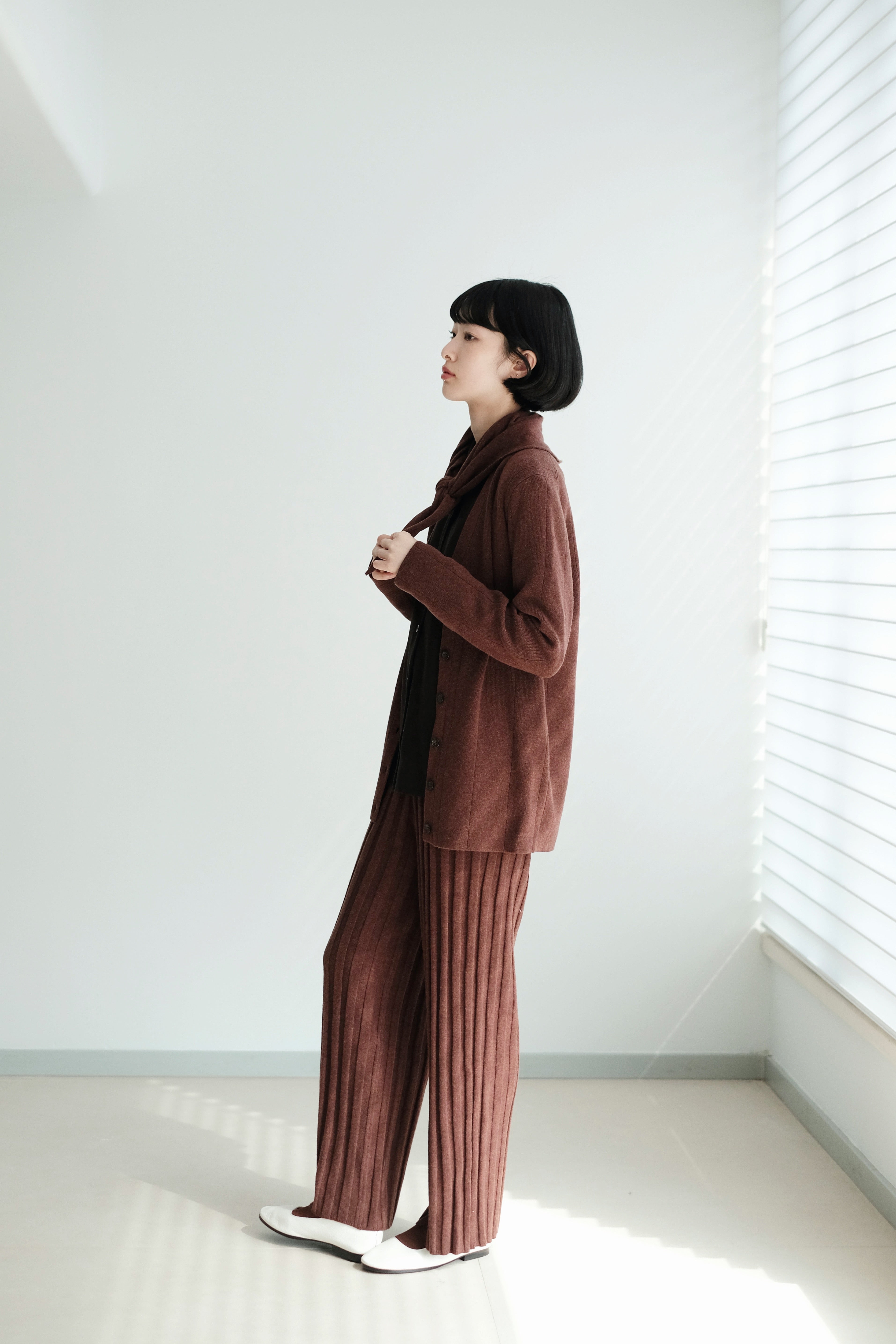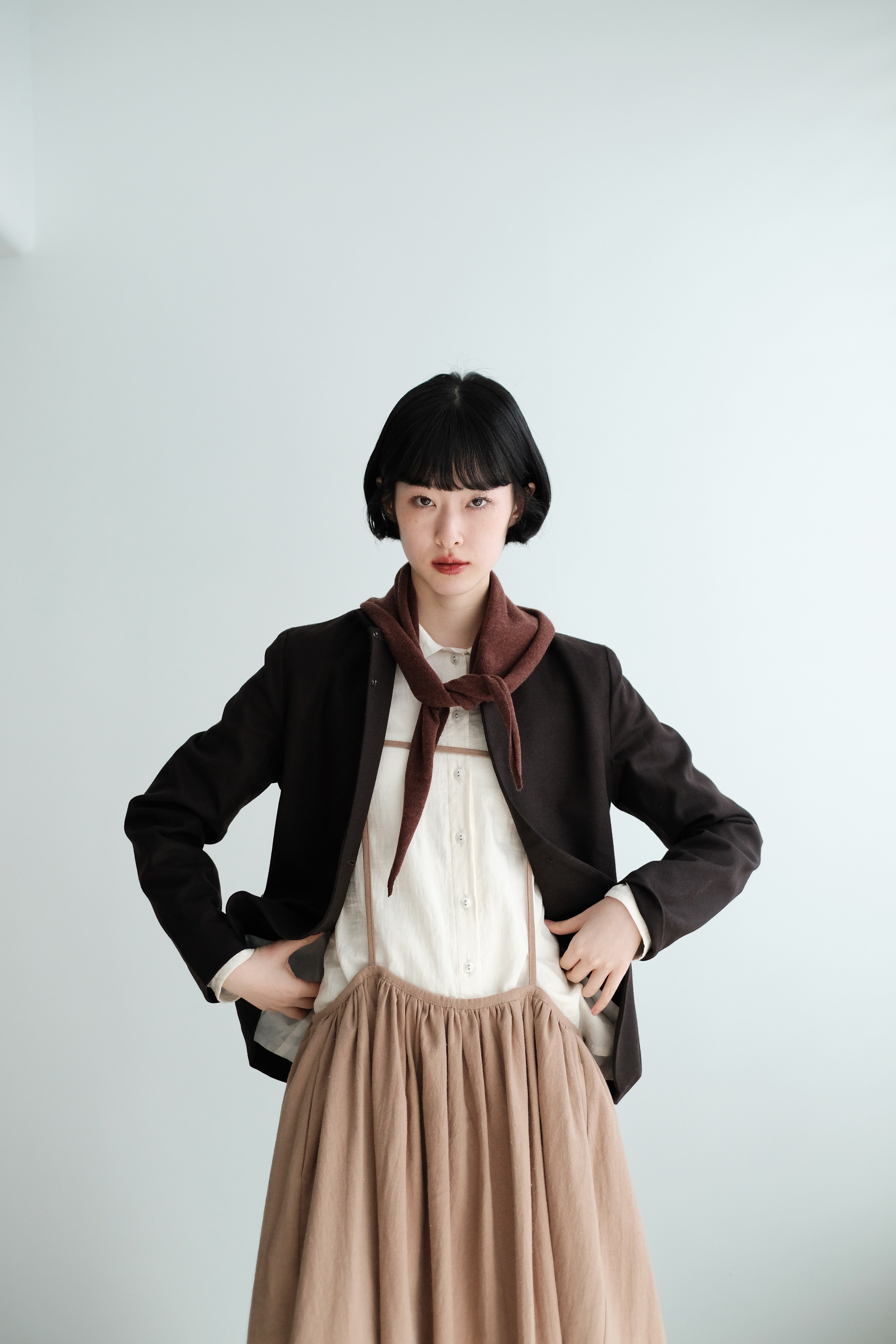 This mini scarf is crafted from a soft cashmere-blend yarn with a lightweight, refined touch. Its compact size makes it easy to style without feeling bulky. Perfect as a subtle neck accessory, a warm layer, or casually tied over the shoulders—simple, versatile, and ideal for everyday winter styling.