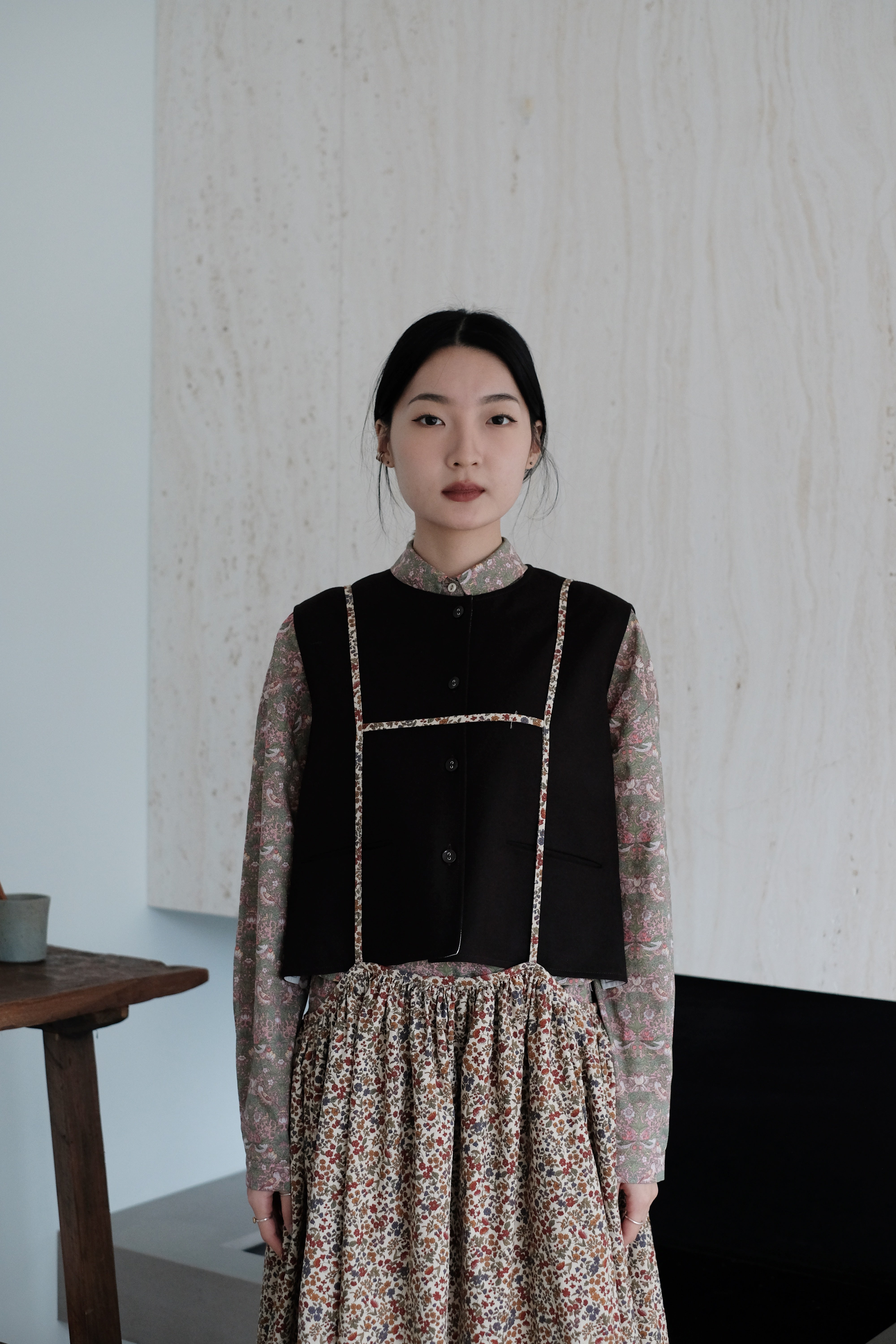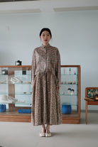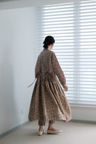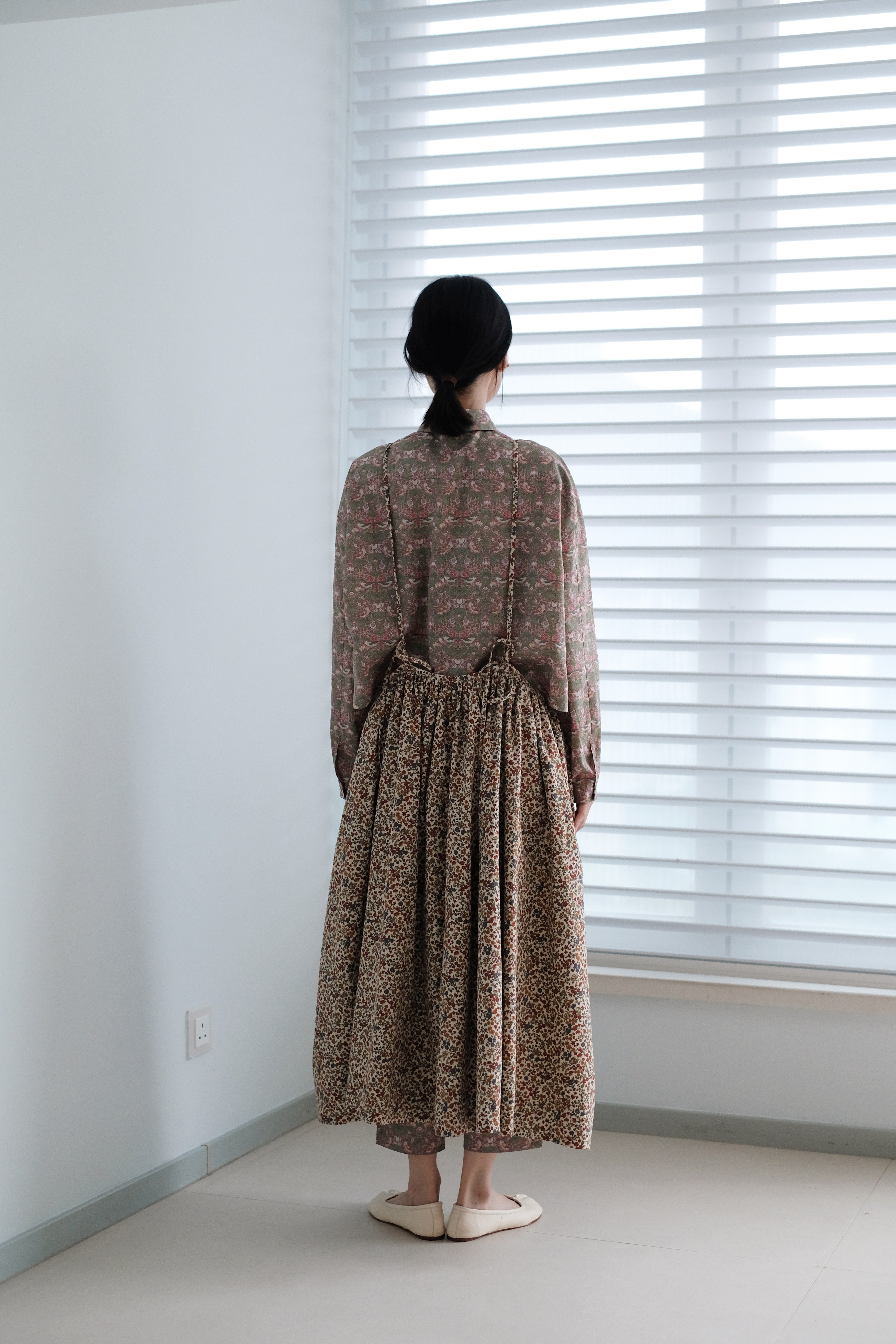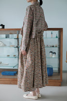 A gentle autumn breeze turns the once lush green foliage into a meadow of chrysanthemums and marigolds, their vibrant yellows and deep burgundies, swaying softly in the cool air. Our cosy Autumn Meadow Japanese cotton corduroy gives a lovely volume to the classic 30menu Artemis skirt.