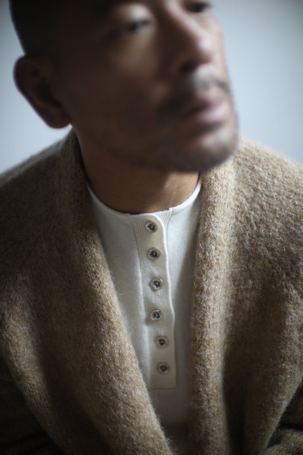 The Forrest Cashmere Henley is a versatile essential piece made from 100% medium weight Mongolian cashmere, featuring a round neckline with six irregular zinc colour metal buttons at the front, and intentionally long sleeves for a gathered look at the cuff and to keep your hands warm on extra cold days.