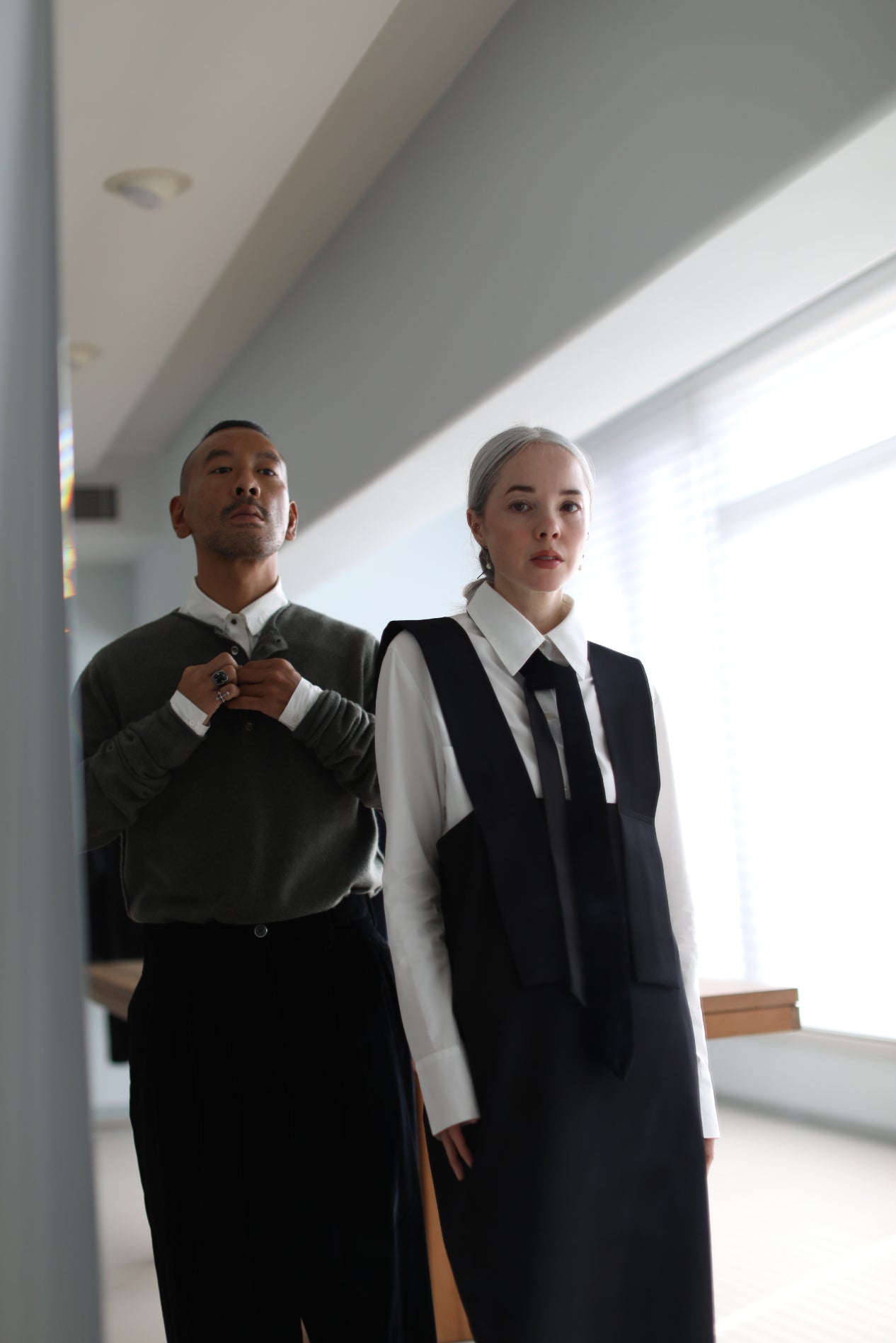 - Zip and hook eye closure at waist