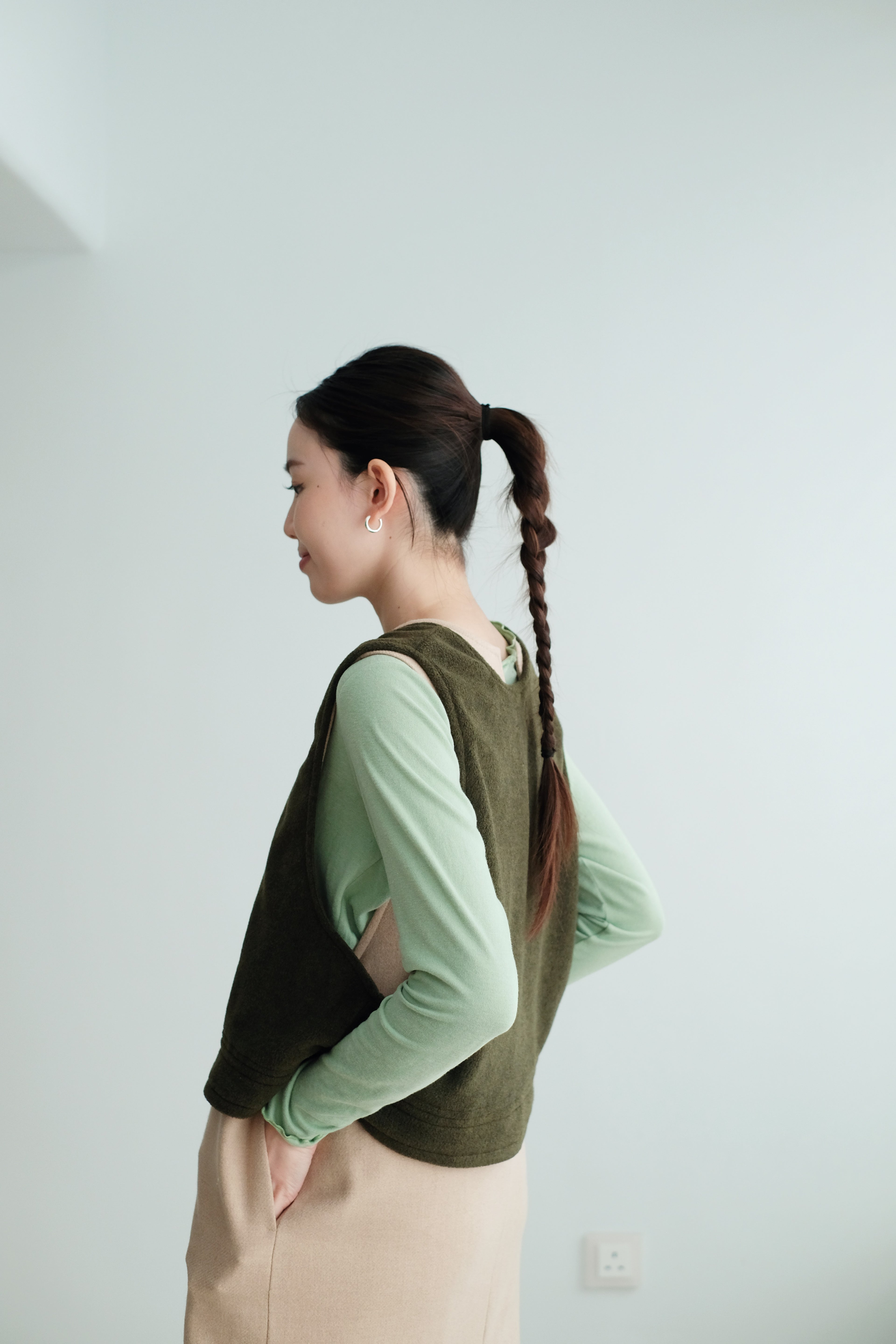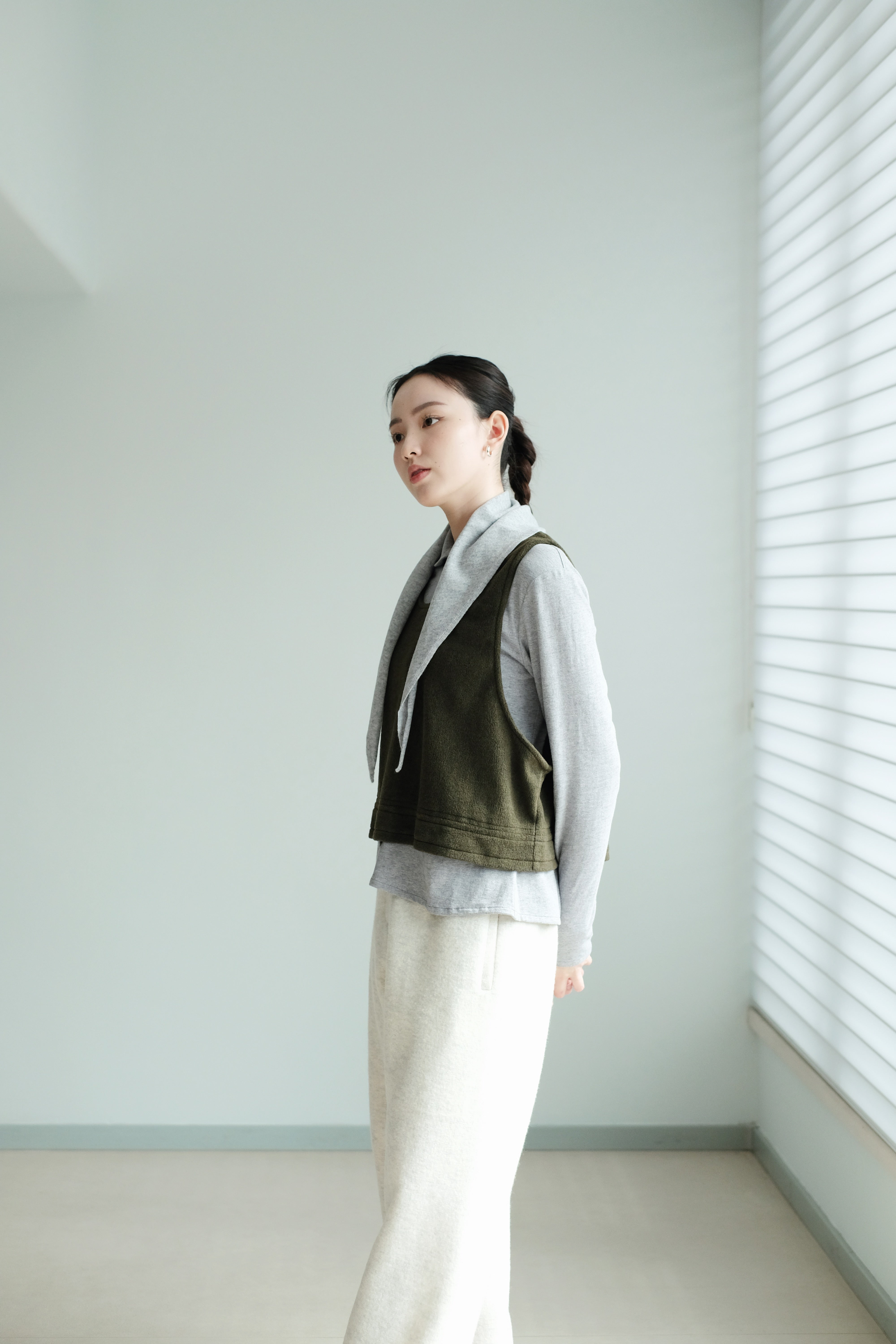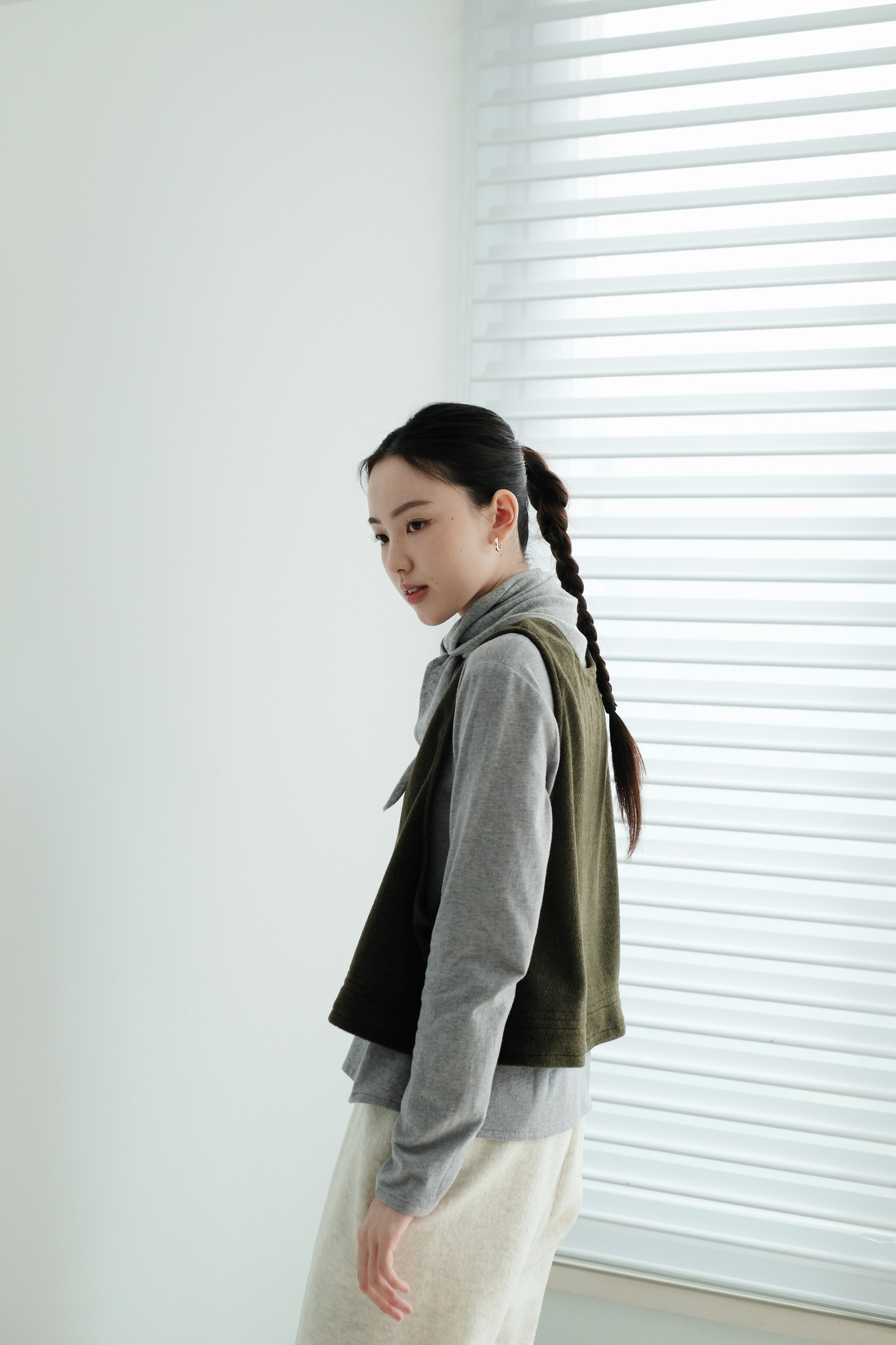 Designed in a relaxed vest silhouette that adds warmth without bulk, perfect for autumn and winter layering.