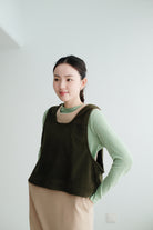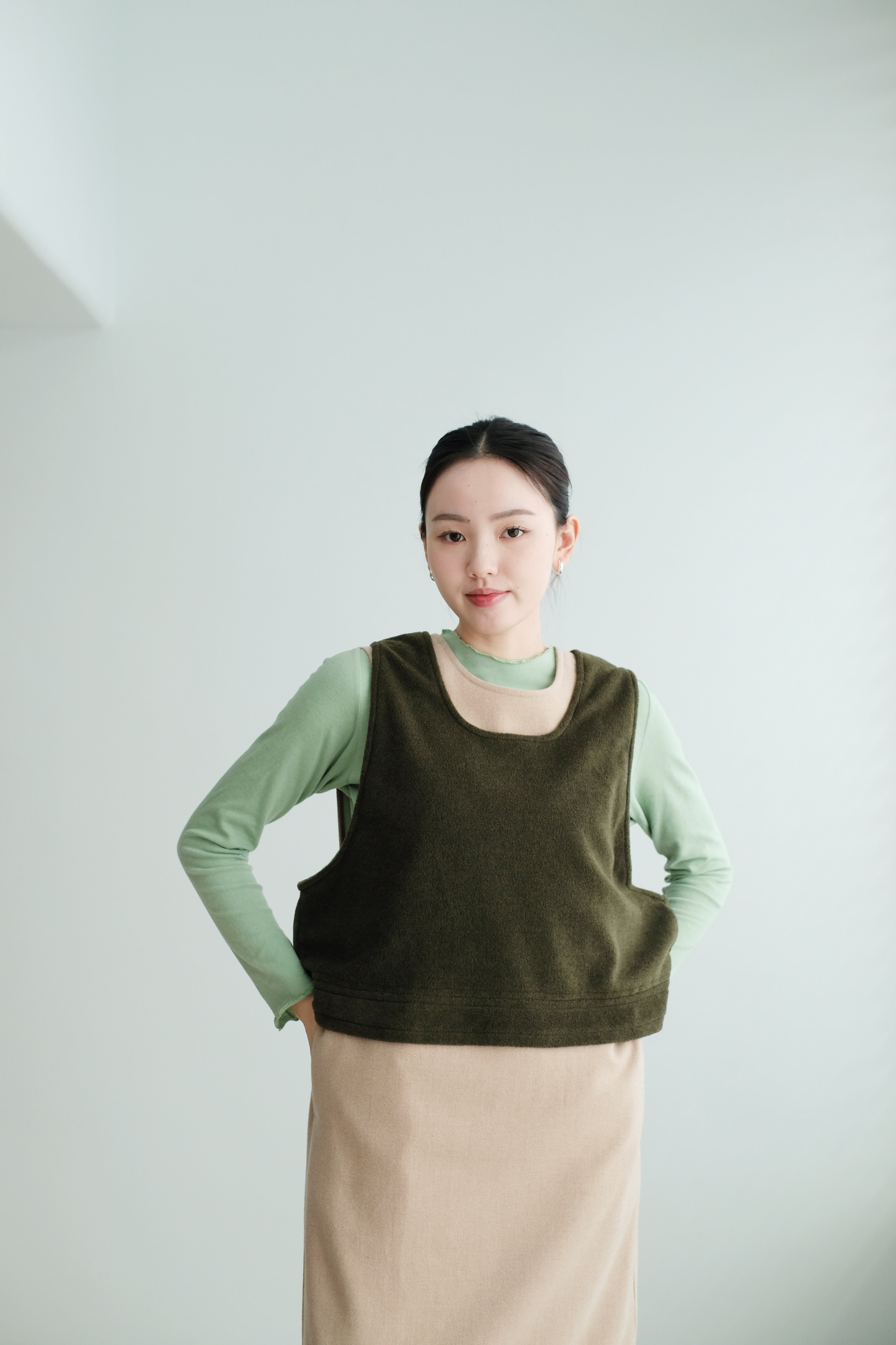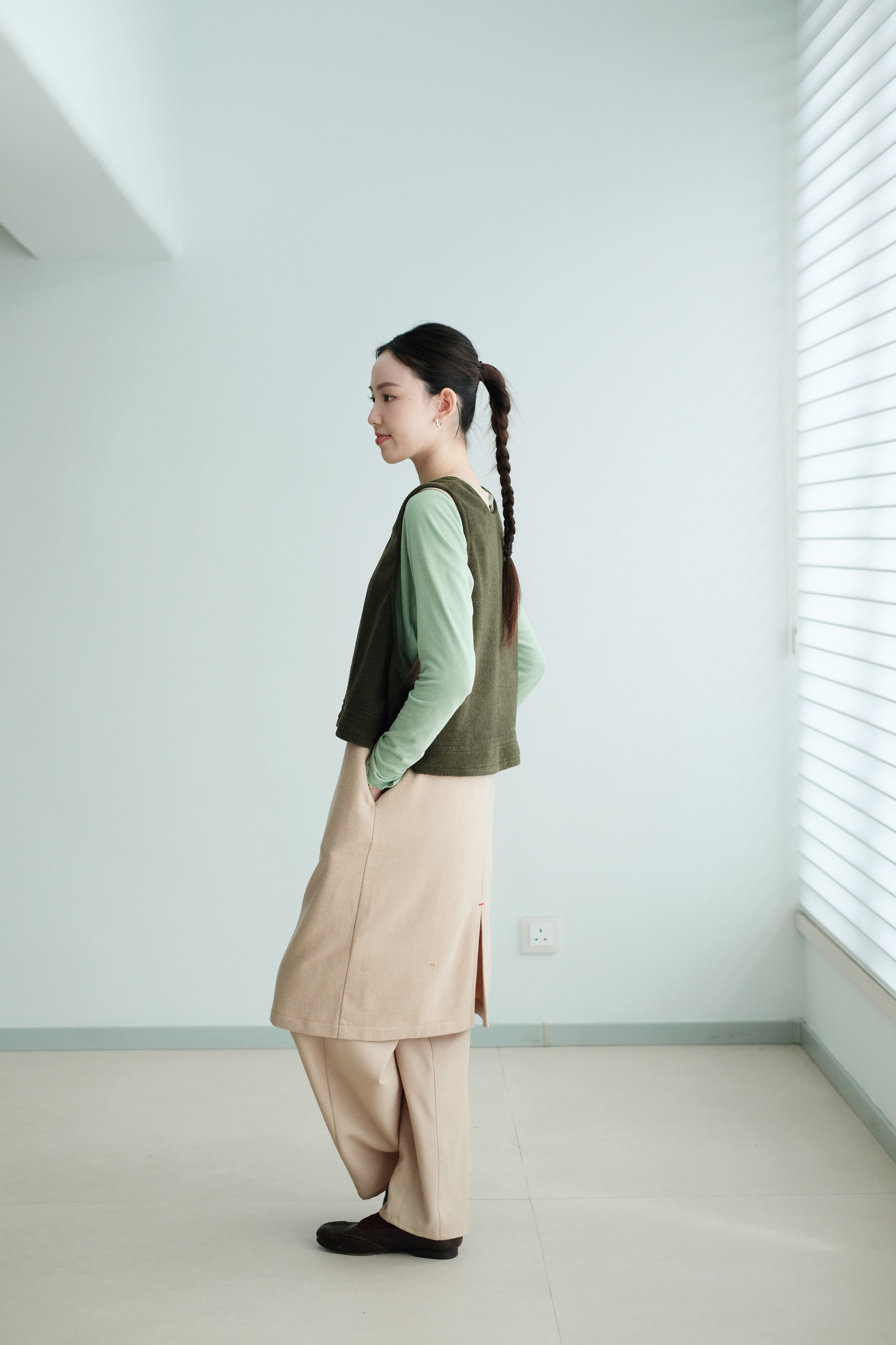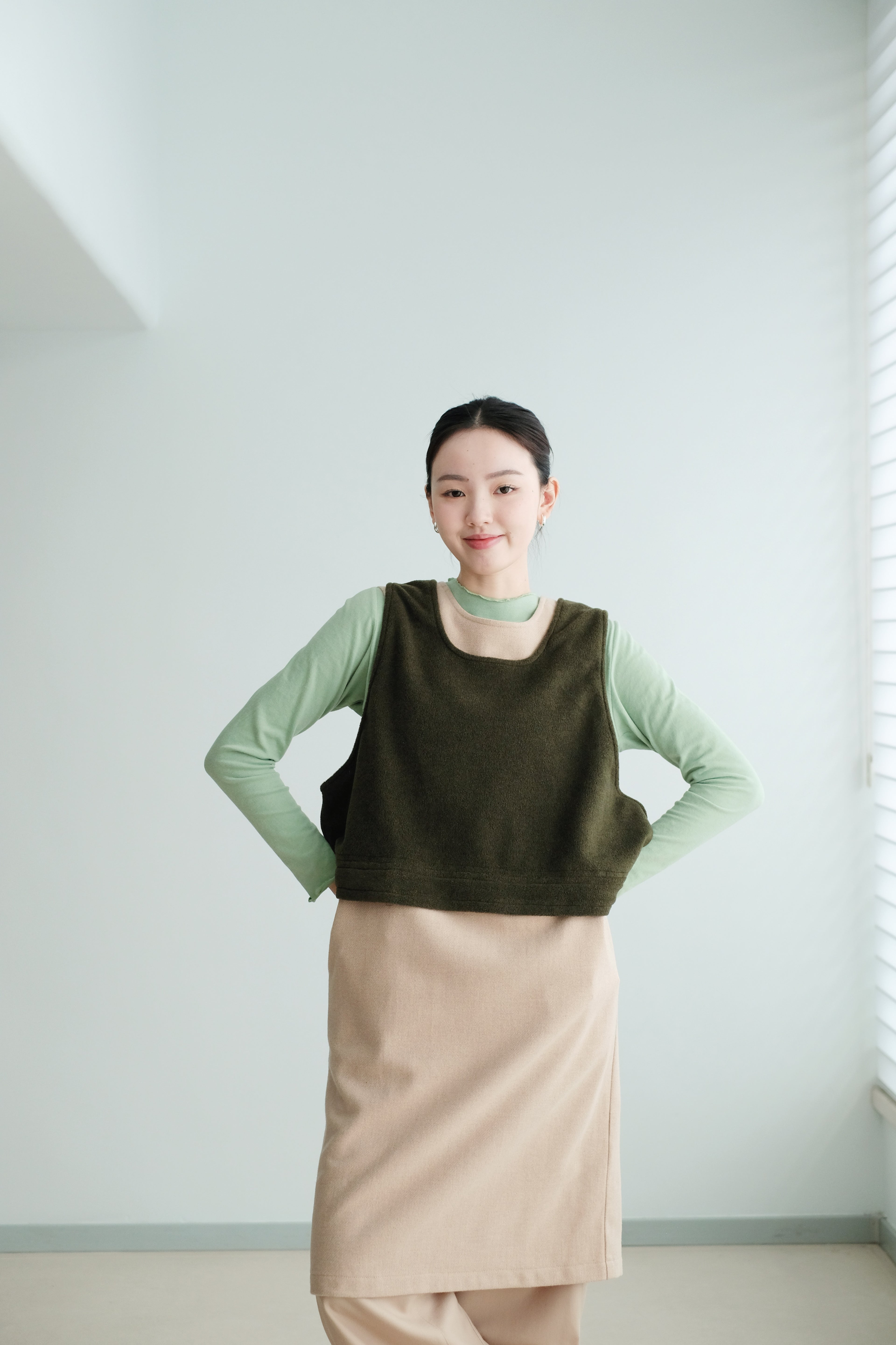 Designed in a relaxed vest silhouette that adds warmth without bulk, perfect for autumn and winter layering.