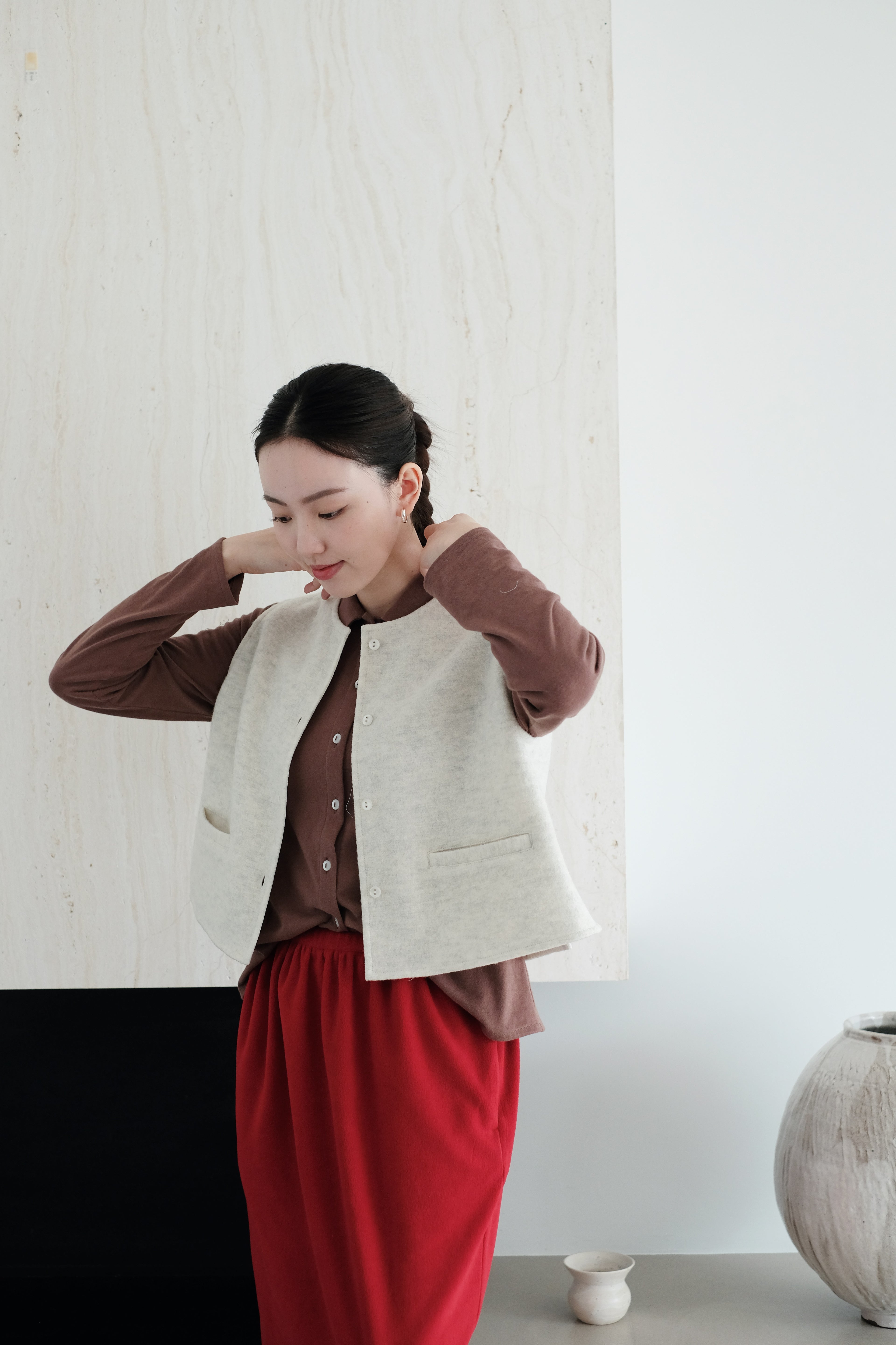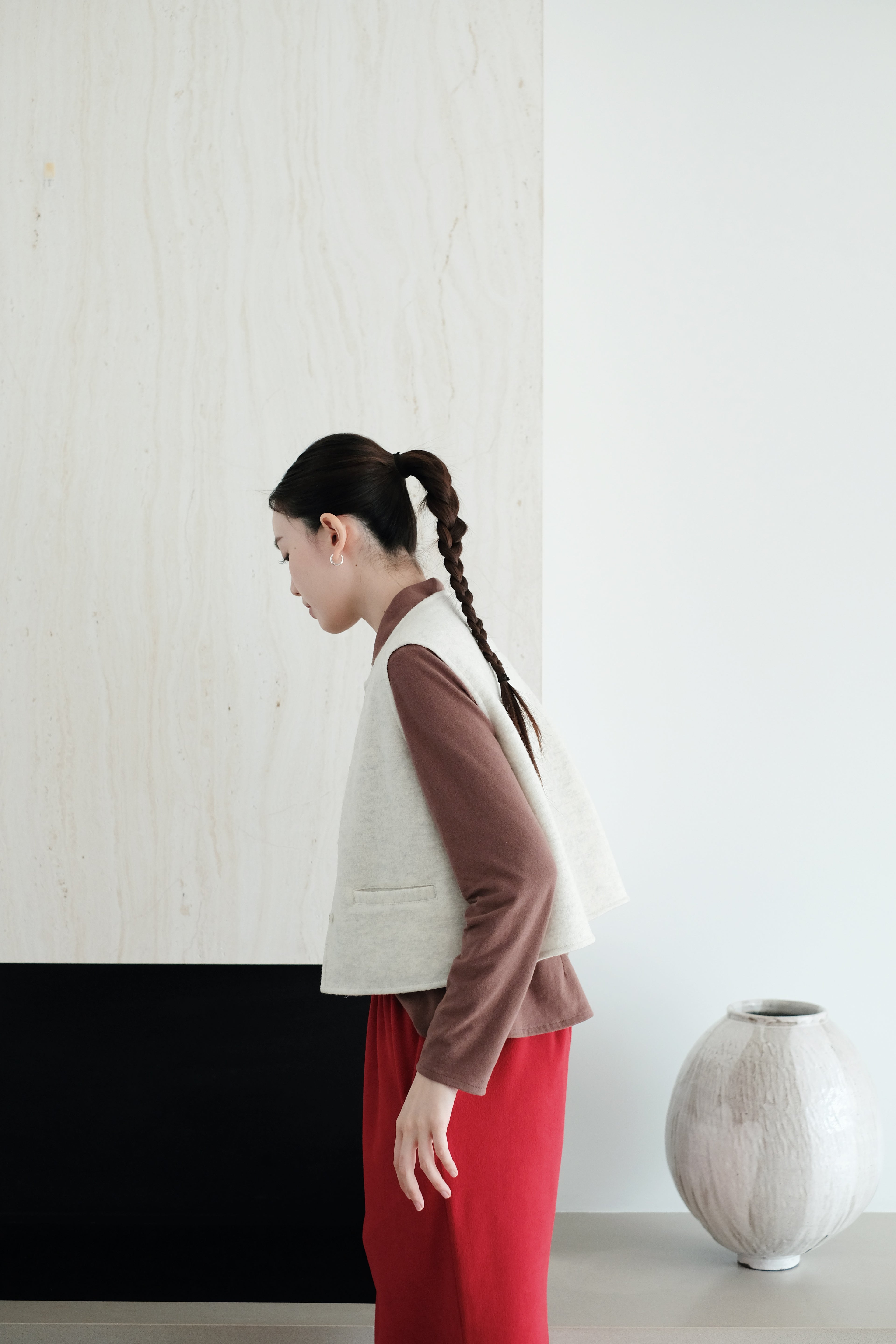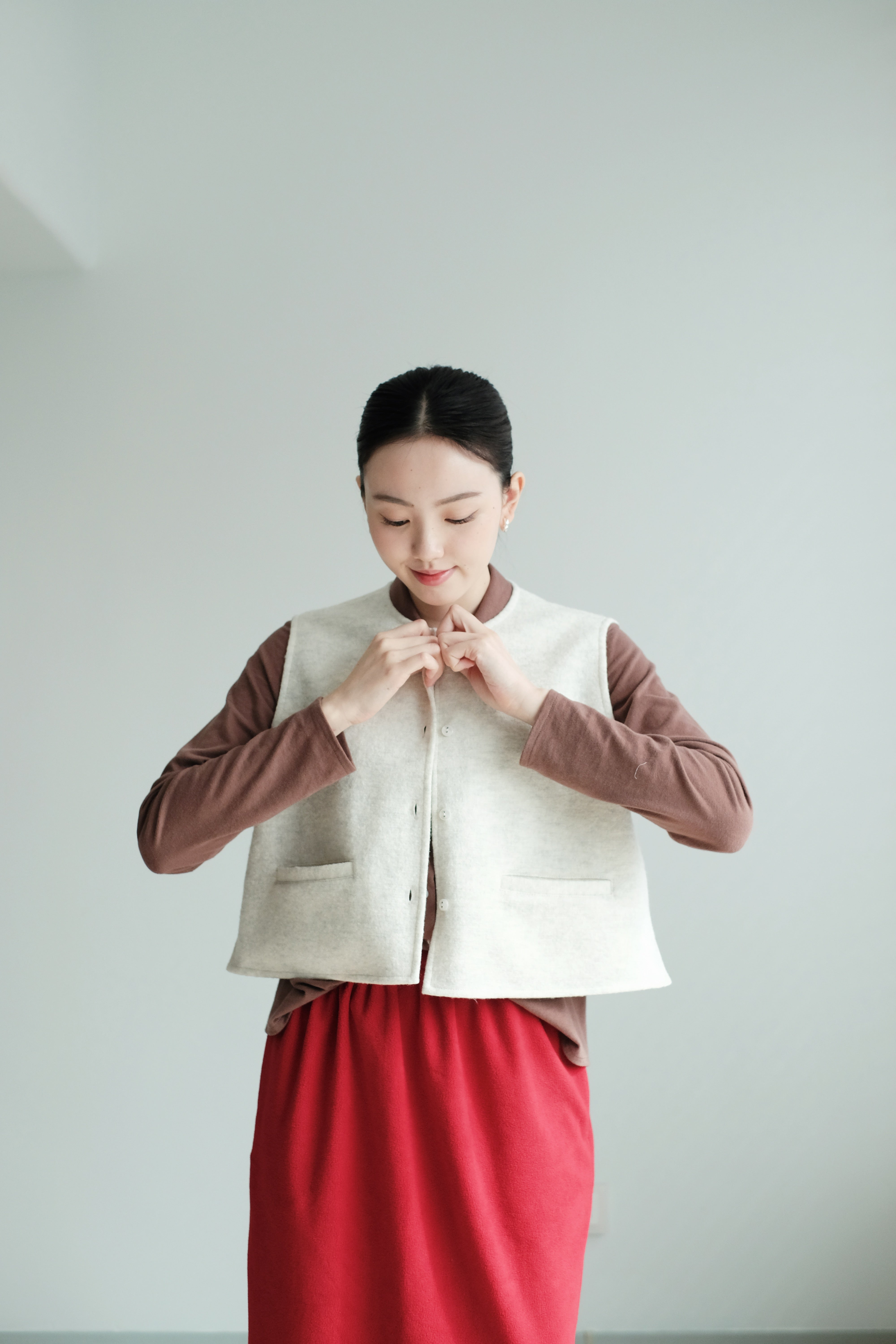 This vest is one of 30menu’s signature and best-selling pieces. Crafted from wool. It naturally brings out a cool, gender-neutral vibe when worn.