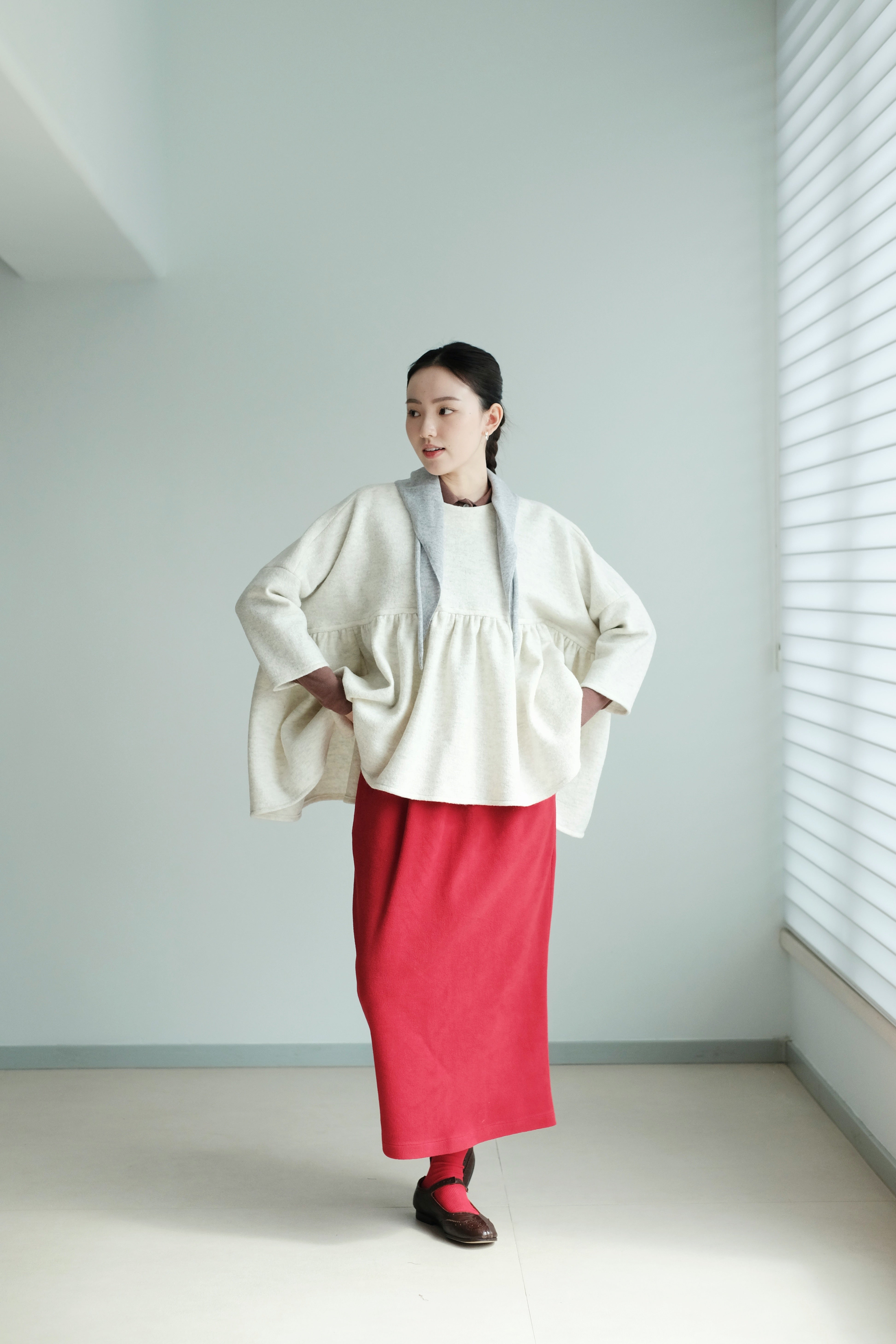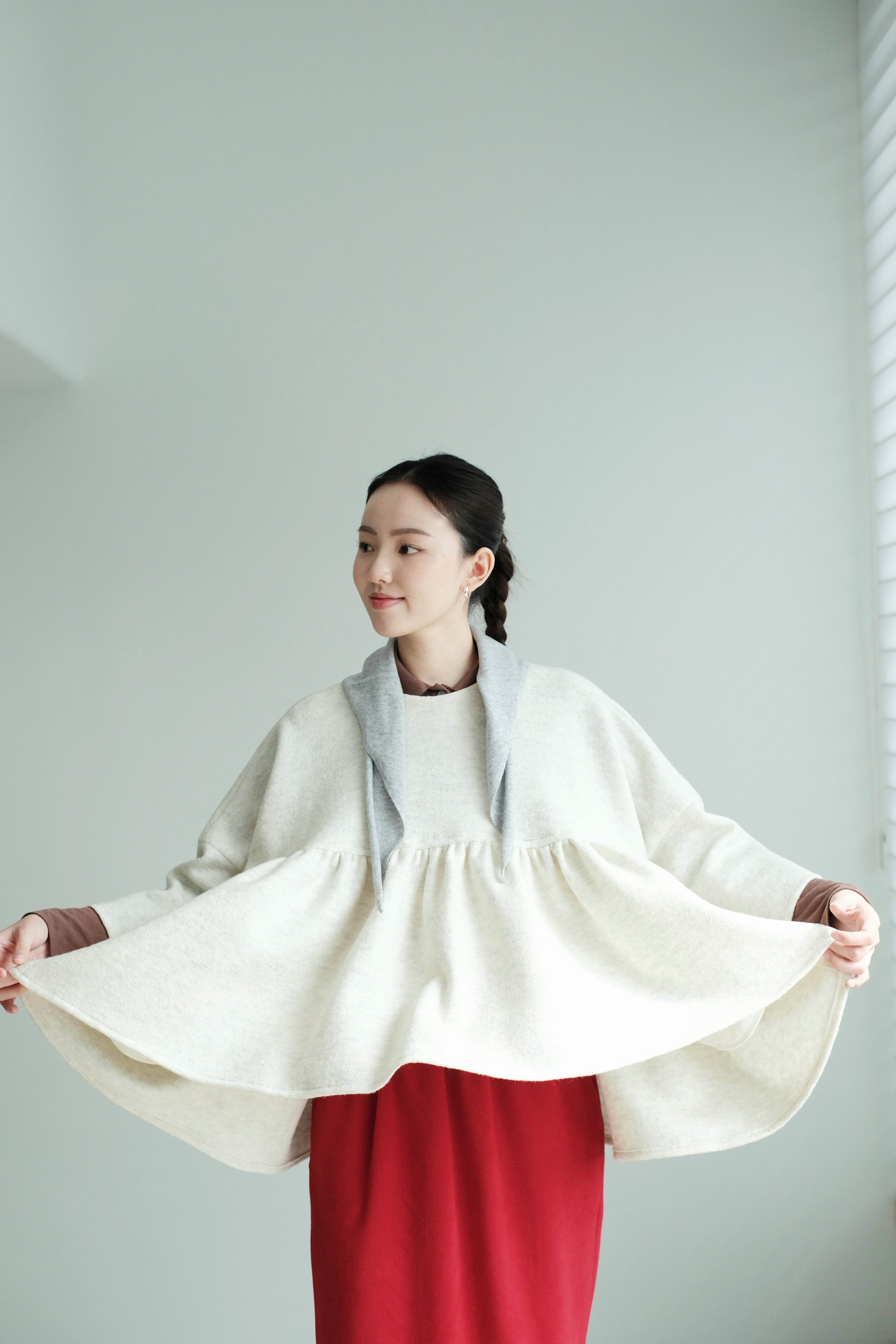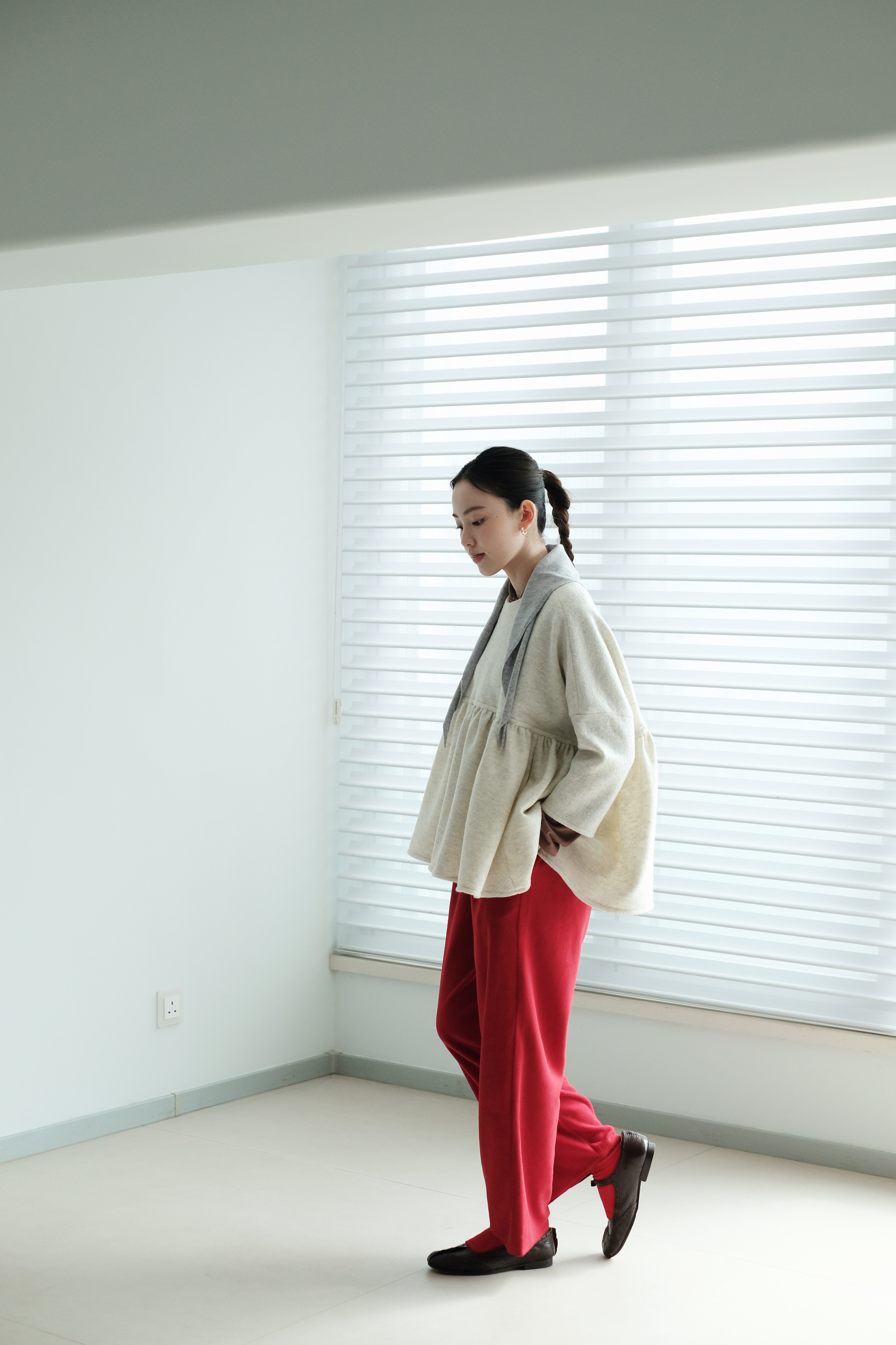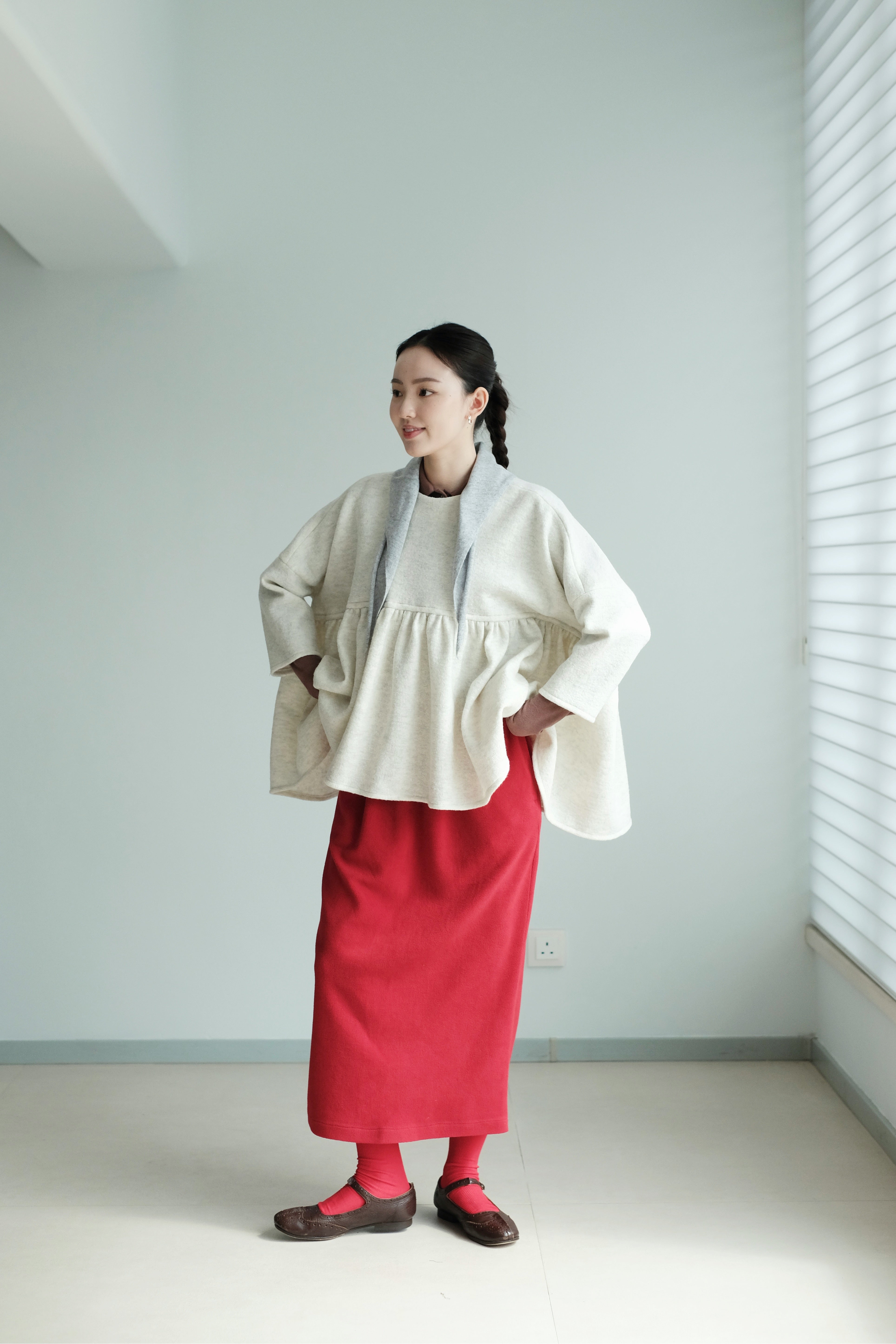 Made from a wool-blend fabric with a soft, warm touch and natural structure.