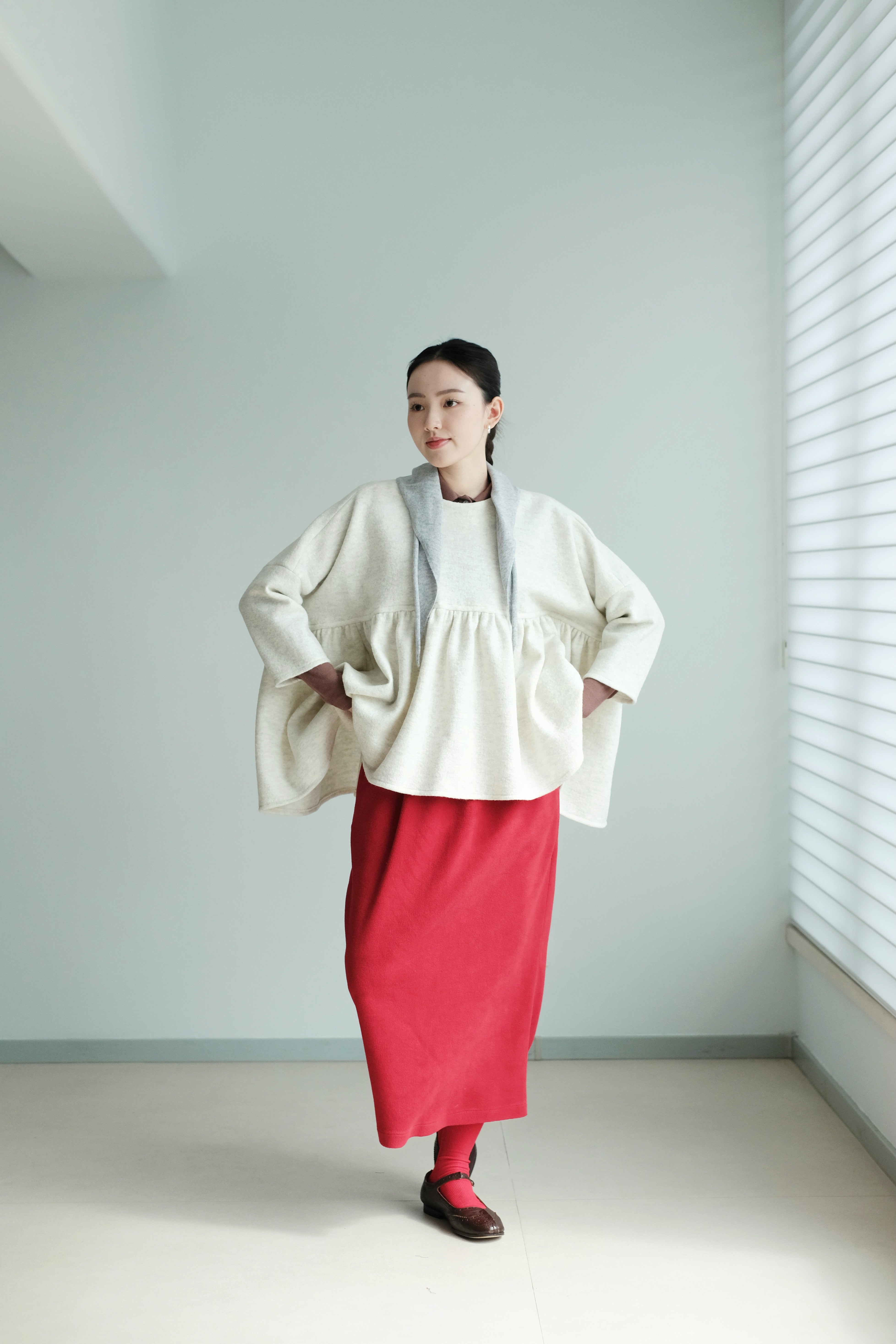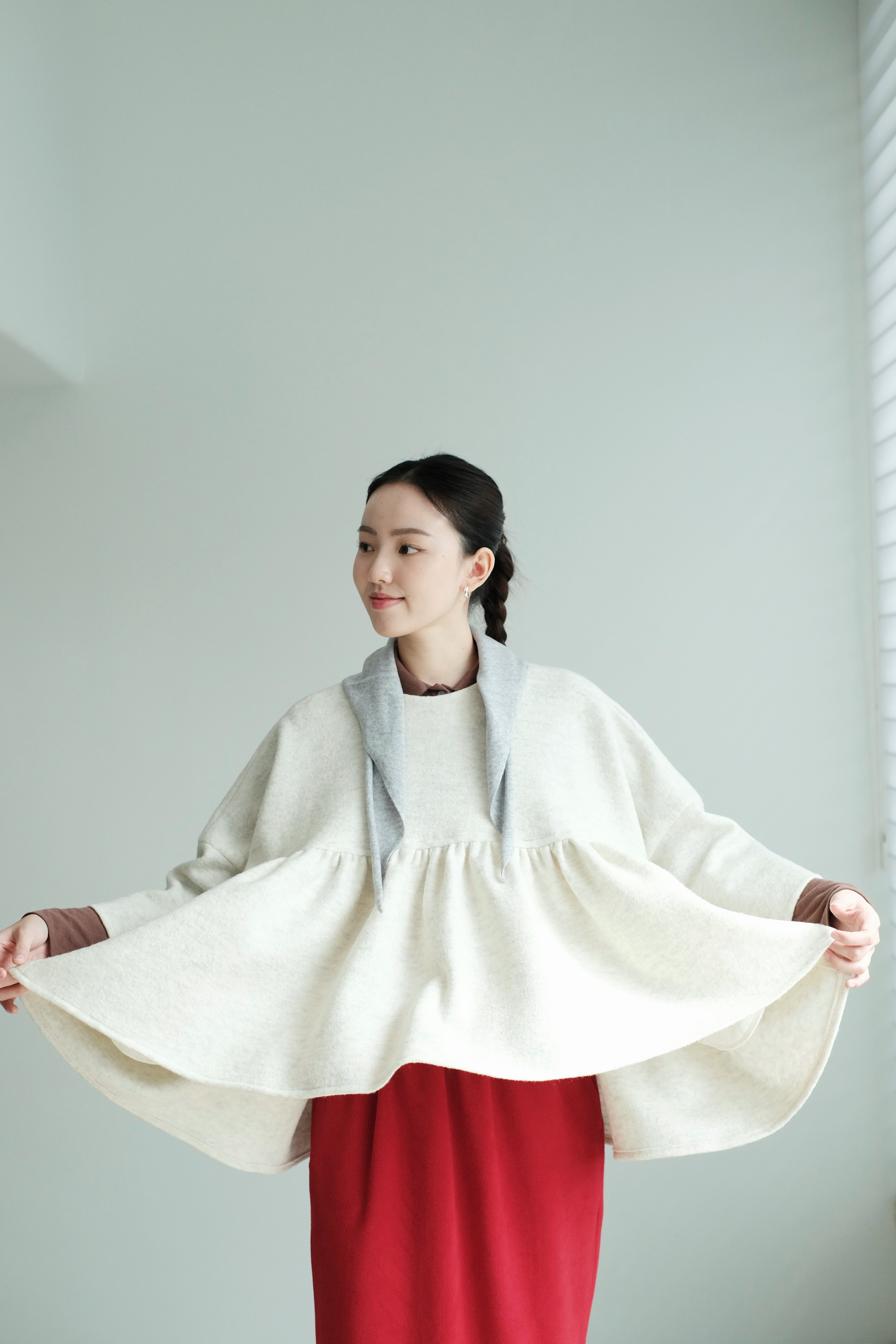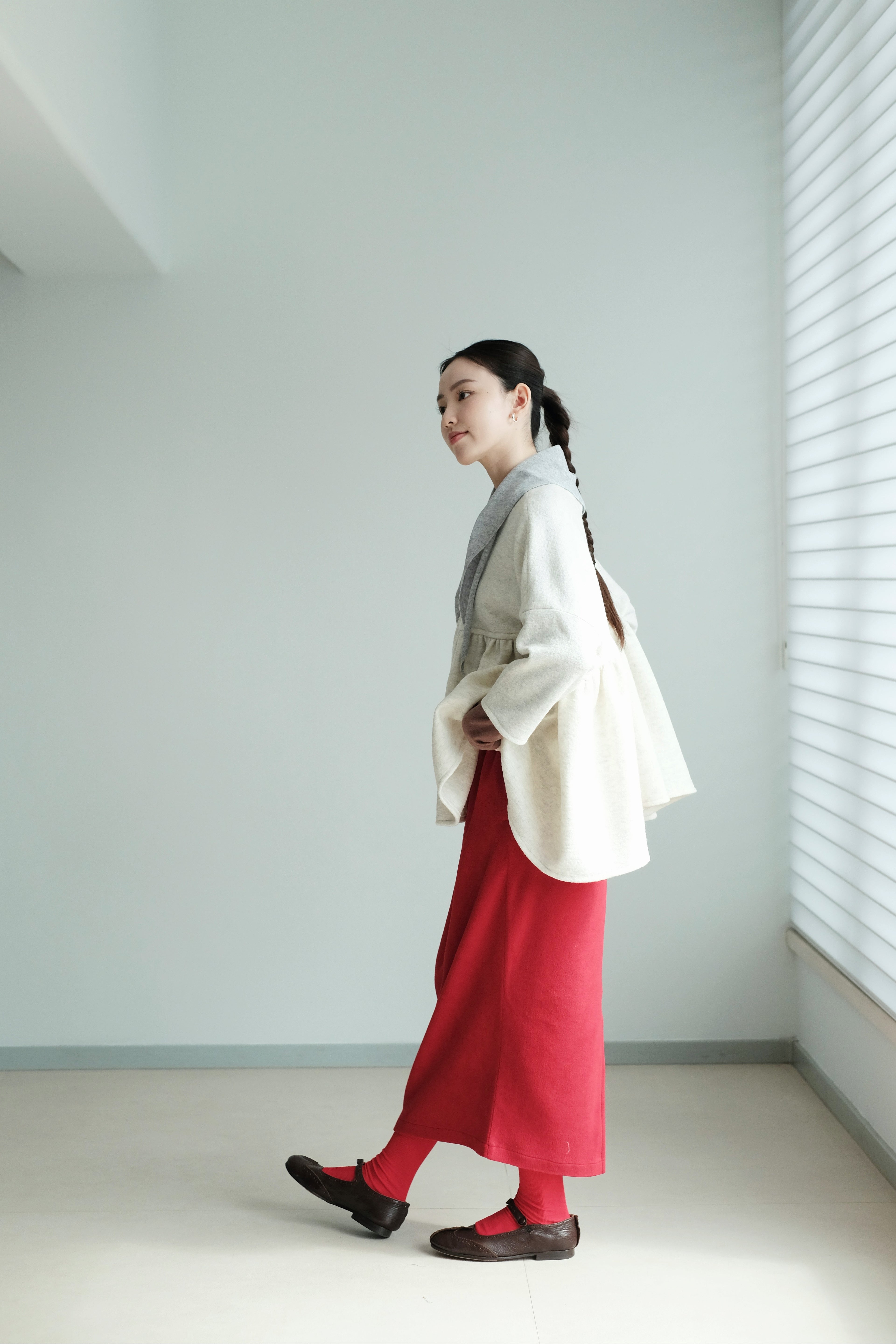 Made from a wool-blend fabric with a soft, warm touch and natural structure.