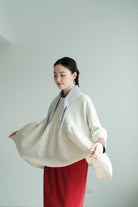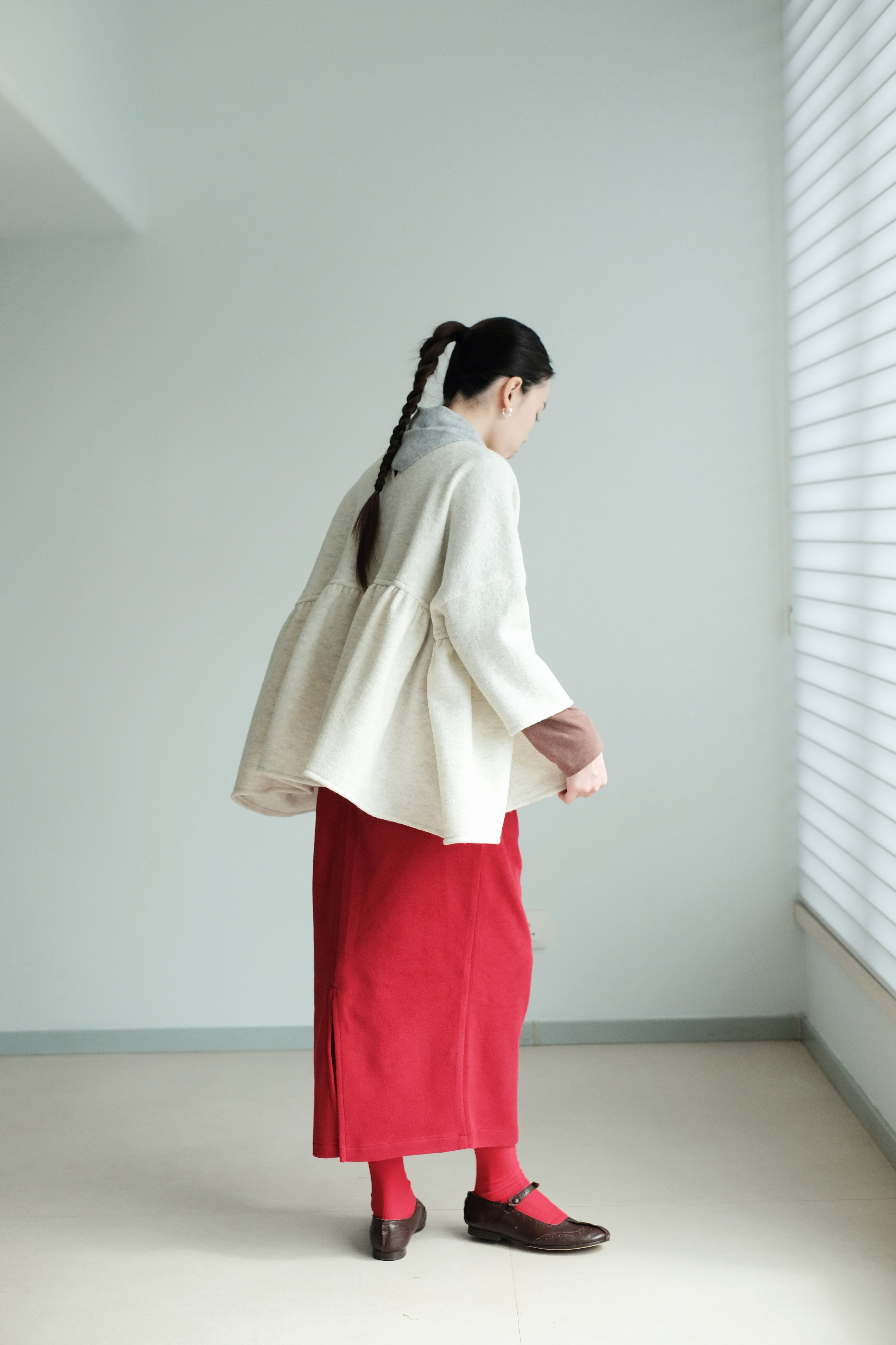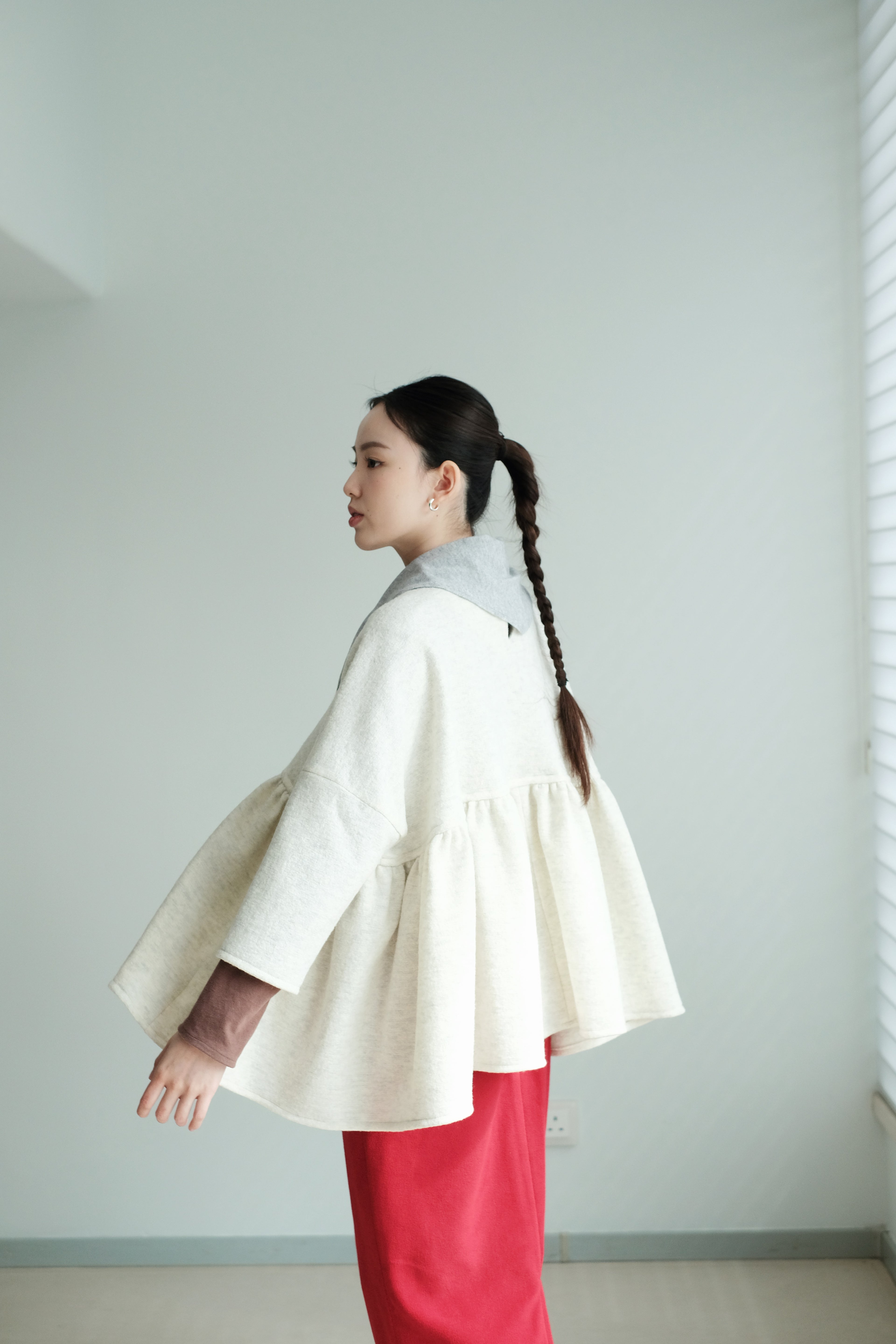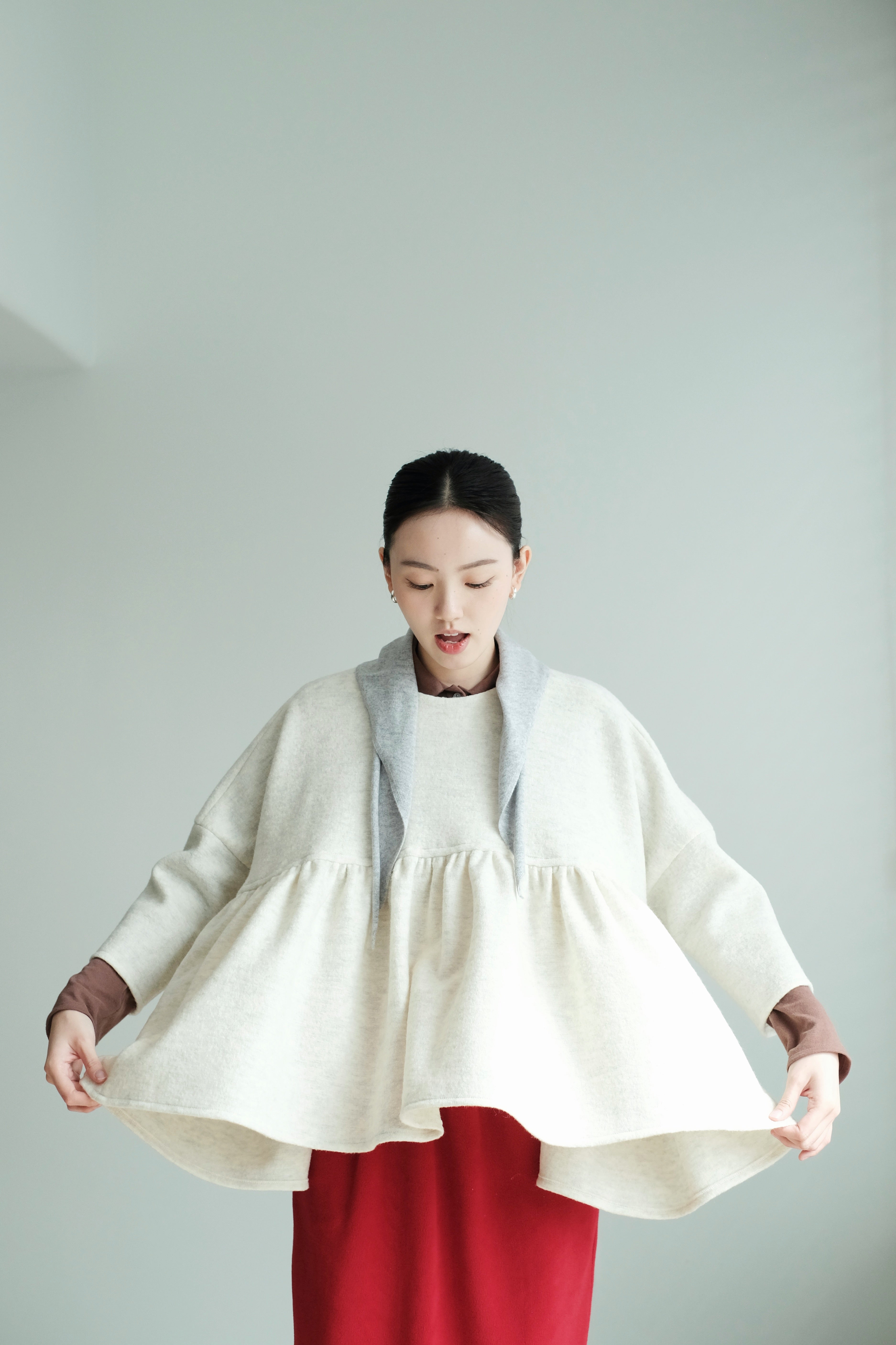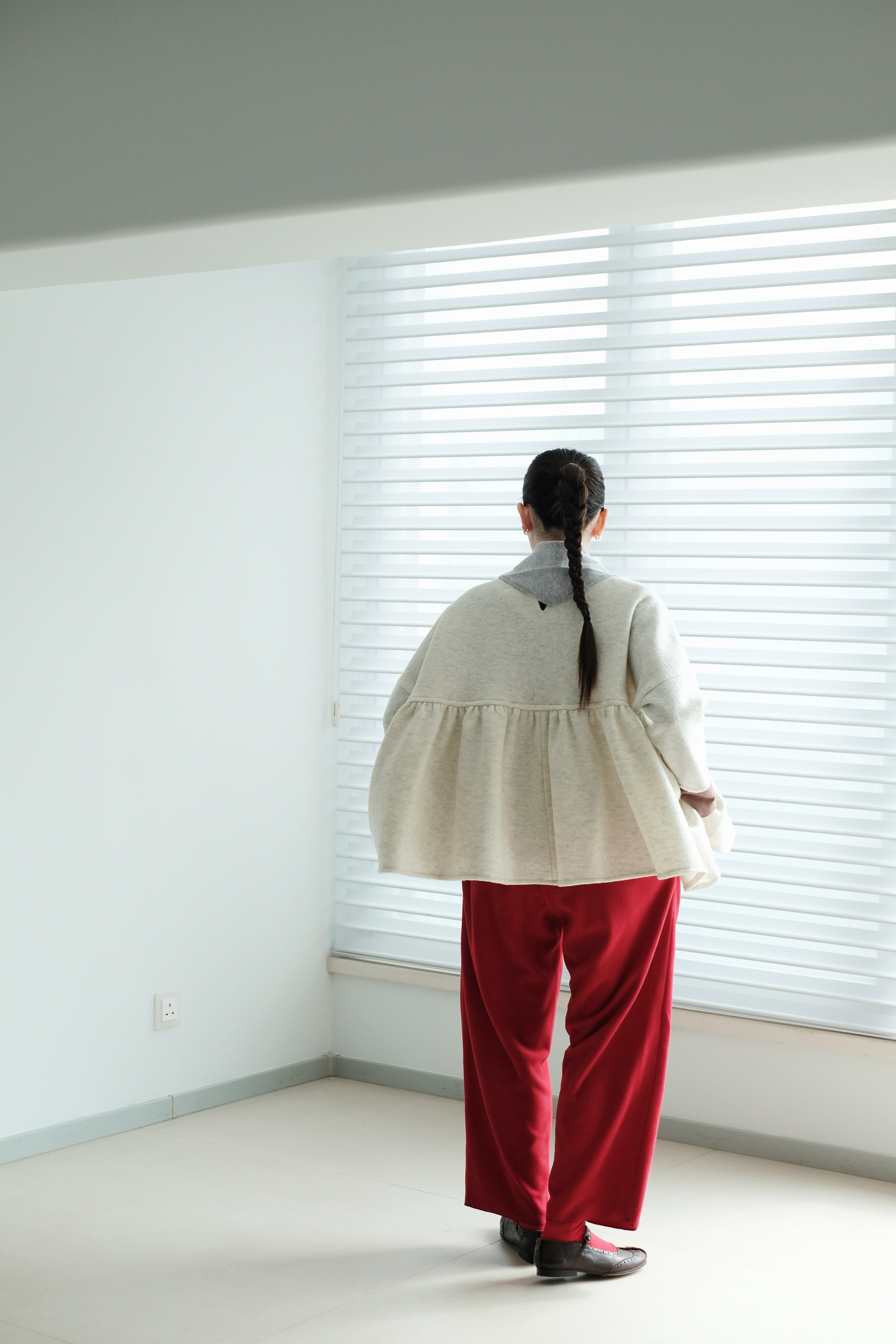 Made from a wool-blend fabric with a soft, warm touch and natural structure.