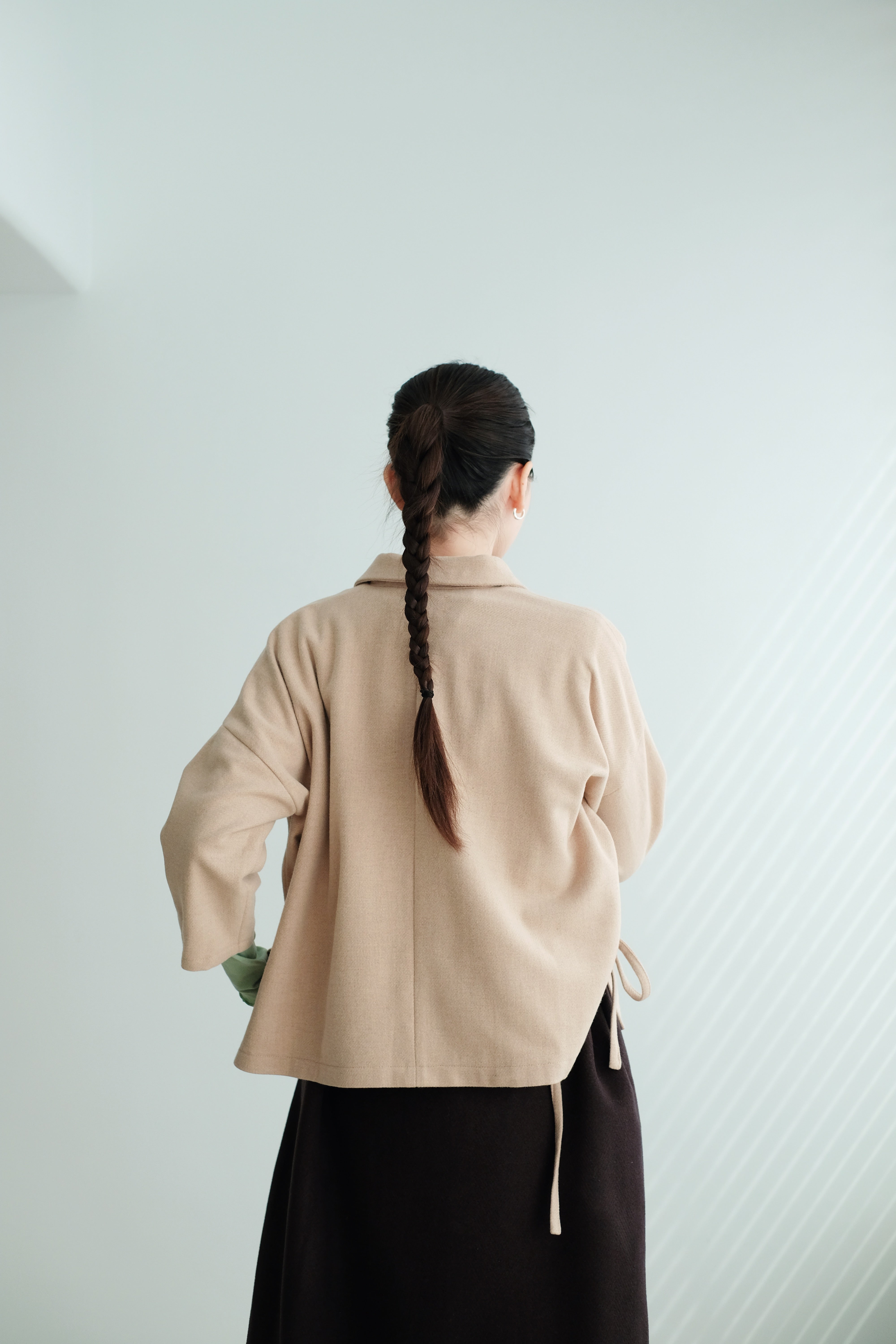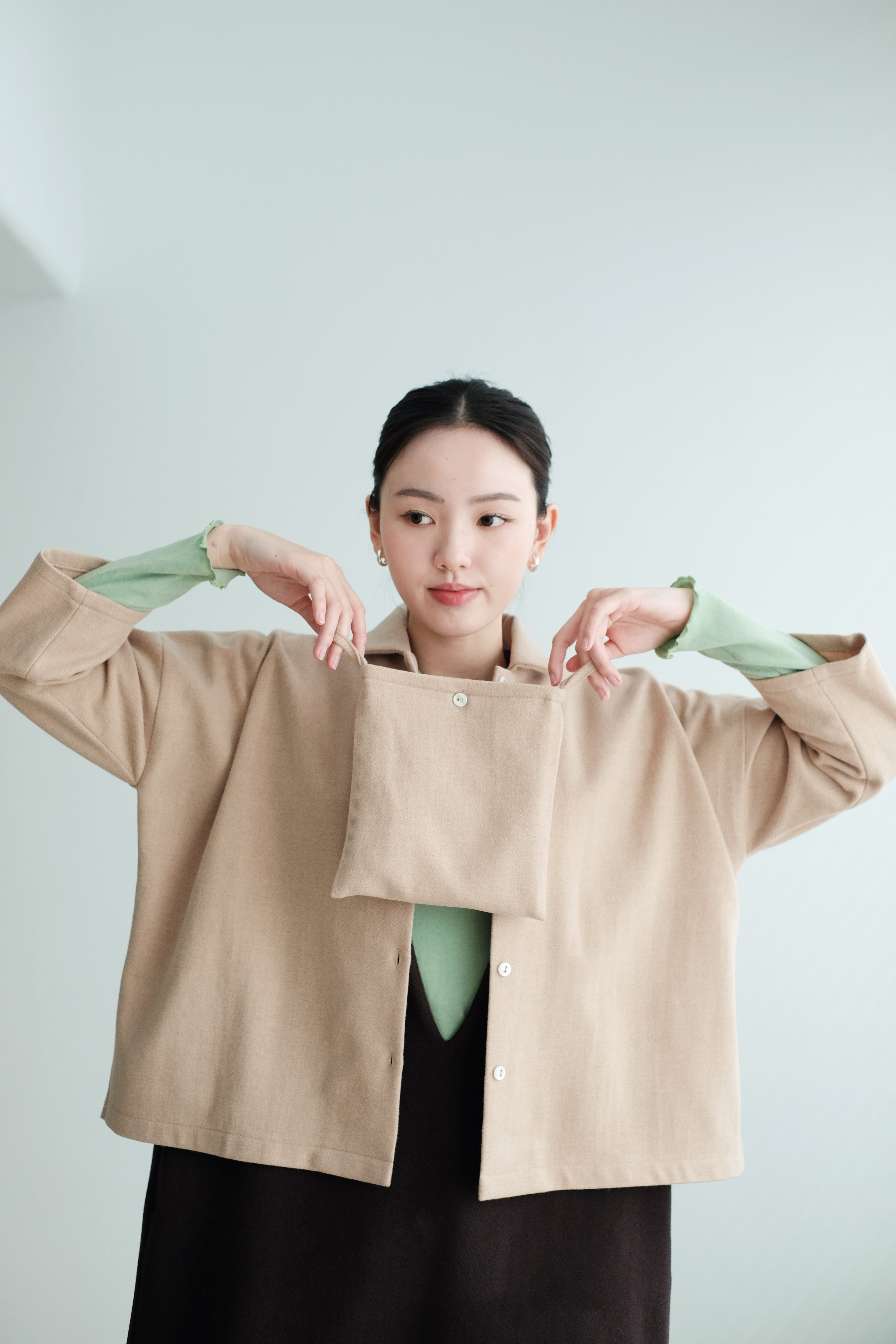 Crafted from soft wool fabric, offering warmth with a light and comfortable feel.