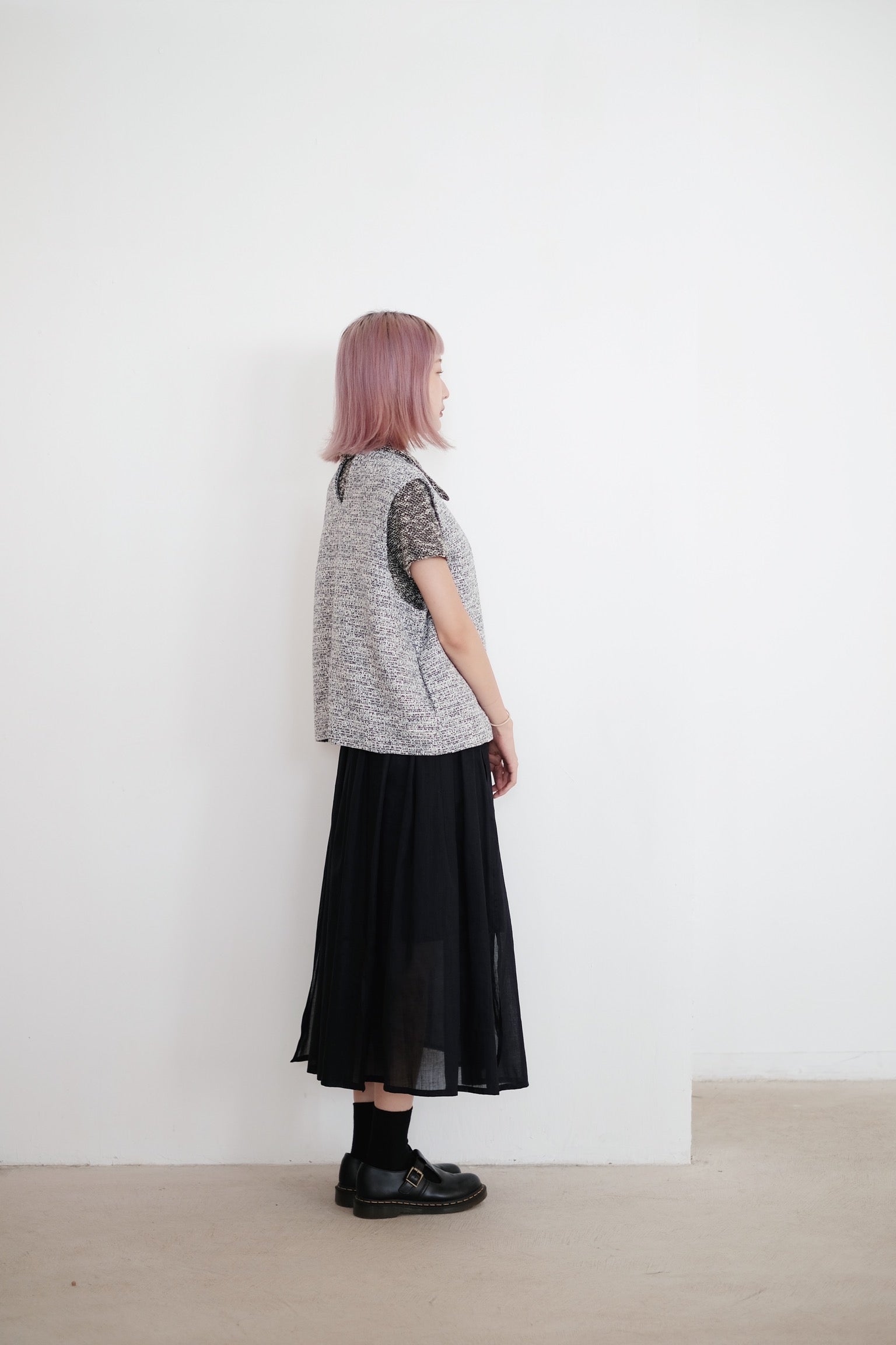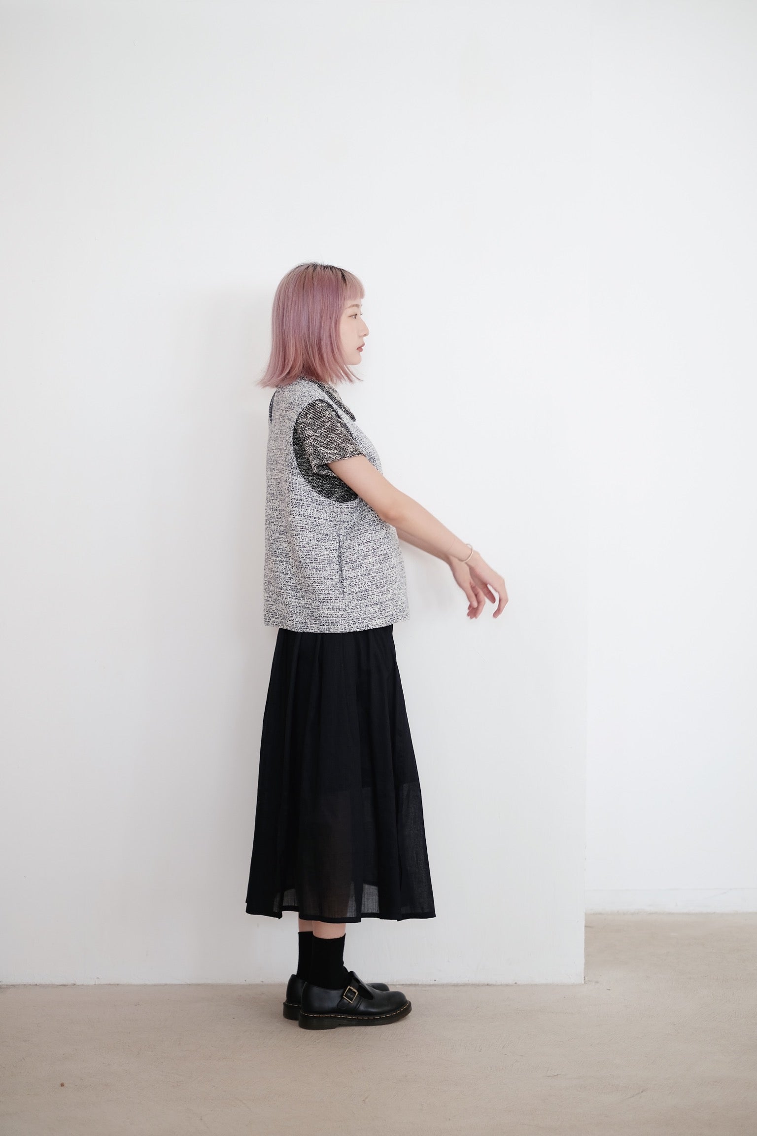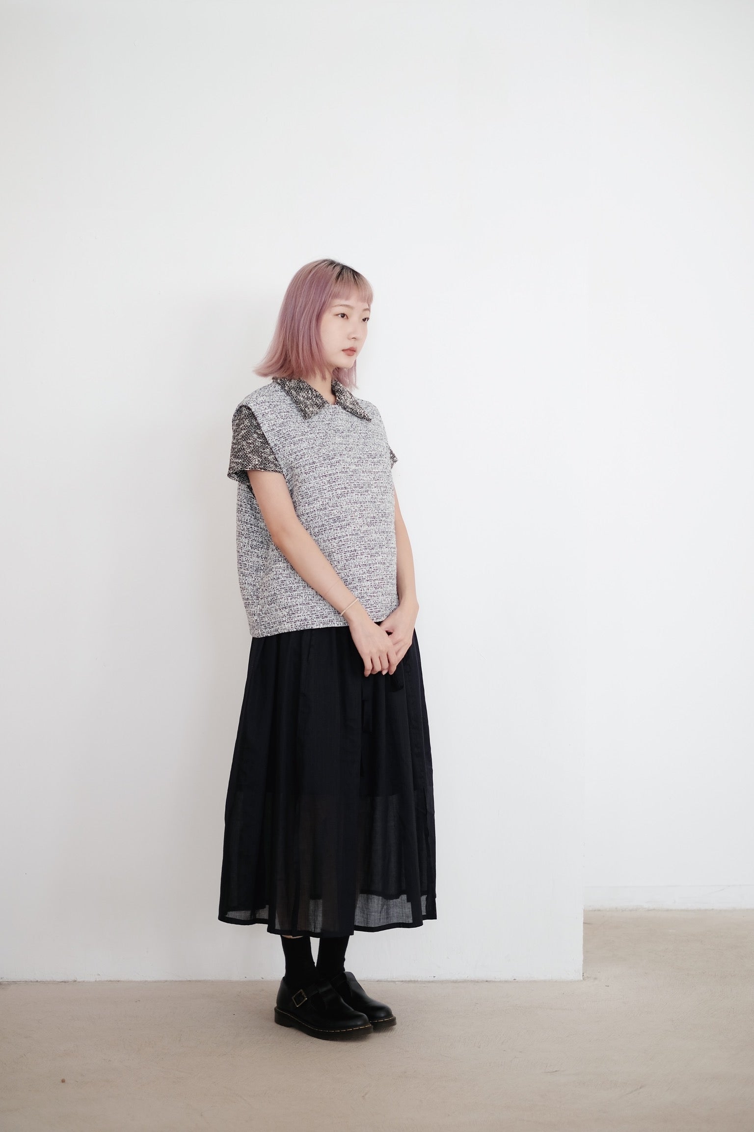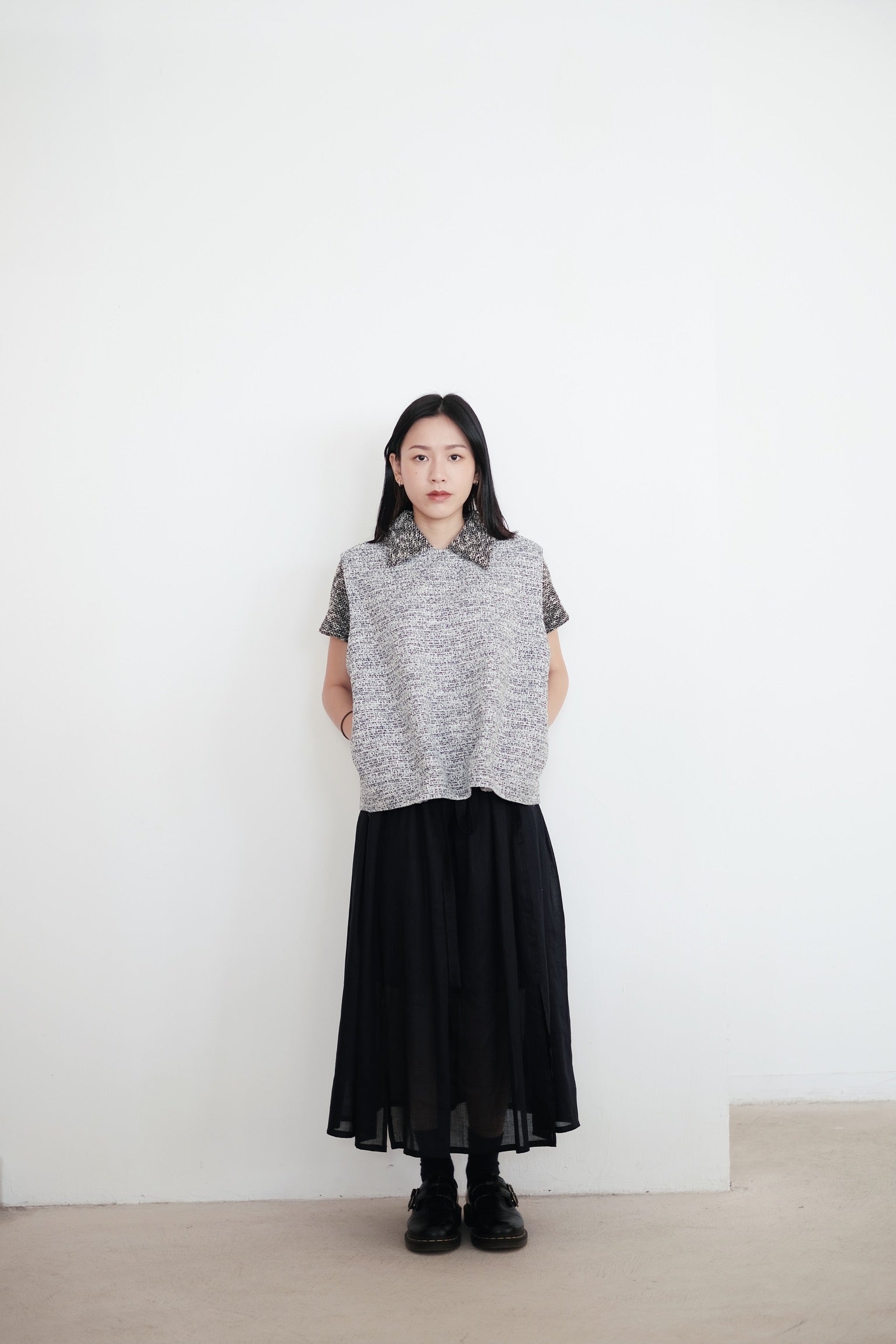 以四塊布料拼接而成的裙子