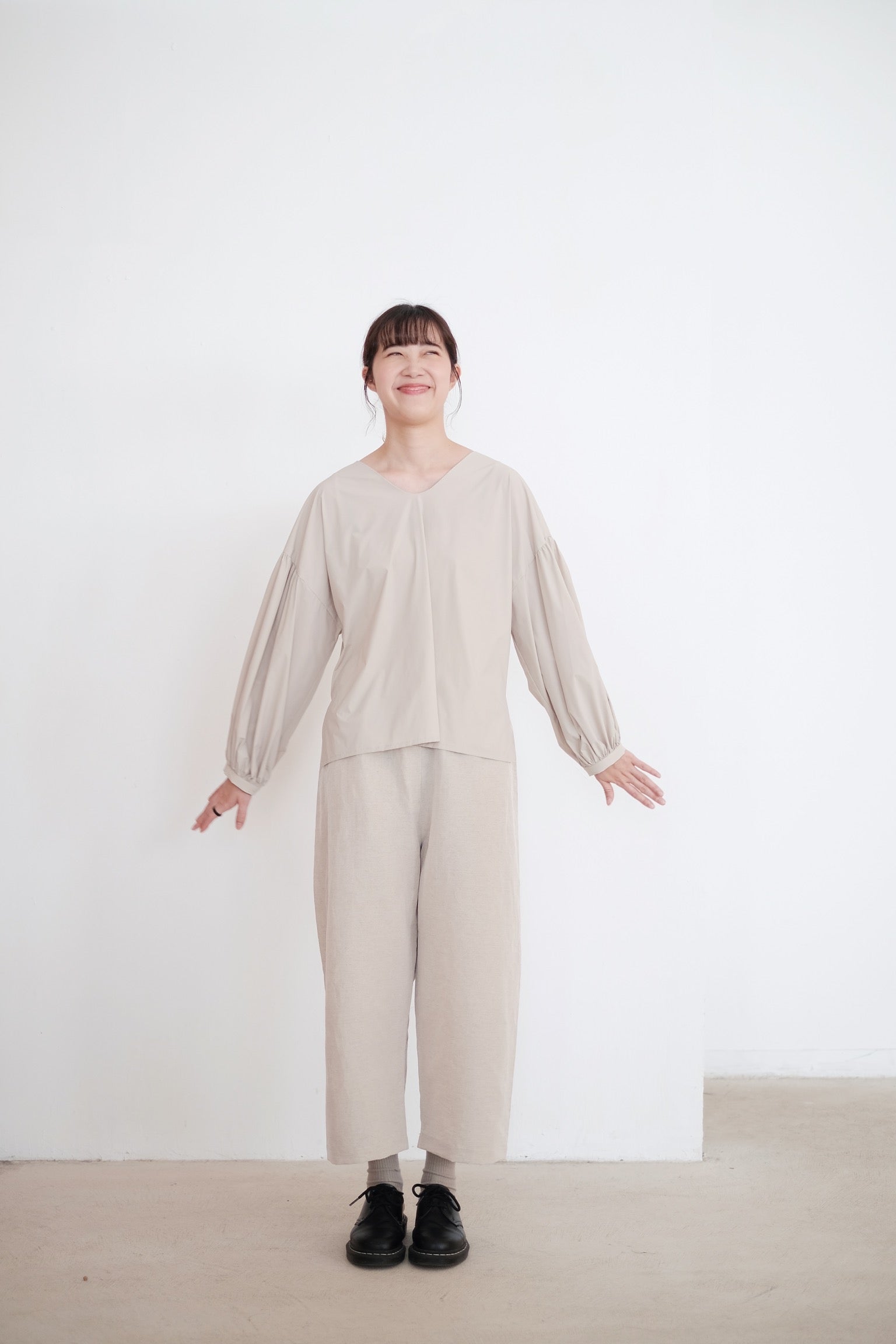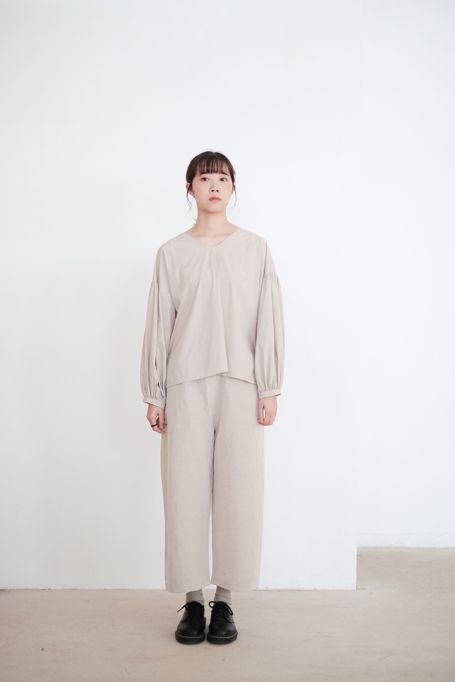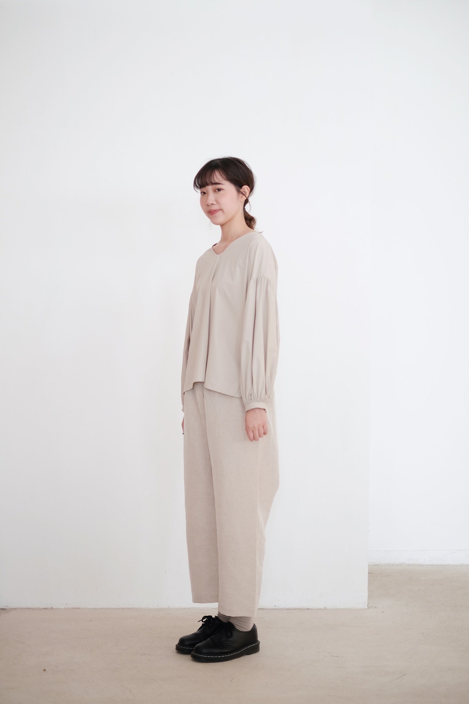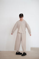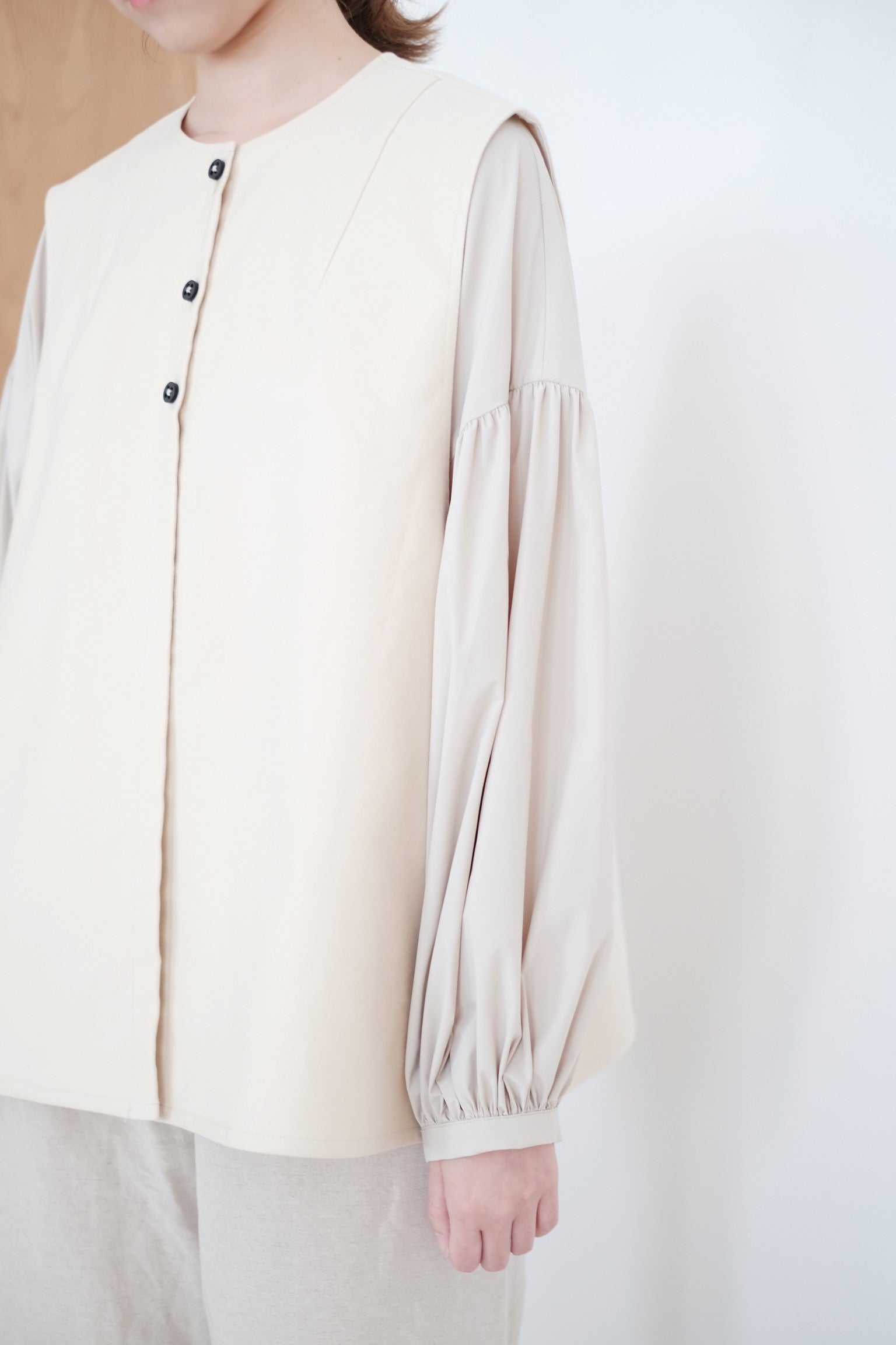 KAIA BUBBLE SLEEVE TOP (BEIGE)
