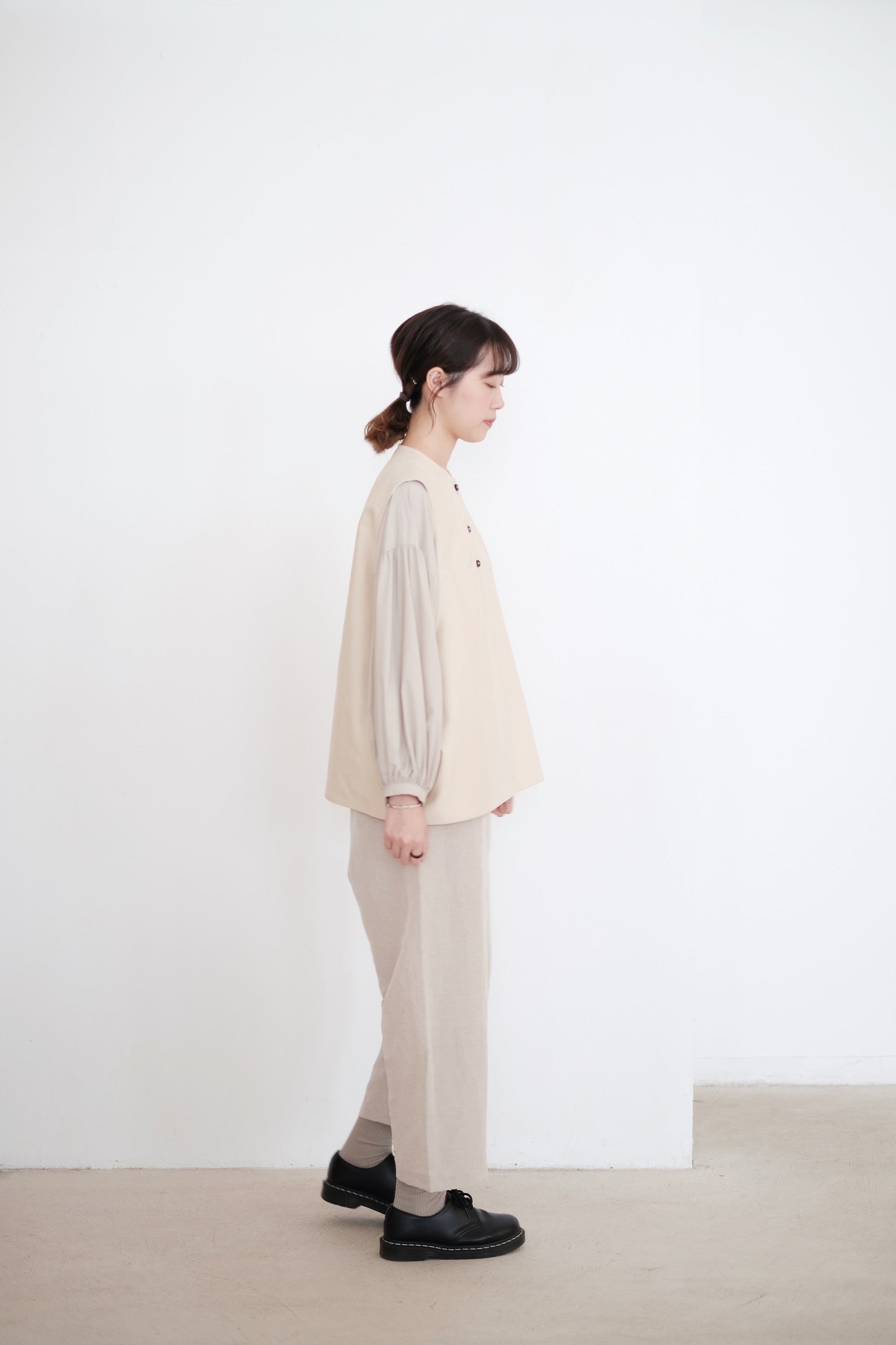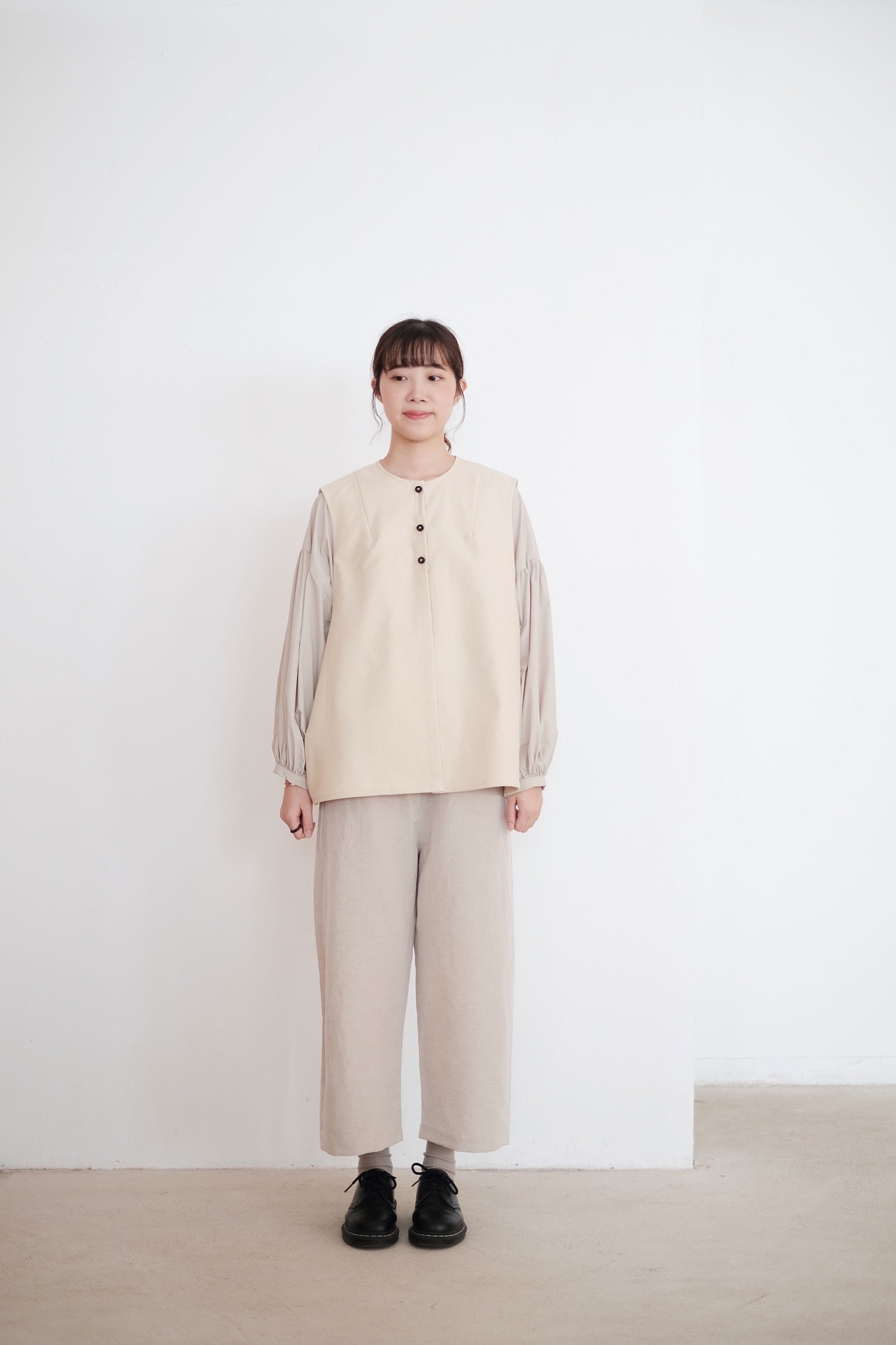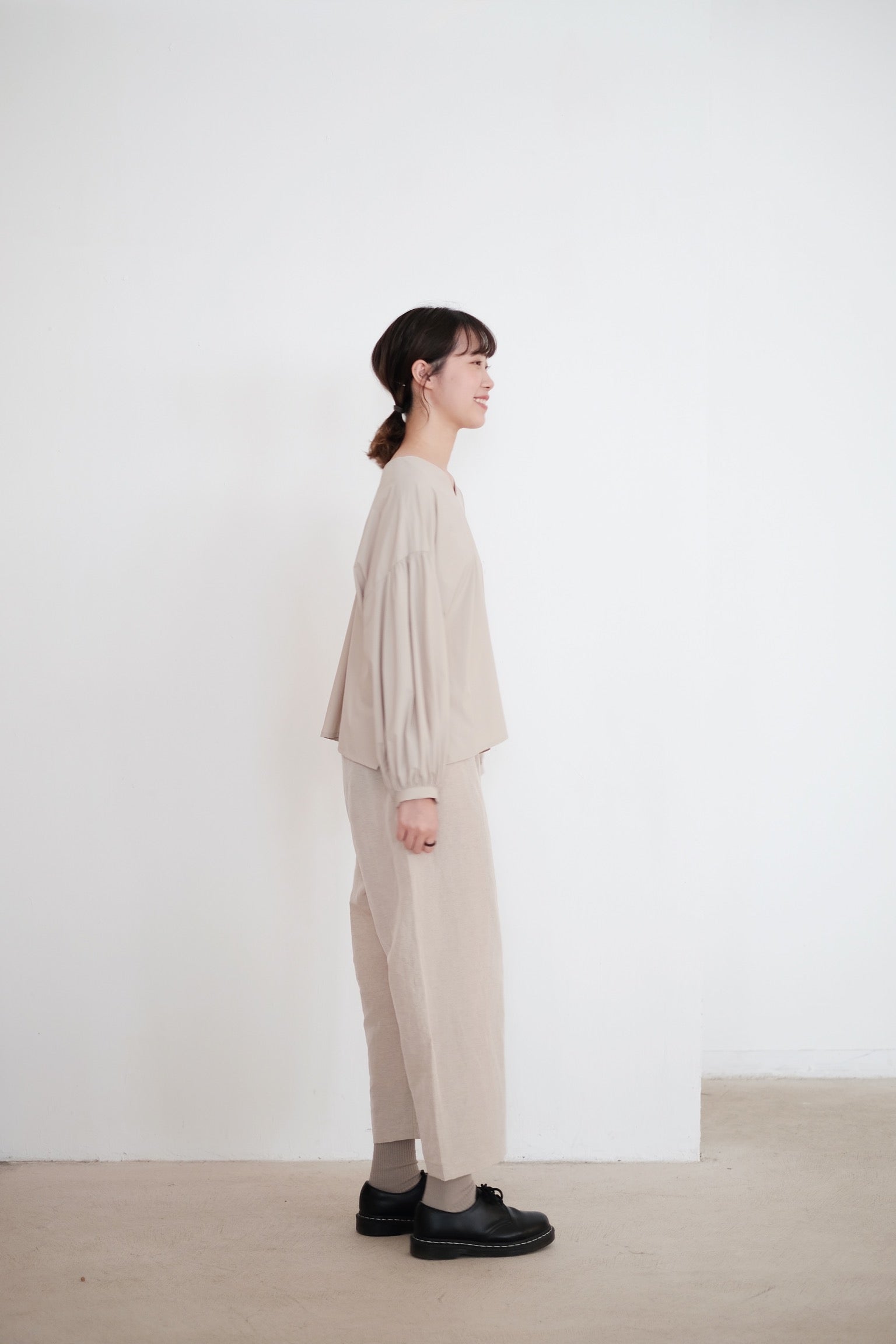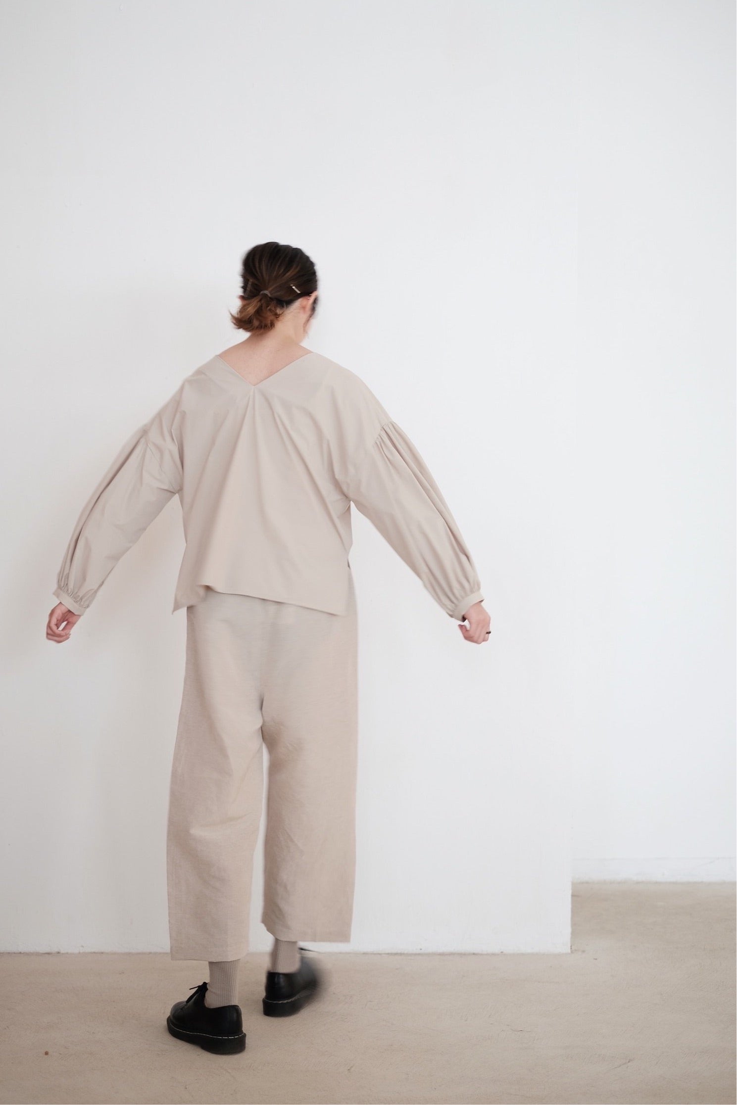 KAIA BUBBLE SLEEVE TOP (BEIGE)