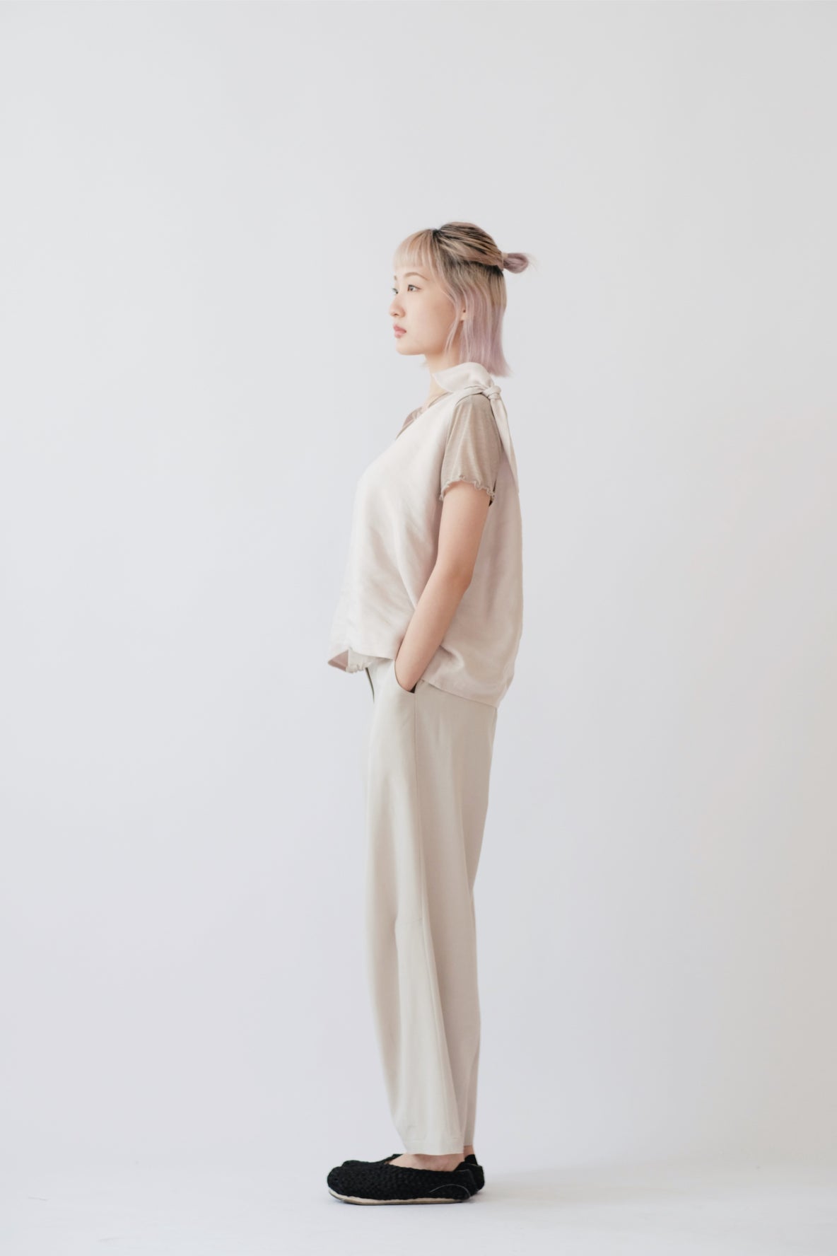 前身於腳膝及小腿位置的暗線修腳位富立體感