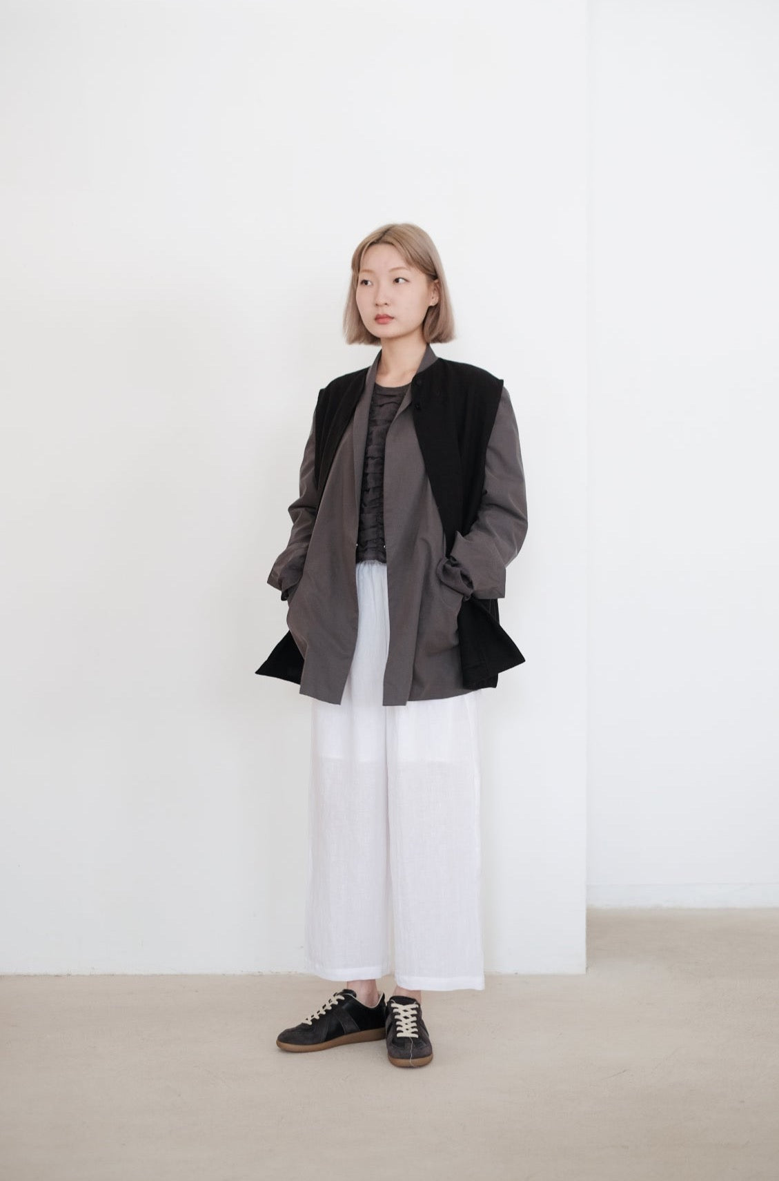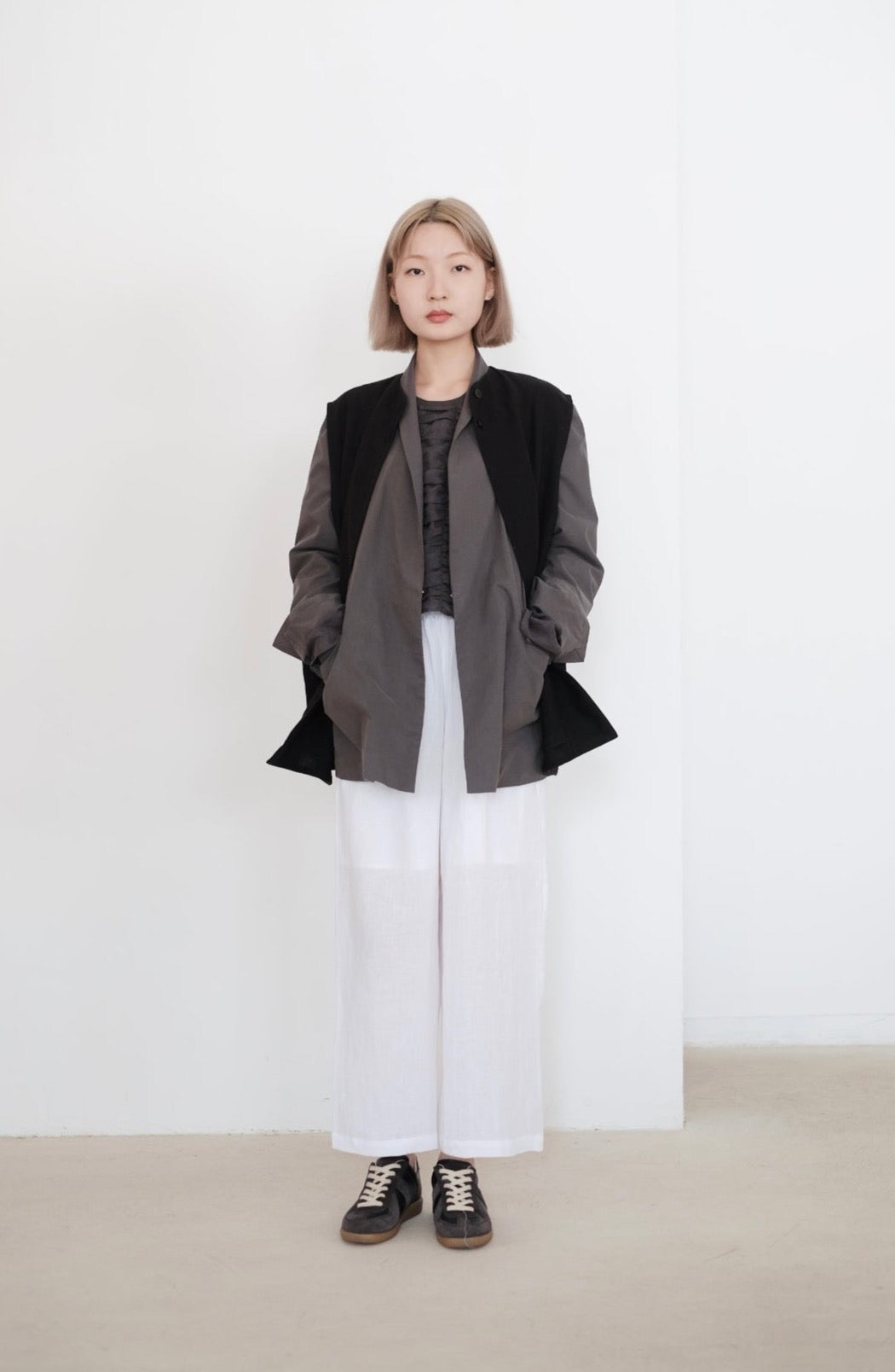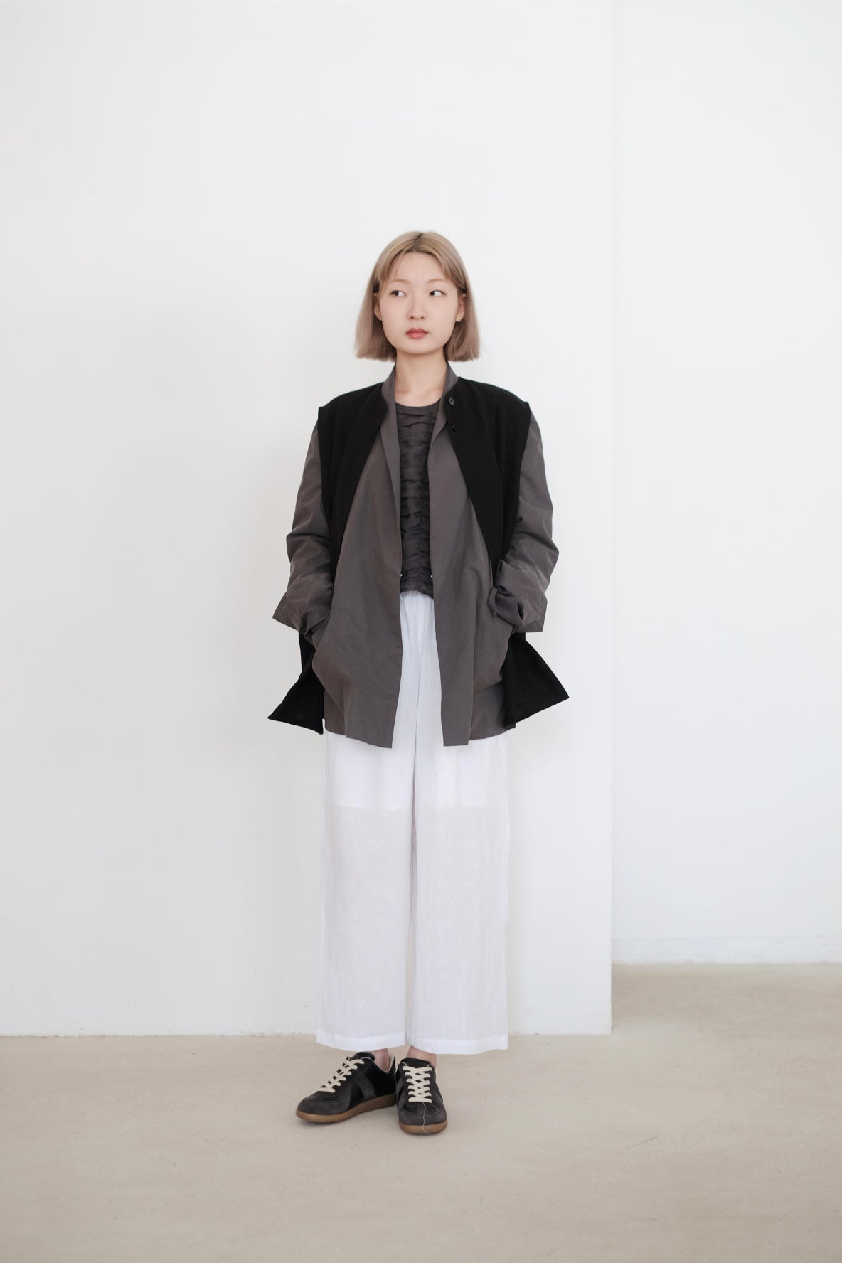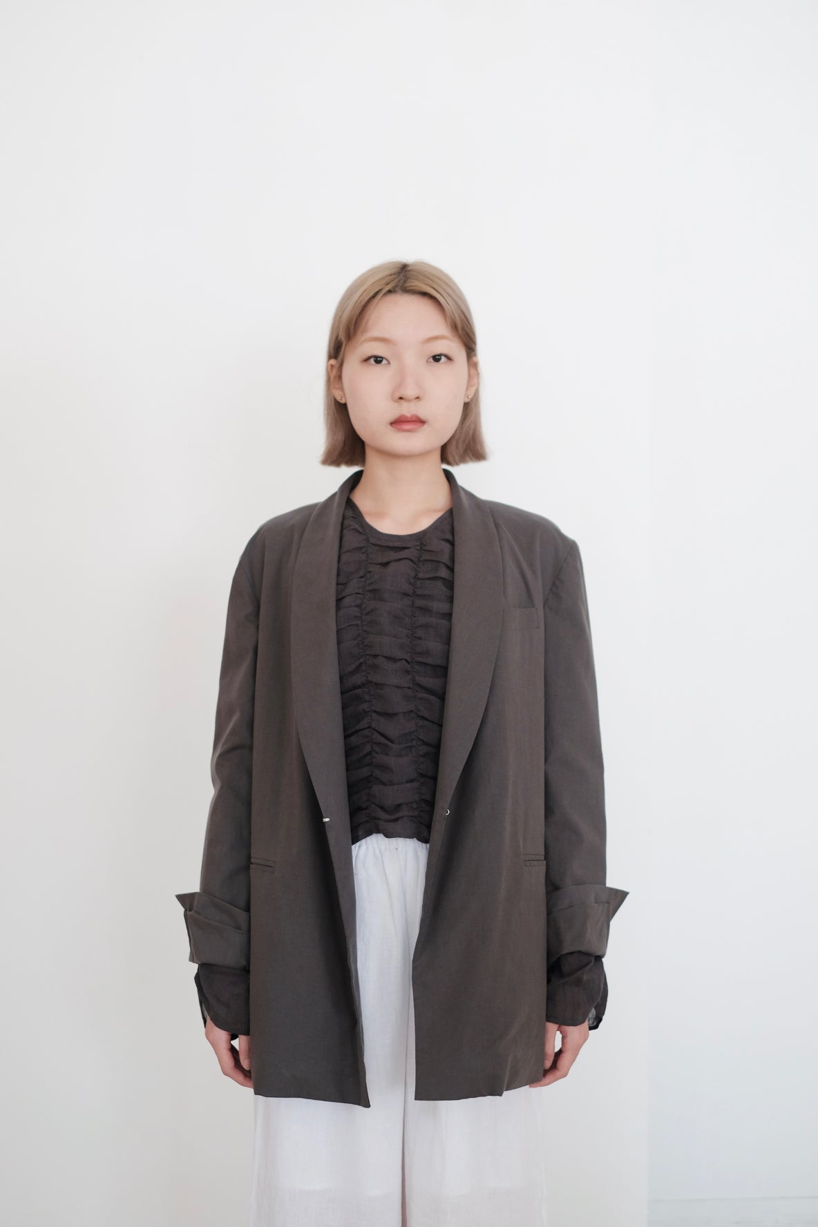 隱形鈕扣及手袖設小開叉成為外套一大特點