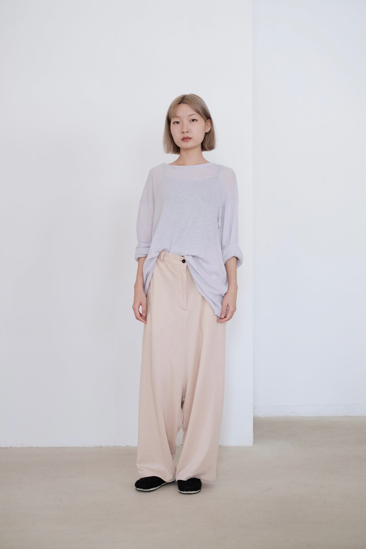 ・Shaped with wide legs in cozy loose finishing