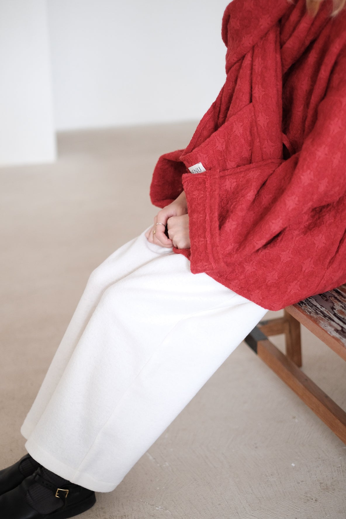 We recommend you a 30° soft wash cleaning and cool ironing to preserve the quality of this garment.