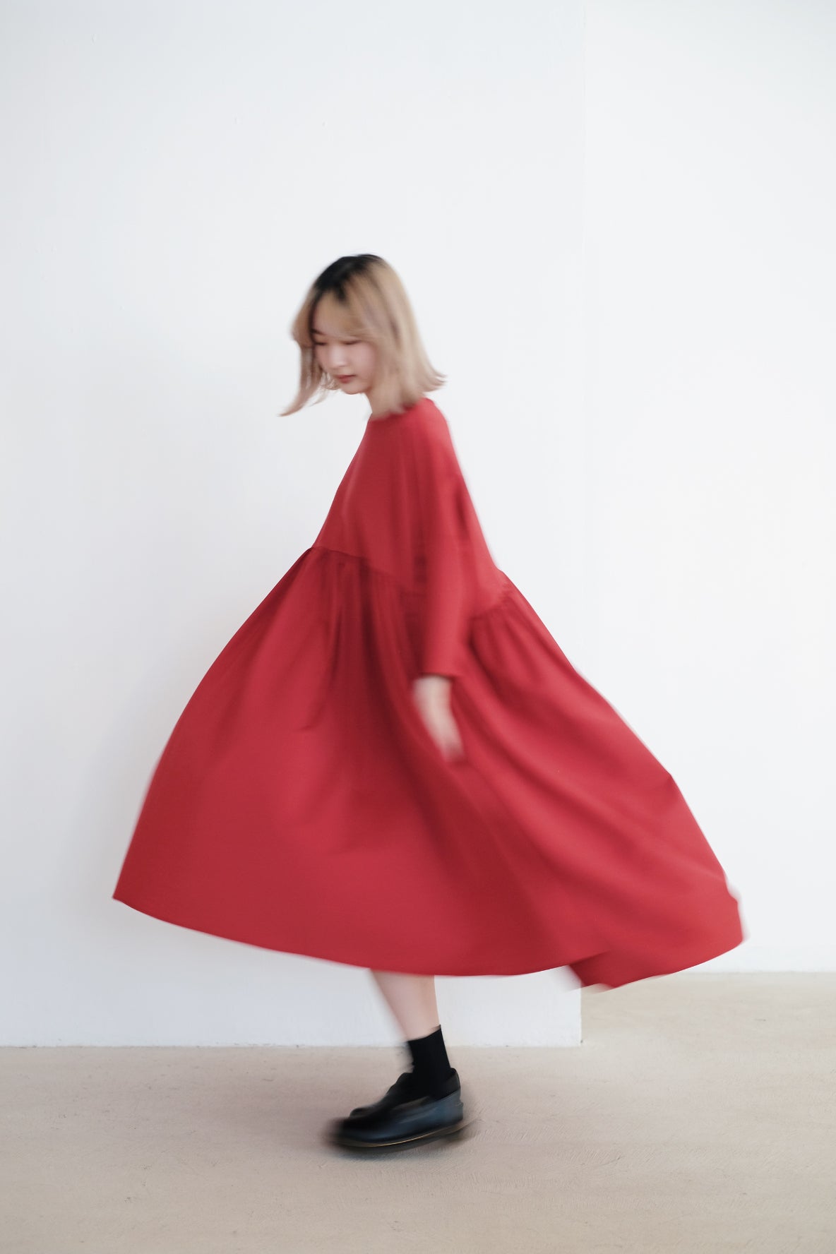 裙子的傘形剪裁和中長寬闊的下擺設計