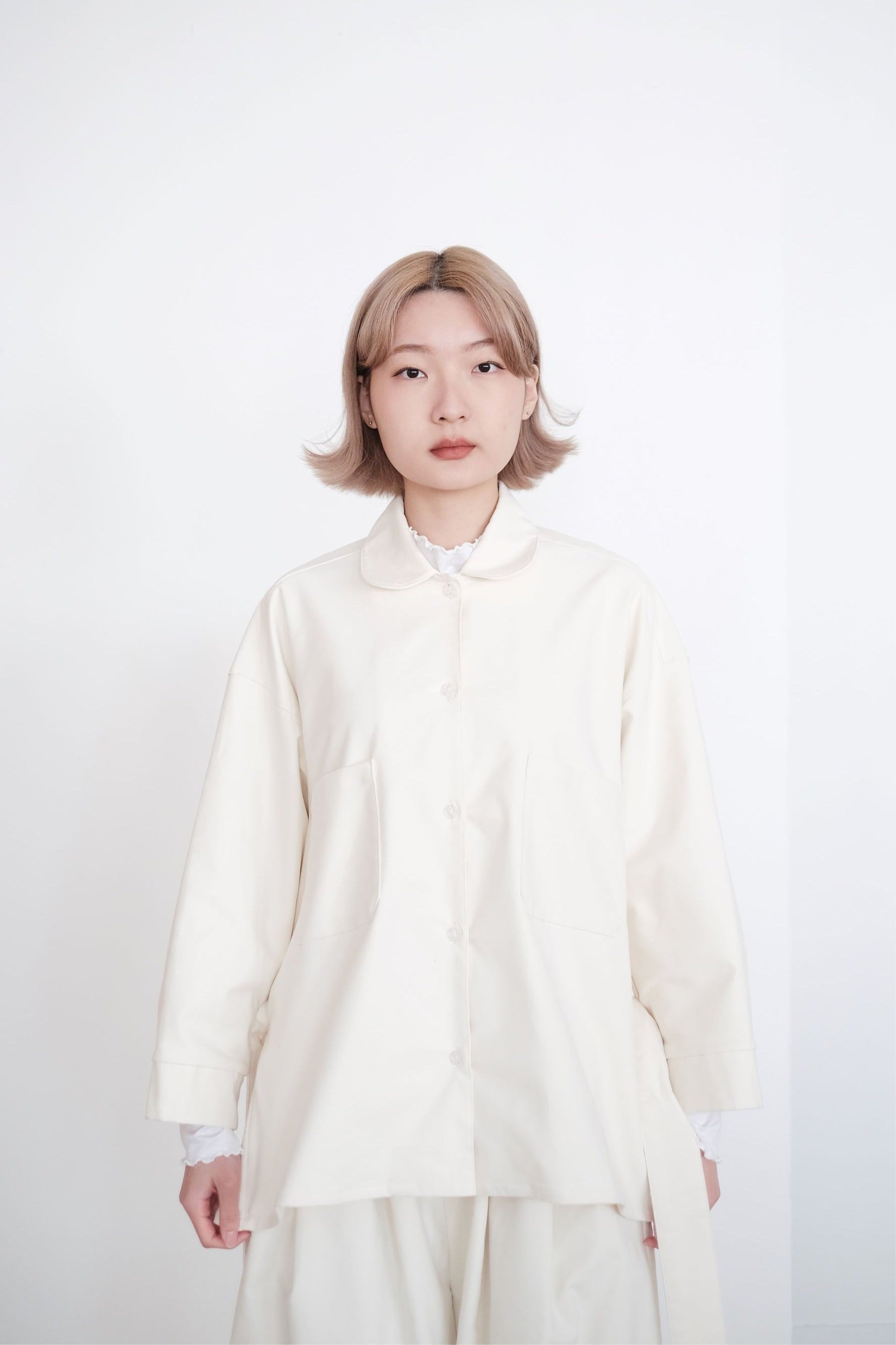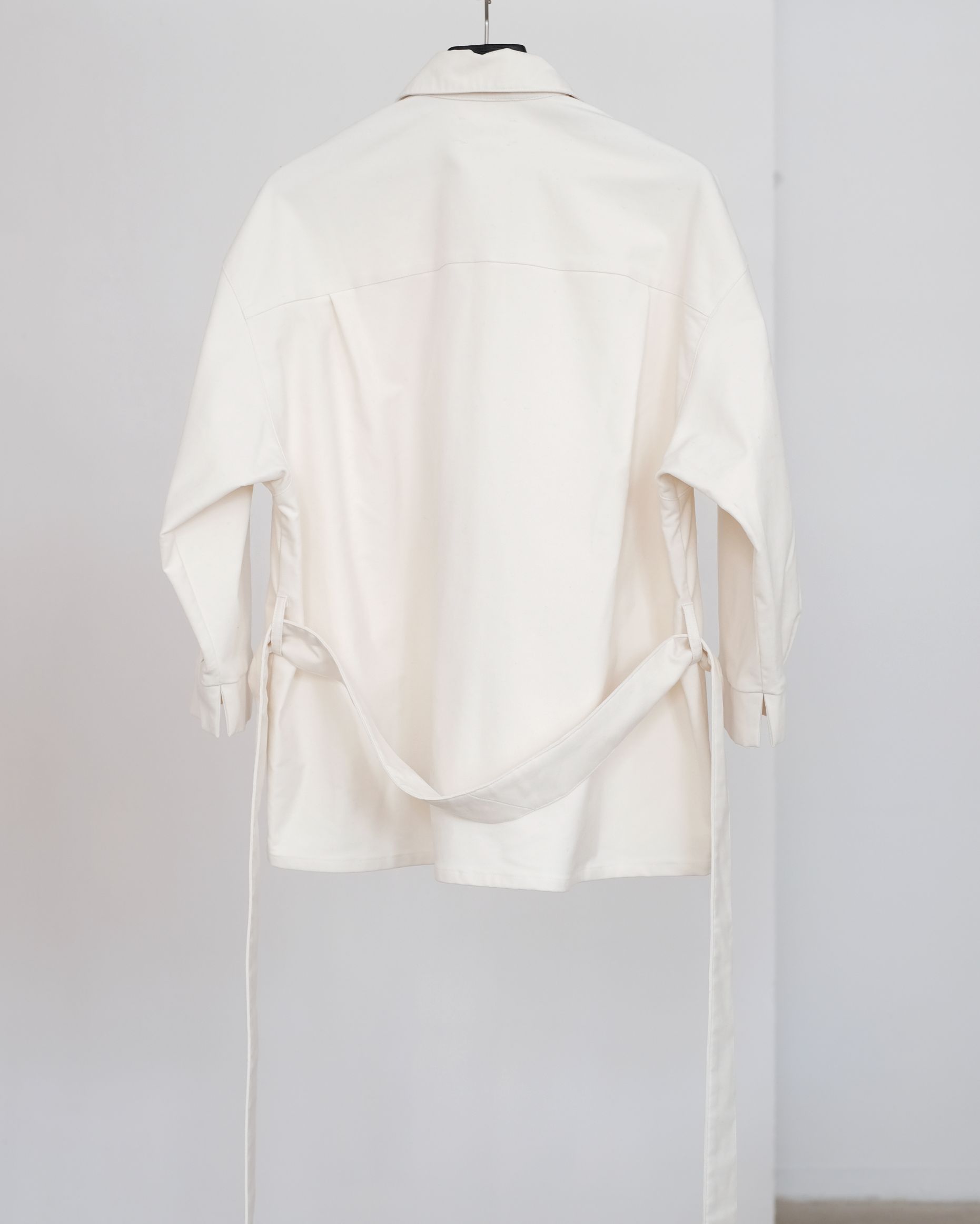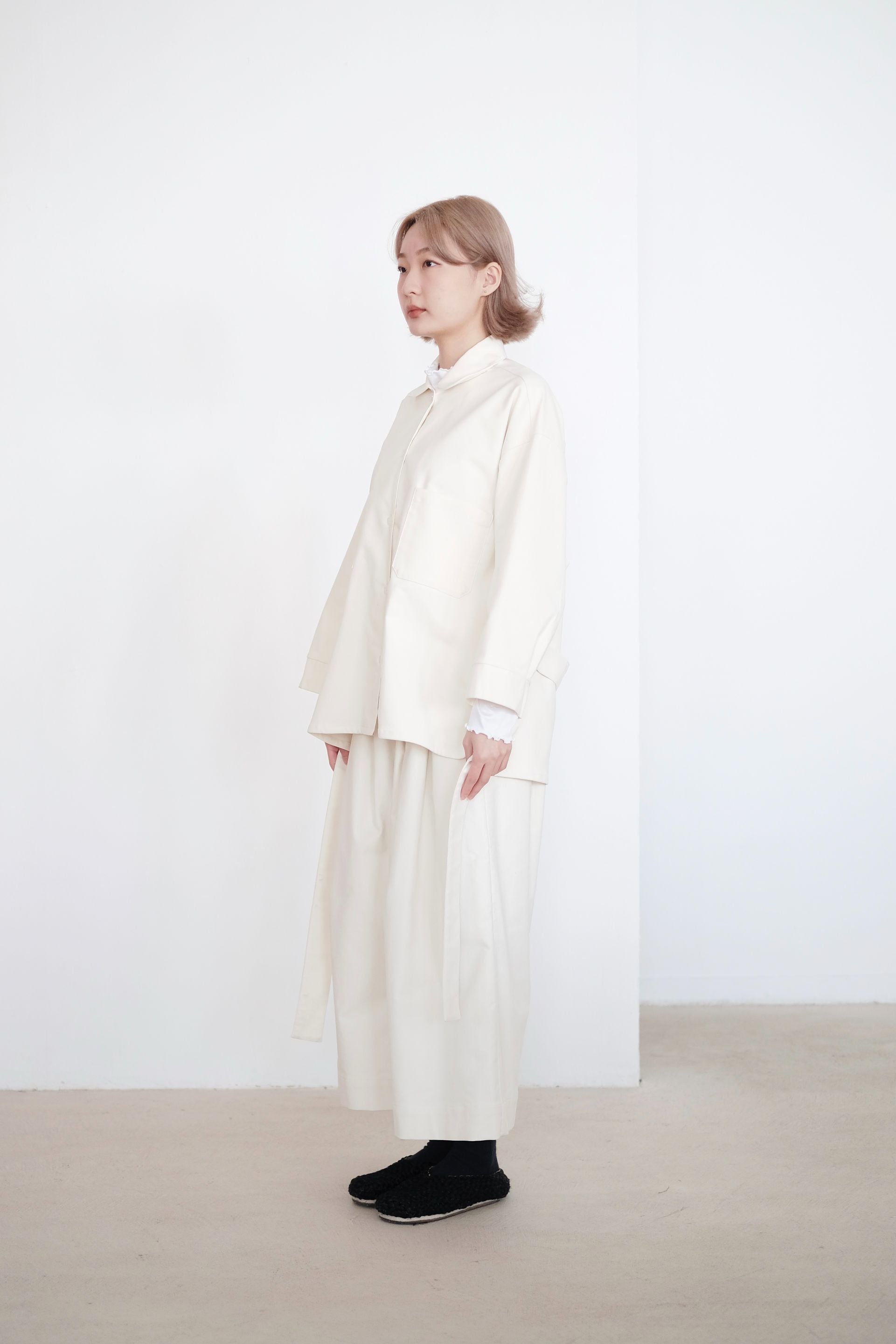 ・Features a belted waist and square pockets on the front