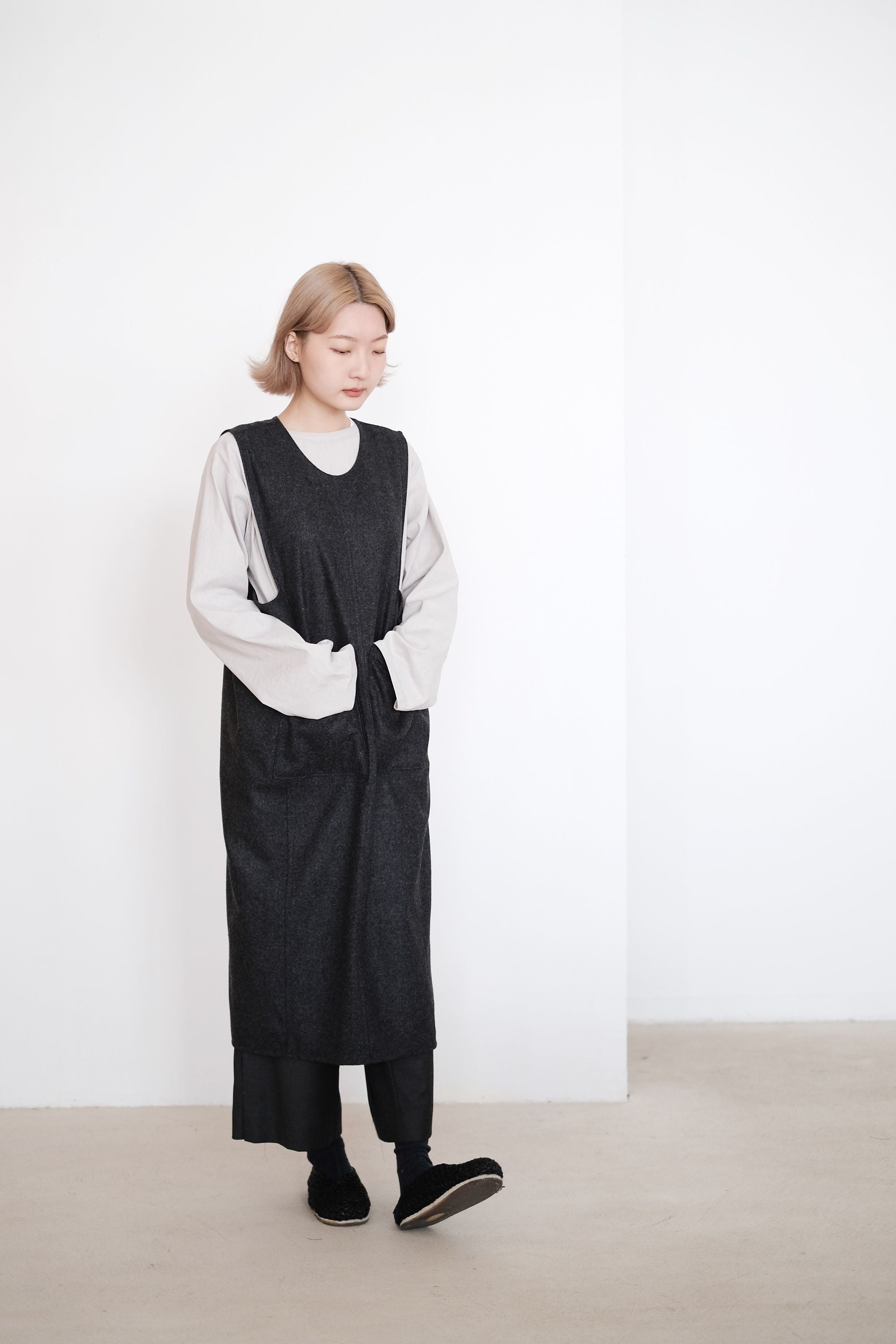 ARIA PLEAT-DETAIL PANTS (DARK GREY)