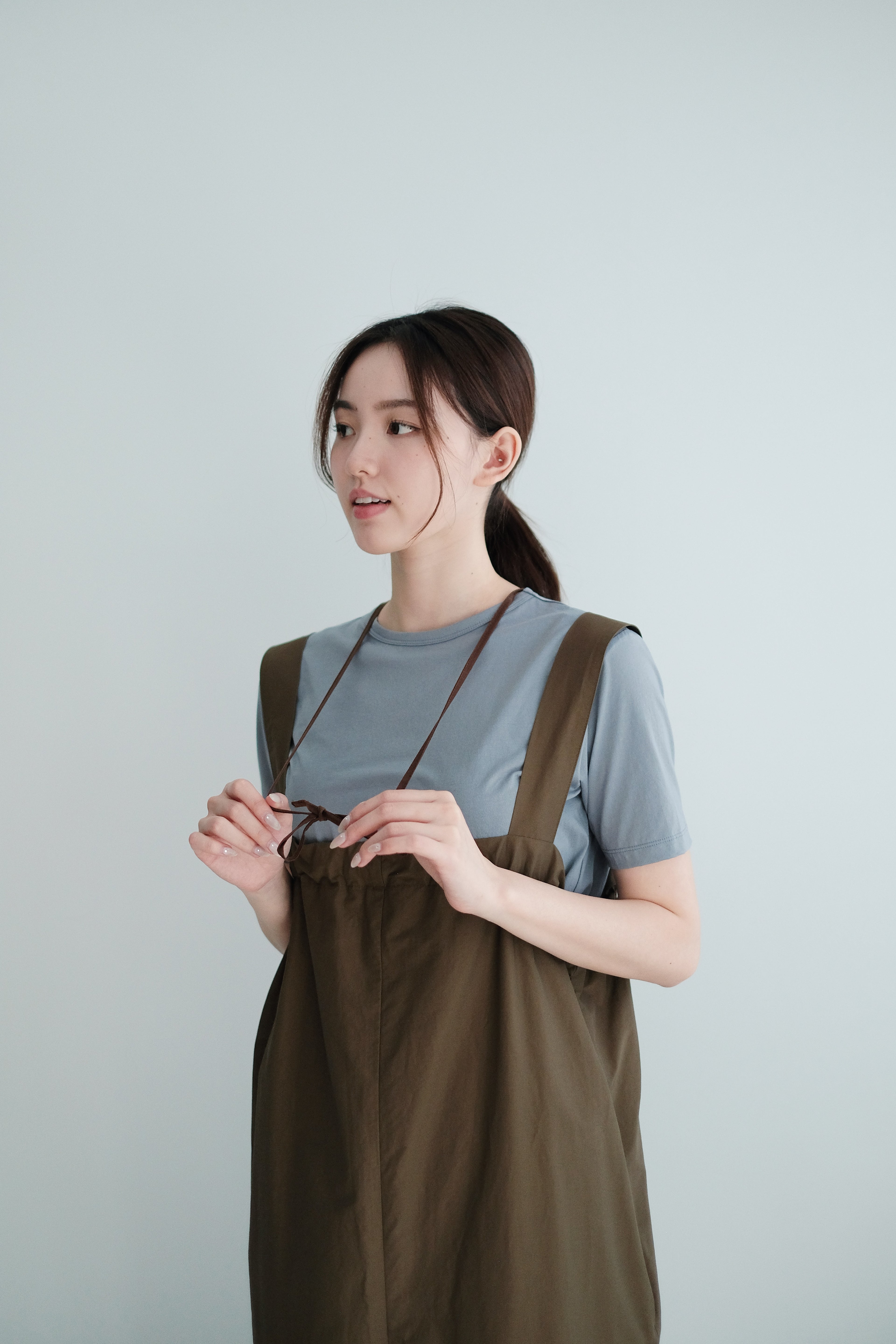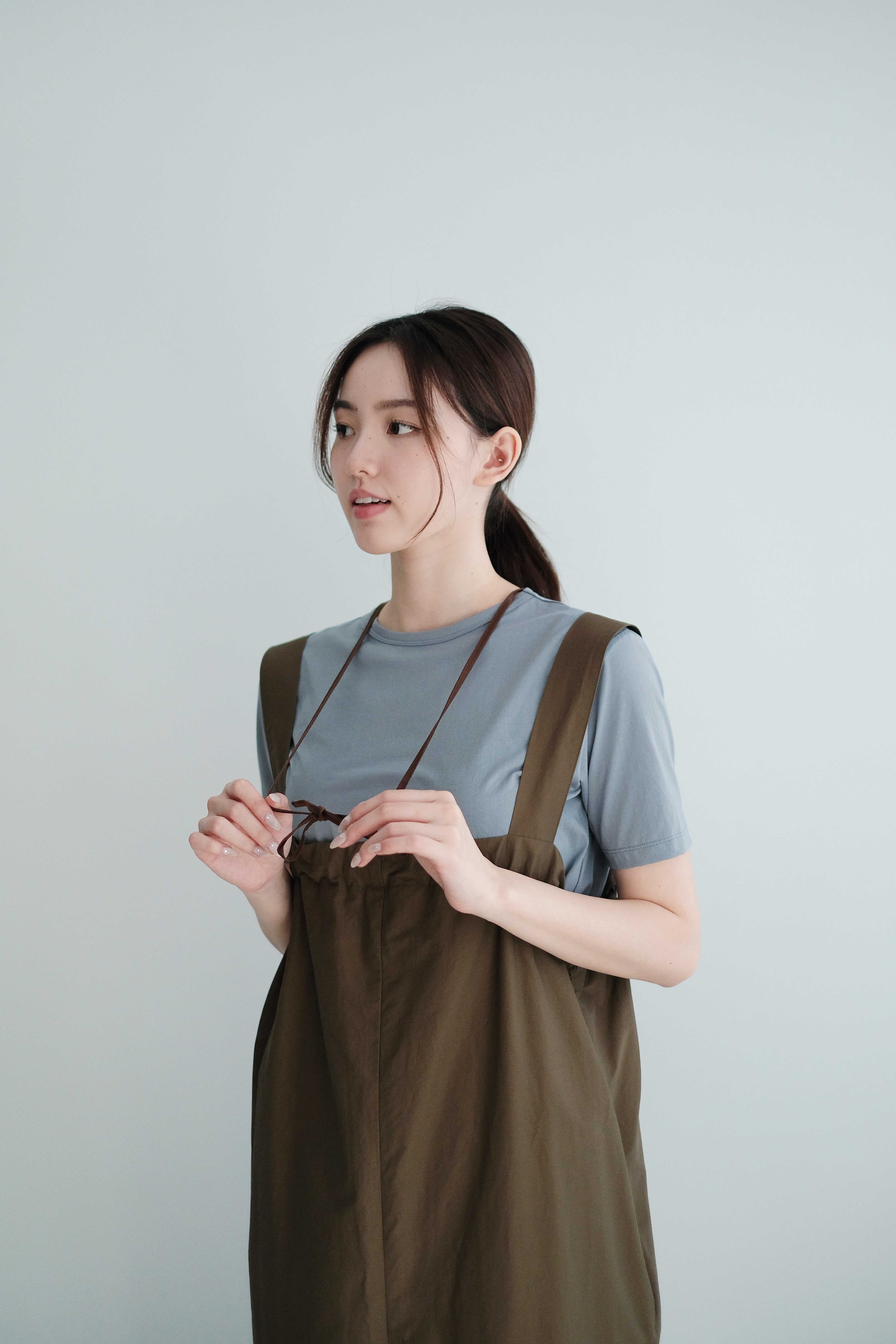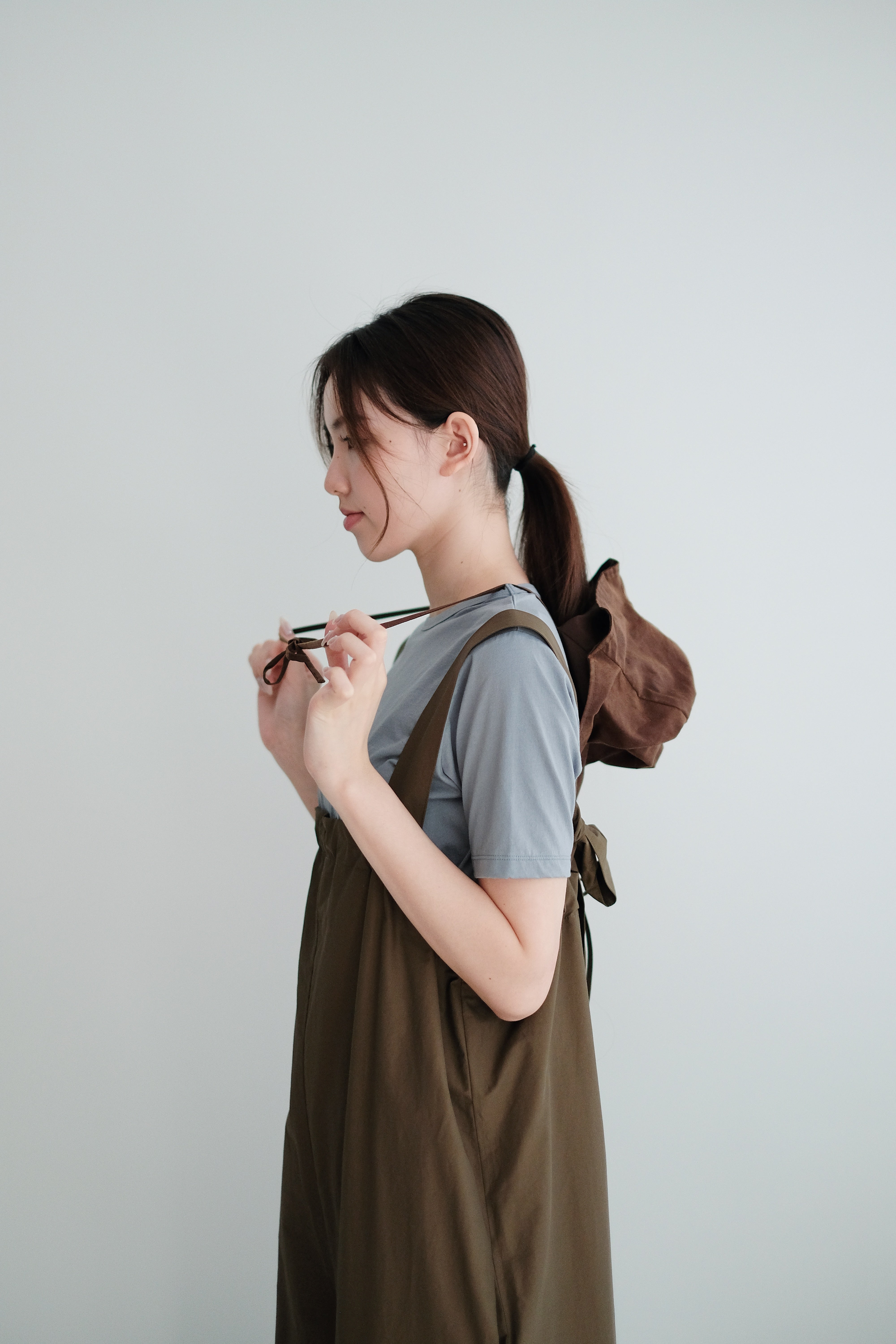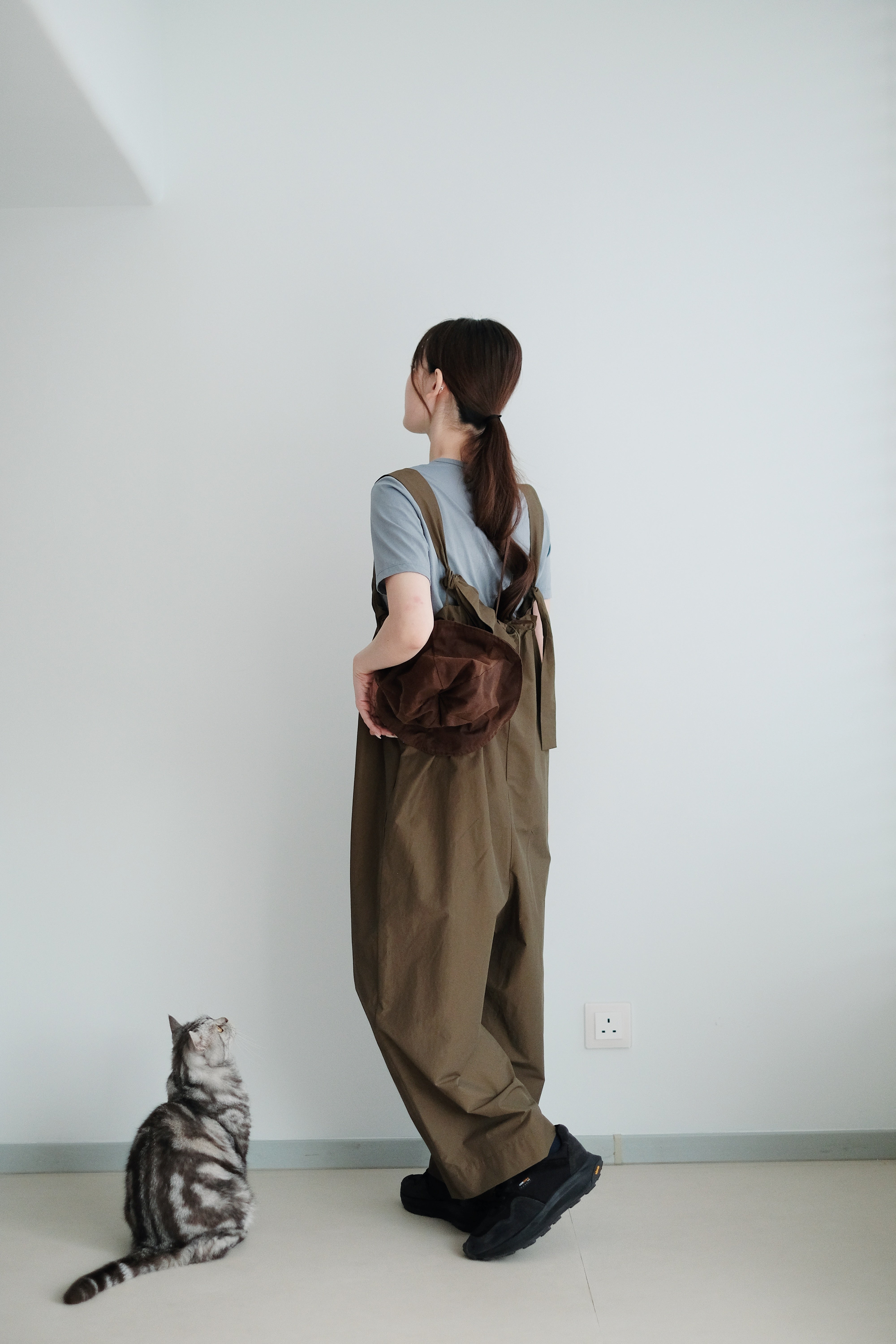 這款吊帶連身褲以 nylon 與 cotton 混紡布料製成,質地挺身之餘又保留一定柔軟度,帶出自然垂墜感。設計寬鬆,背面以抽繩綁結收腰,方便調節鬆緊,營造出隨性慵懶的廓形。兩側設有口袋,實用又加分。大地橄欖綠調沉靜內斂,低調中見個性,無論單穿或內搭都充滿造型感。