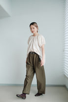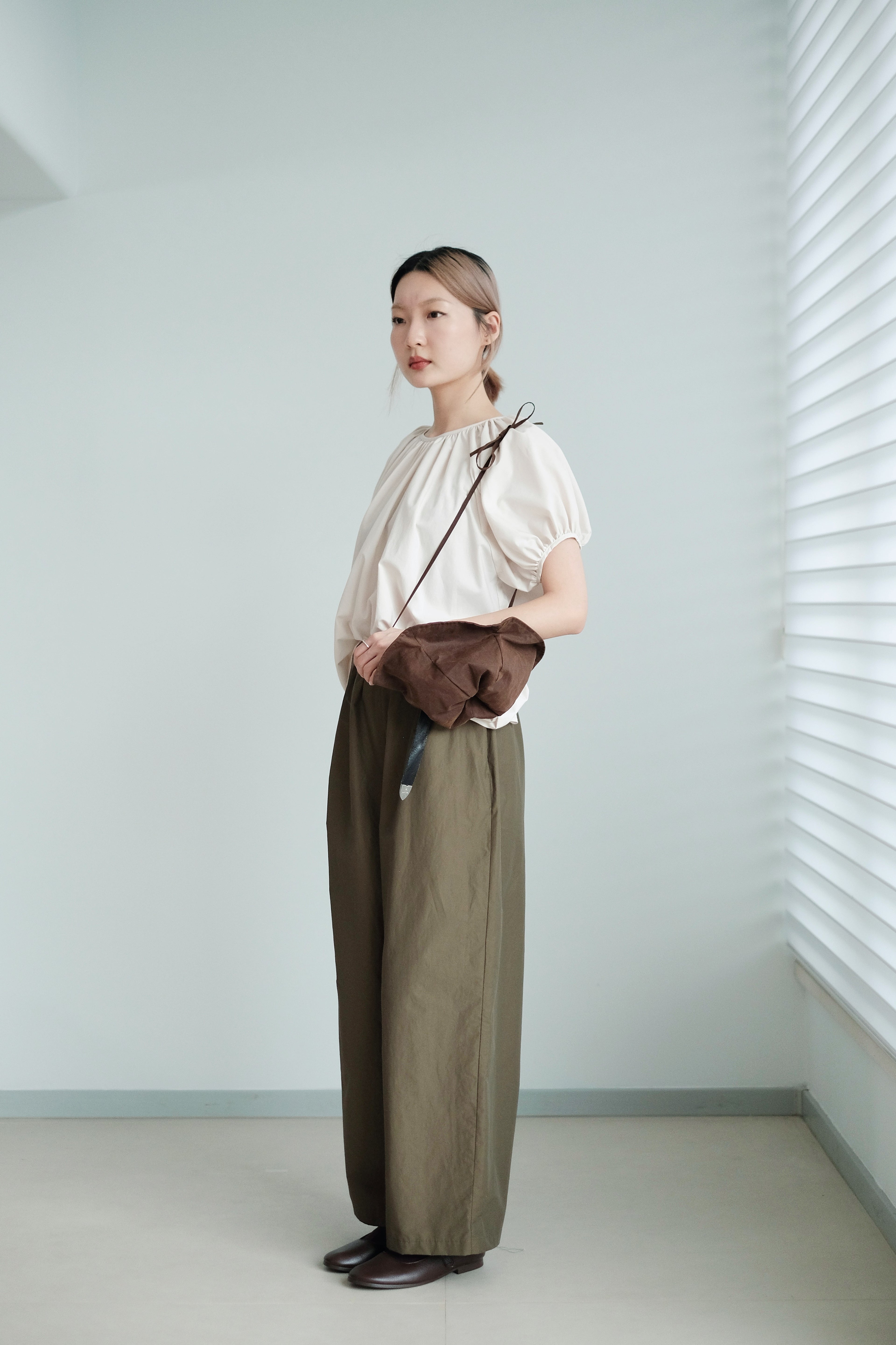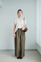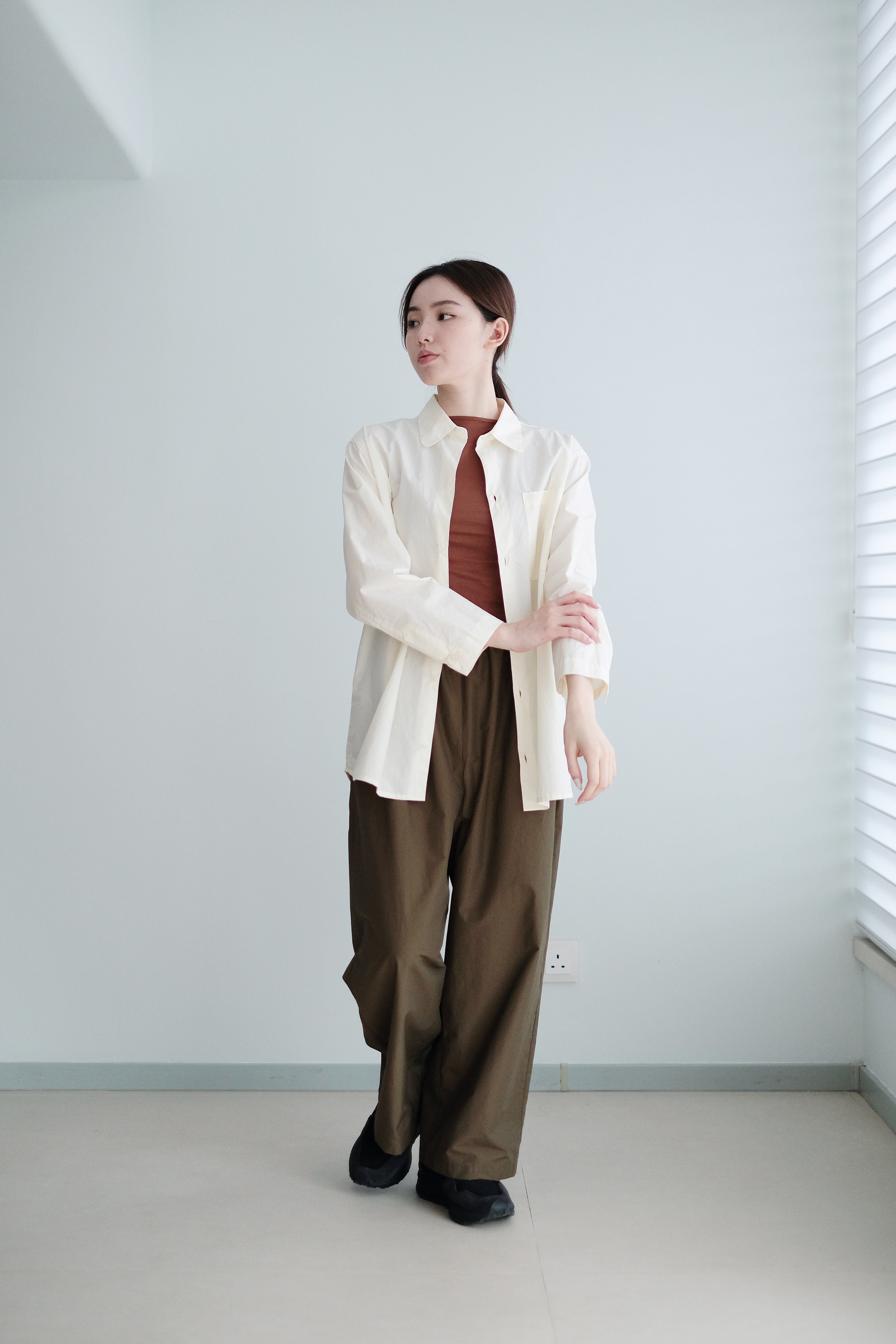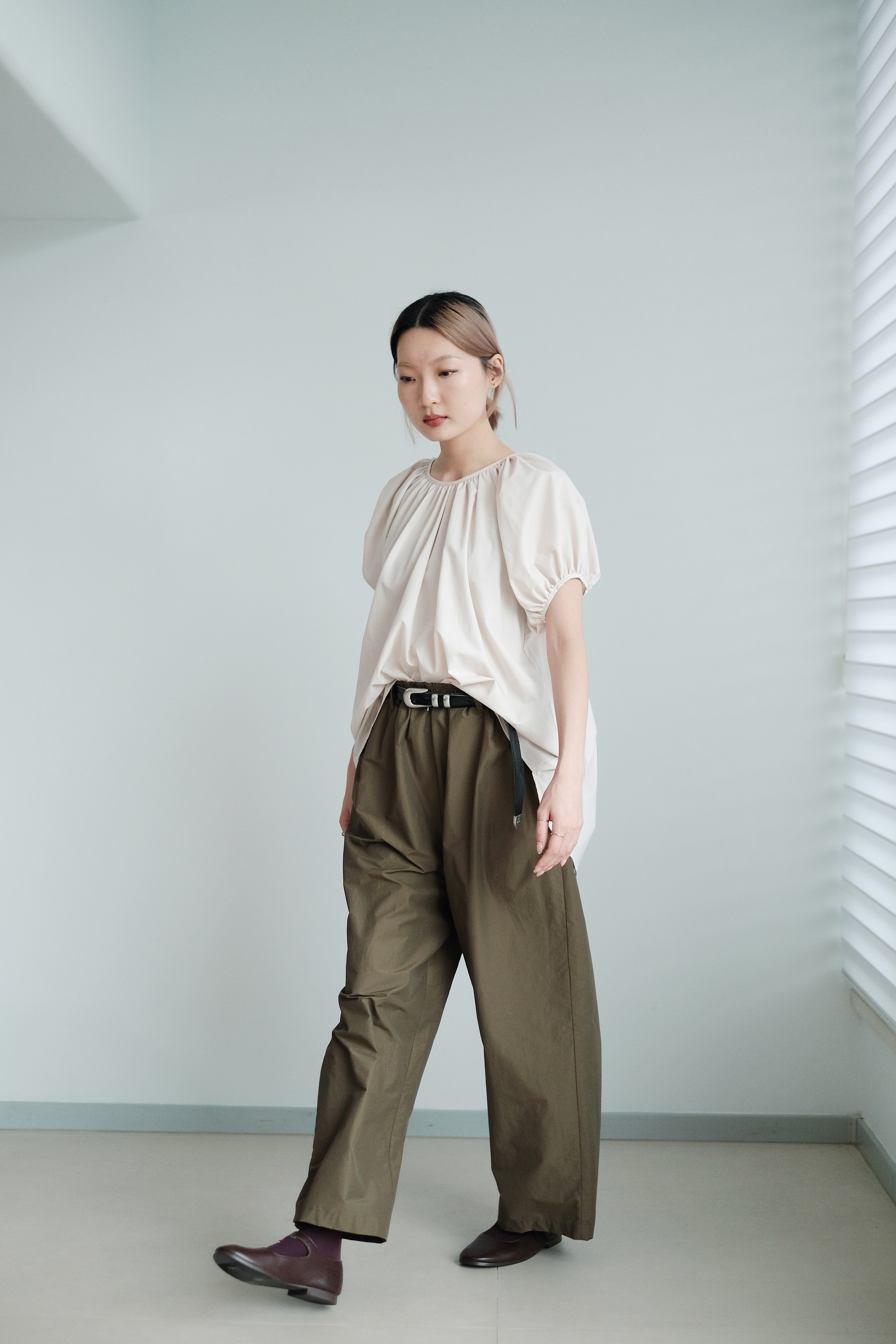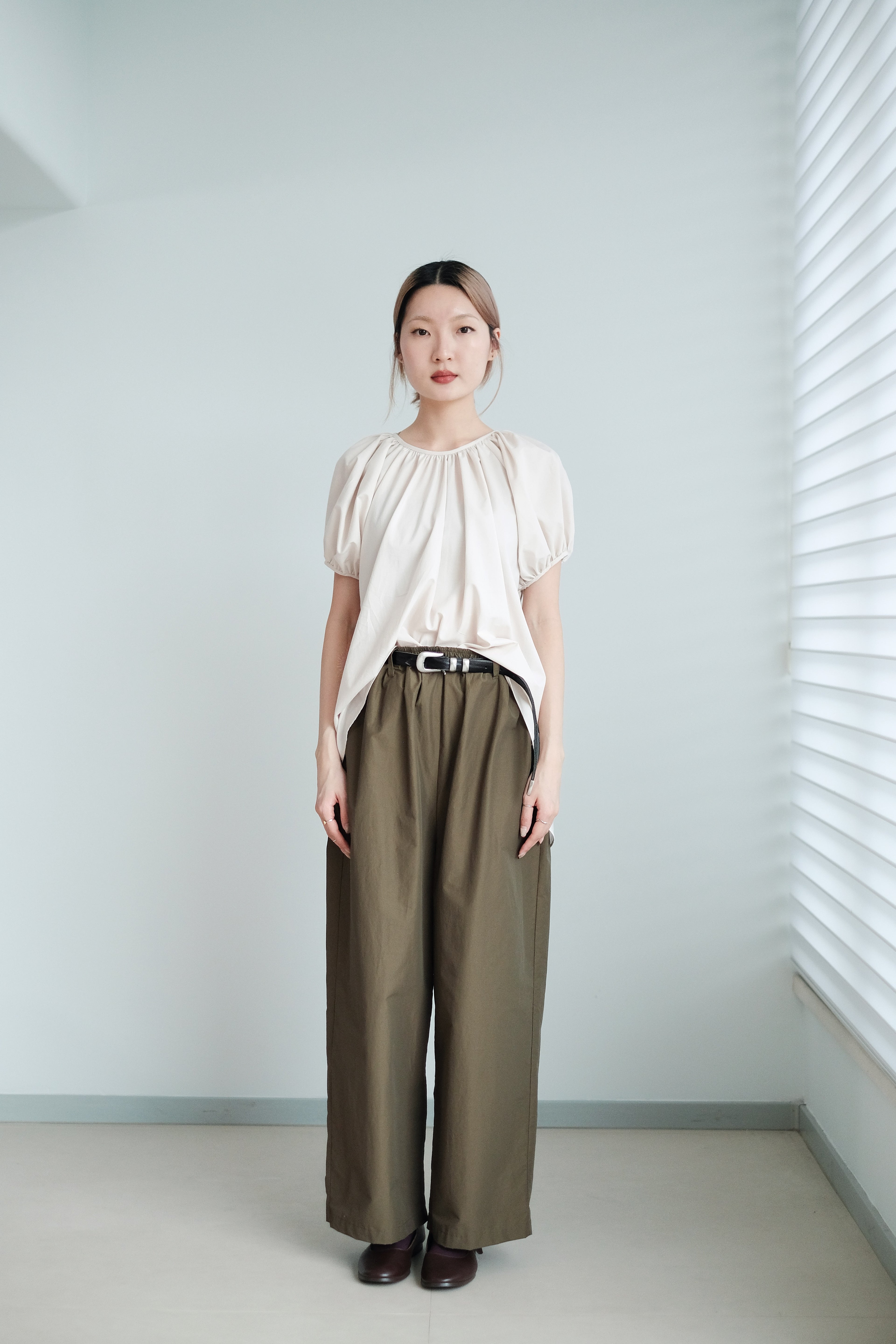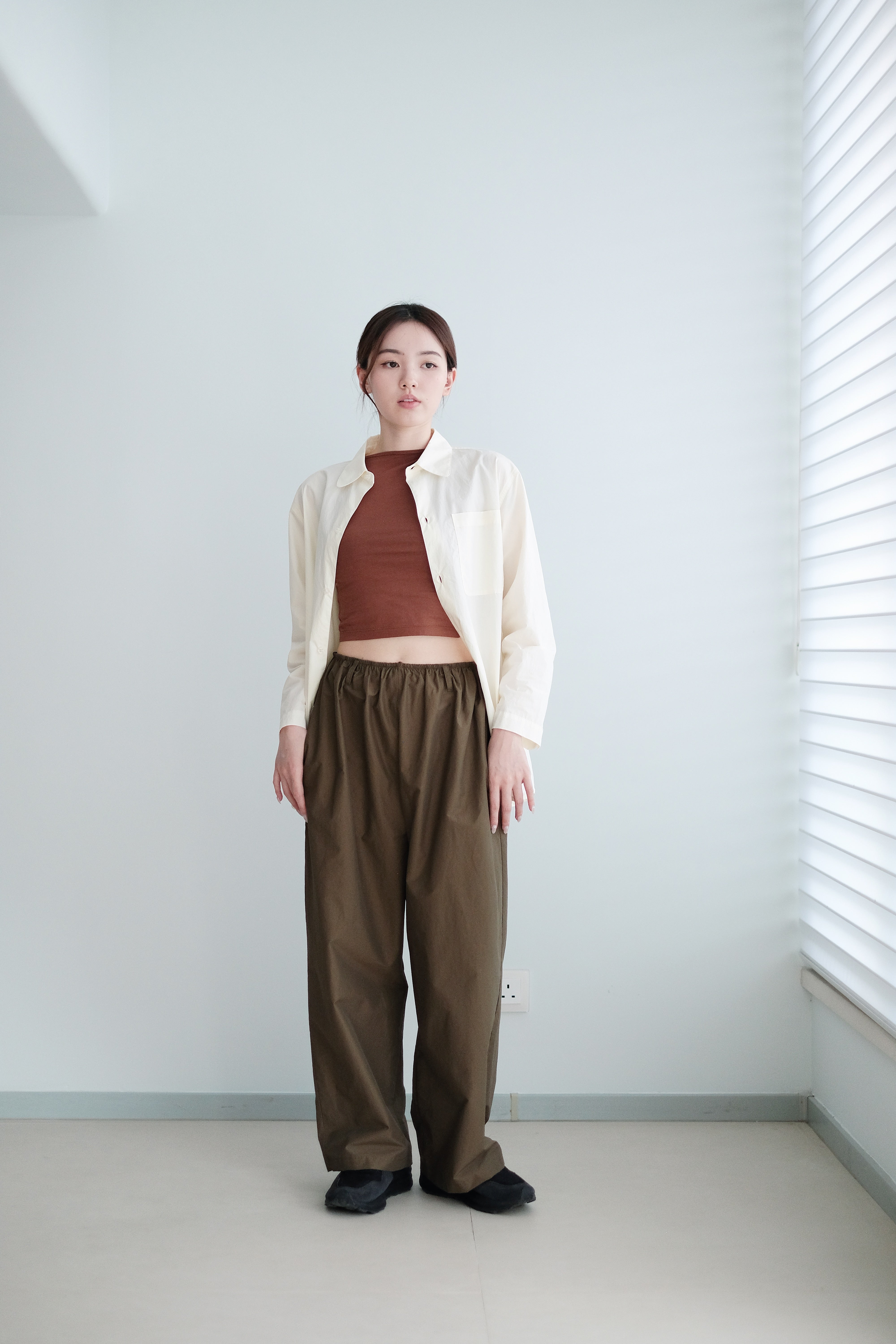 挺身輕爽的夏日寬褲,用上不完全棉質的混紡面料,帶少量微光澤,質感自然挺拔。高腰設計配以鬆緊腰頭及褲耳,穿著舒適又具調節彈性,闊腳剪裁利落俐落,配搭度極高。不論簡單Tee、襯衫或背心,都能輕鬆穿出俐落風格。