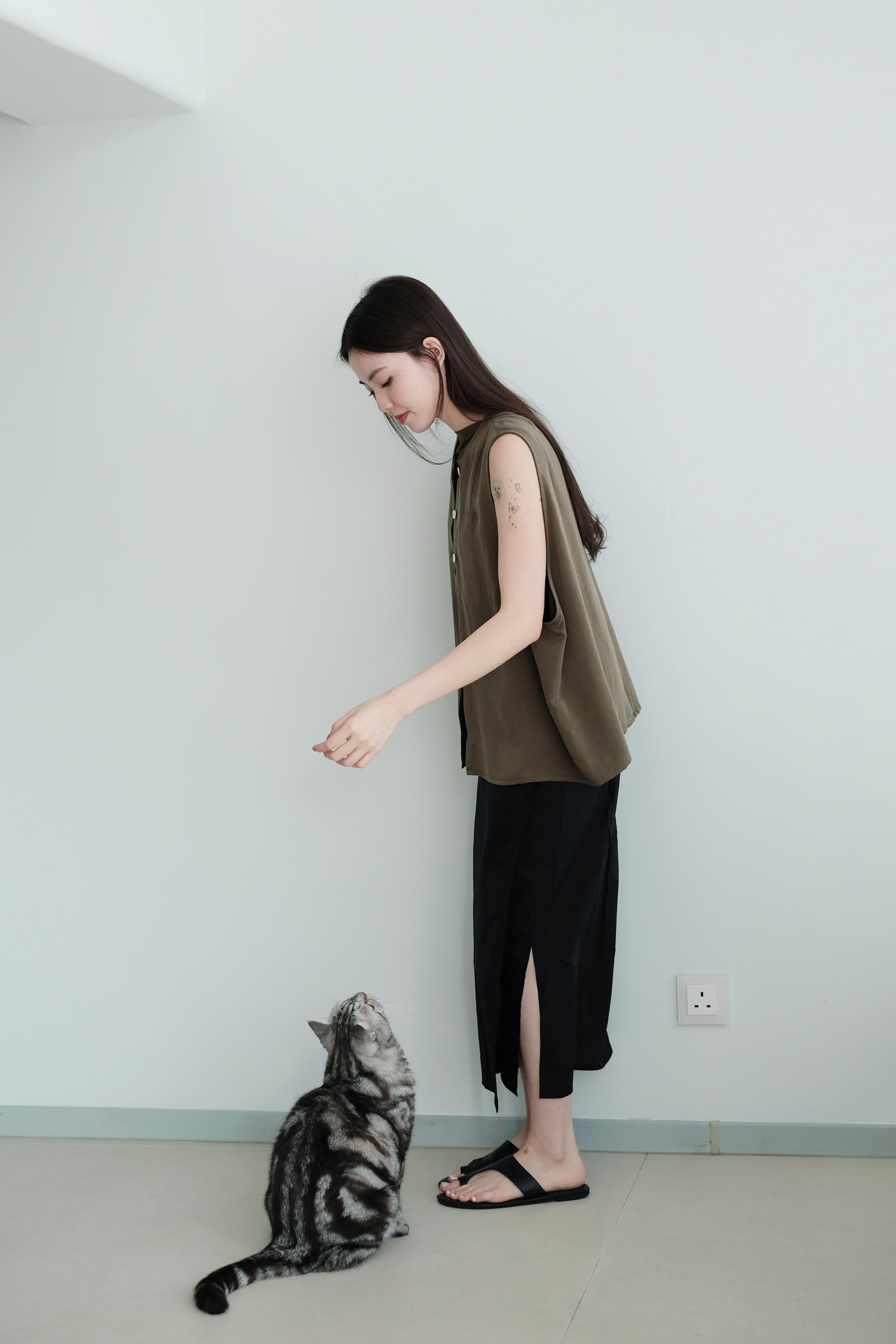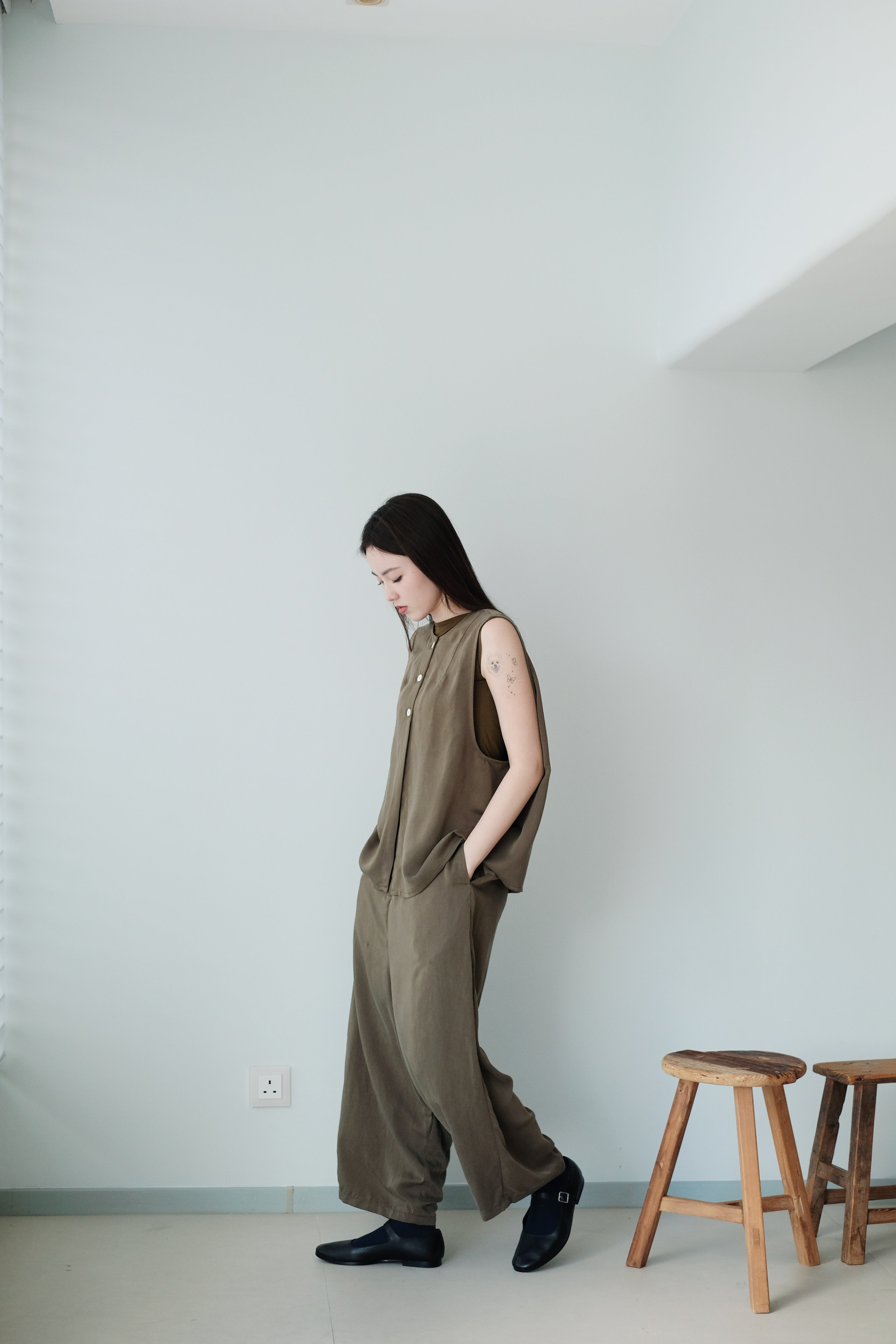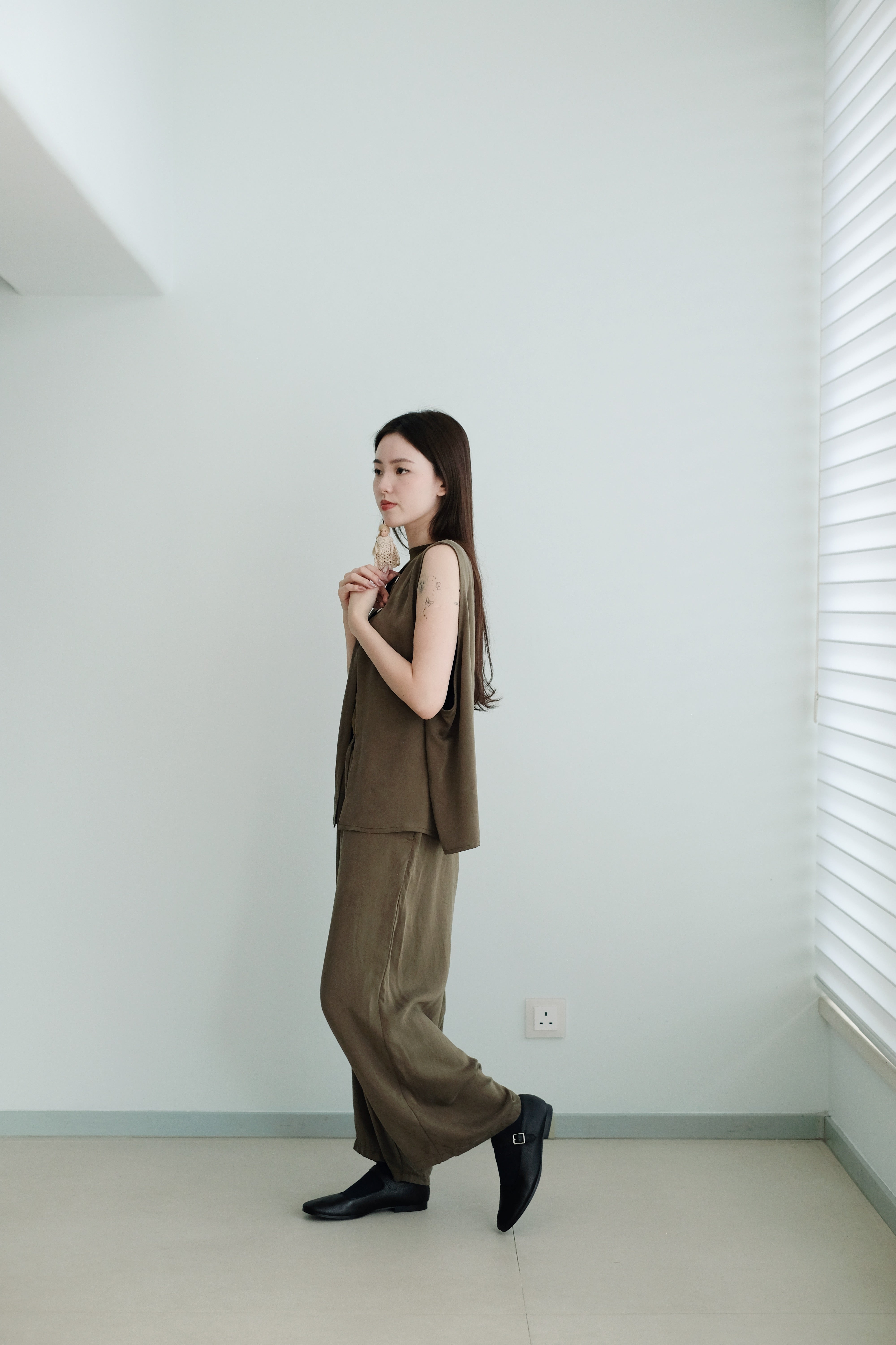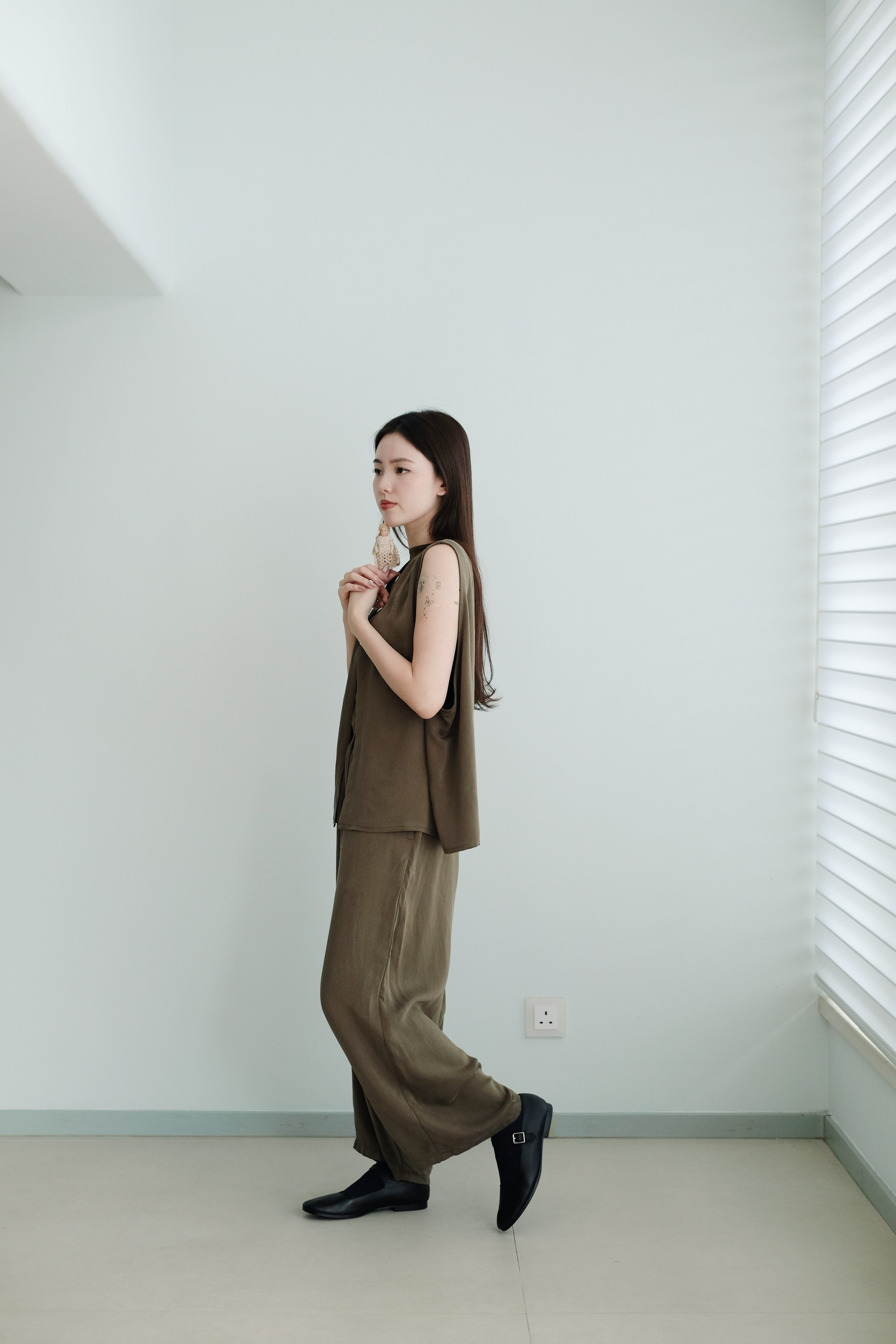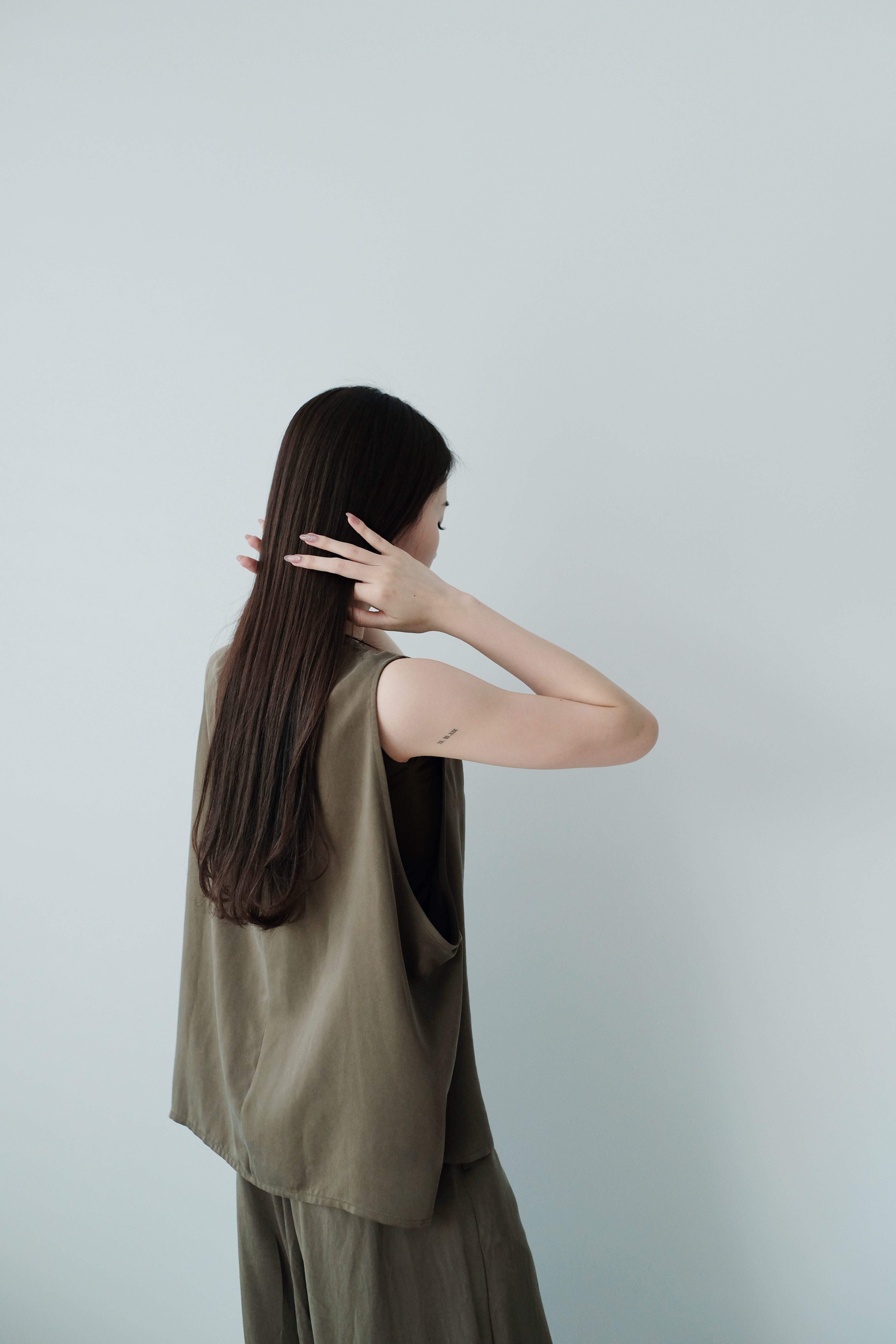 A refined sleeveless top in a forest green. Featuring a structured cut and front button detail, it works beautifully as a standalone piece or layered over light blouses and dresses.