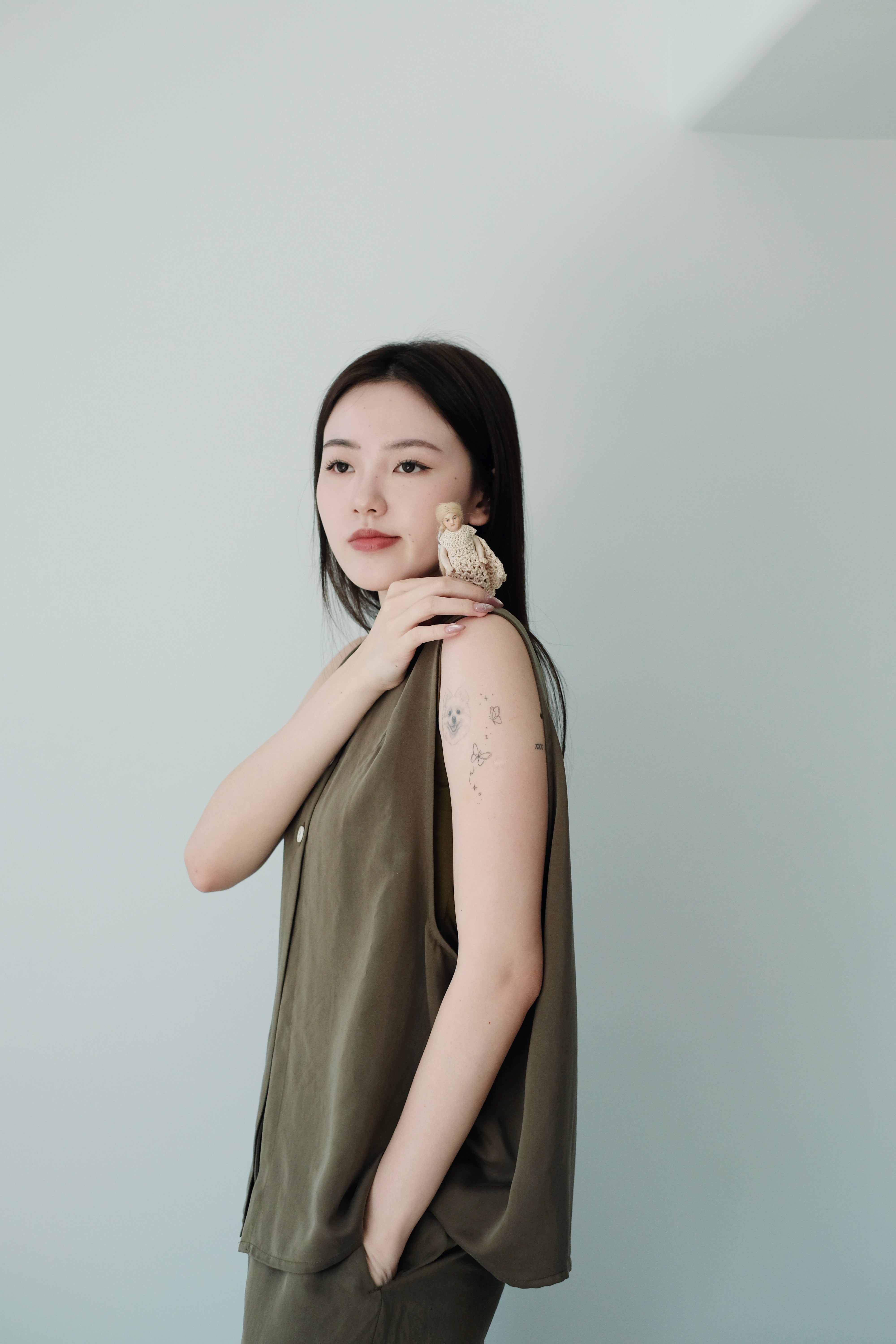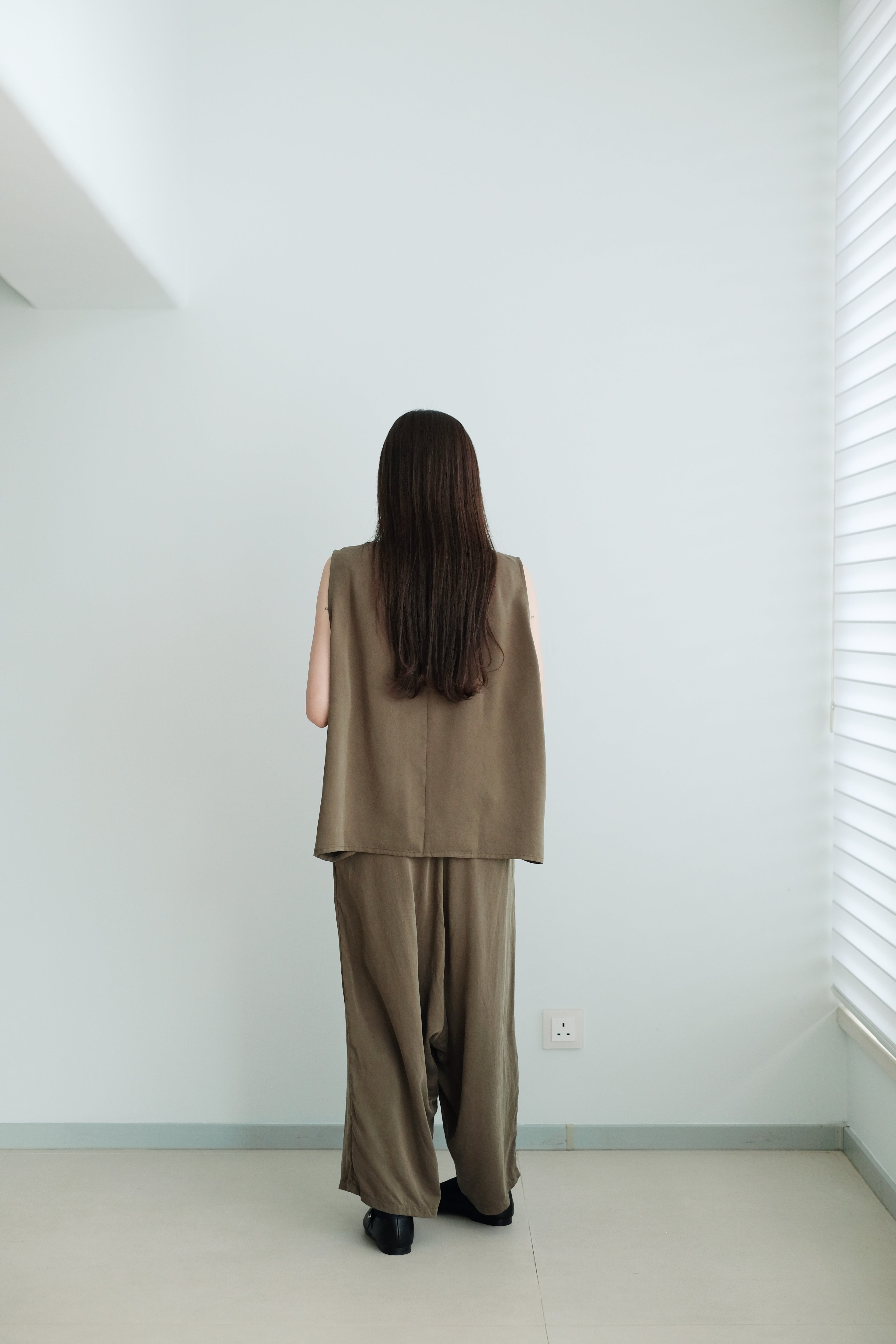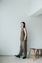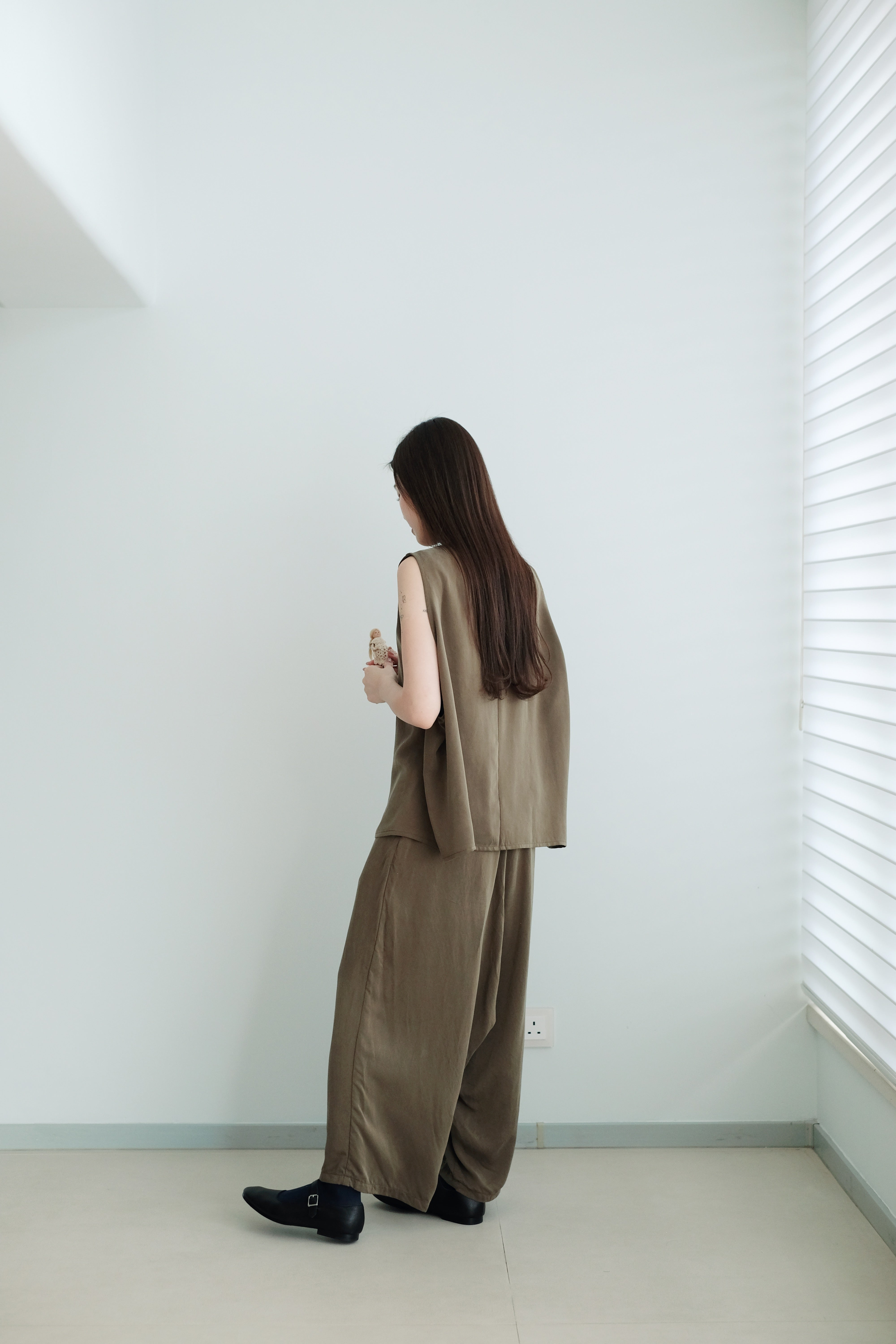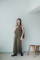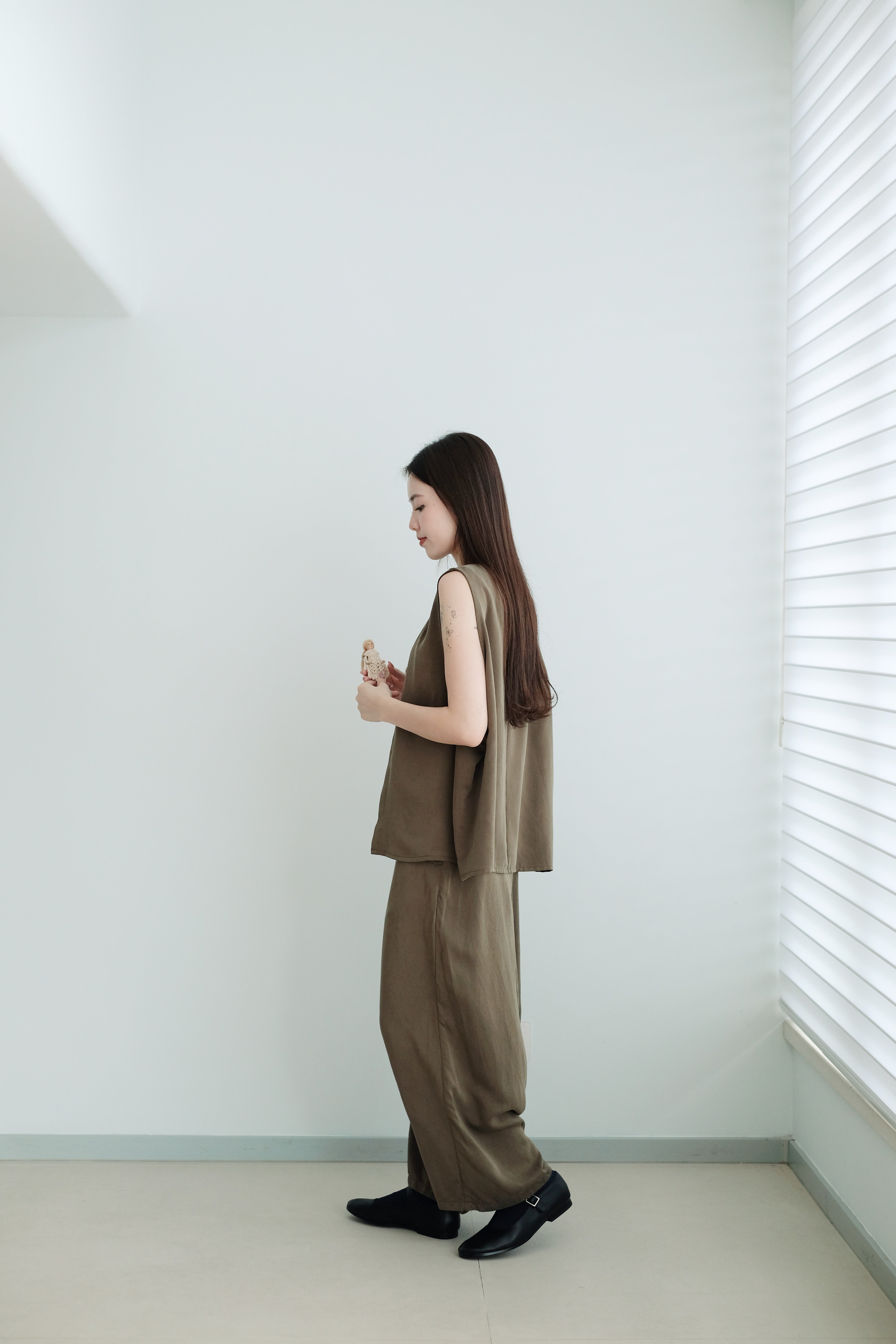 A refined sleeveless top in a forest green. Featuring a structured cut and front button detail, it works beautifully as a standalone piece or layered over light blouses and dresses.