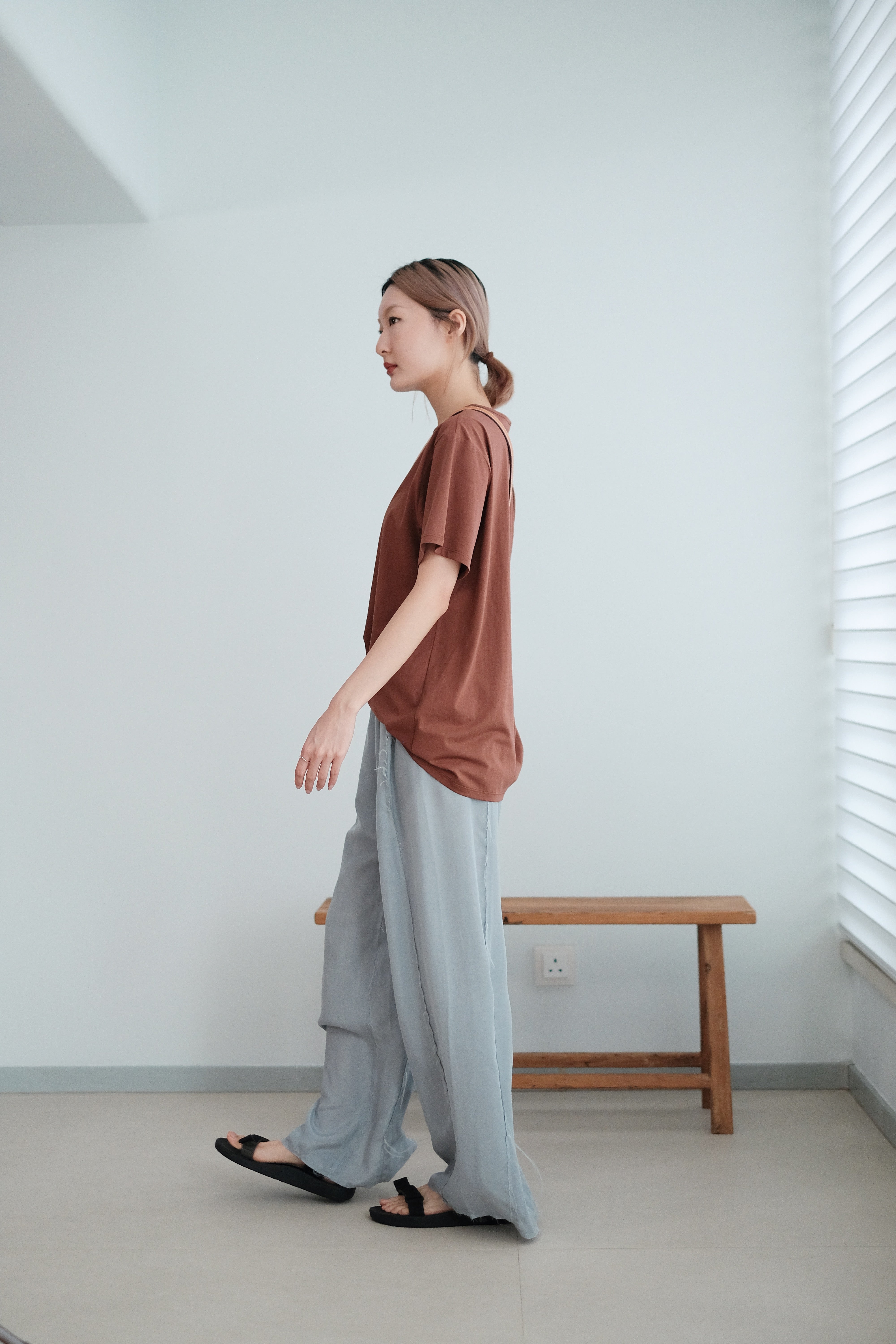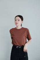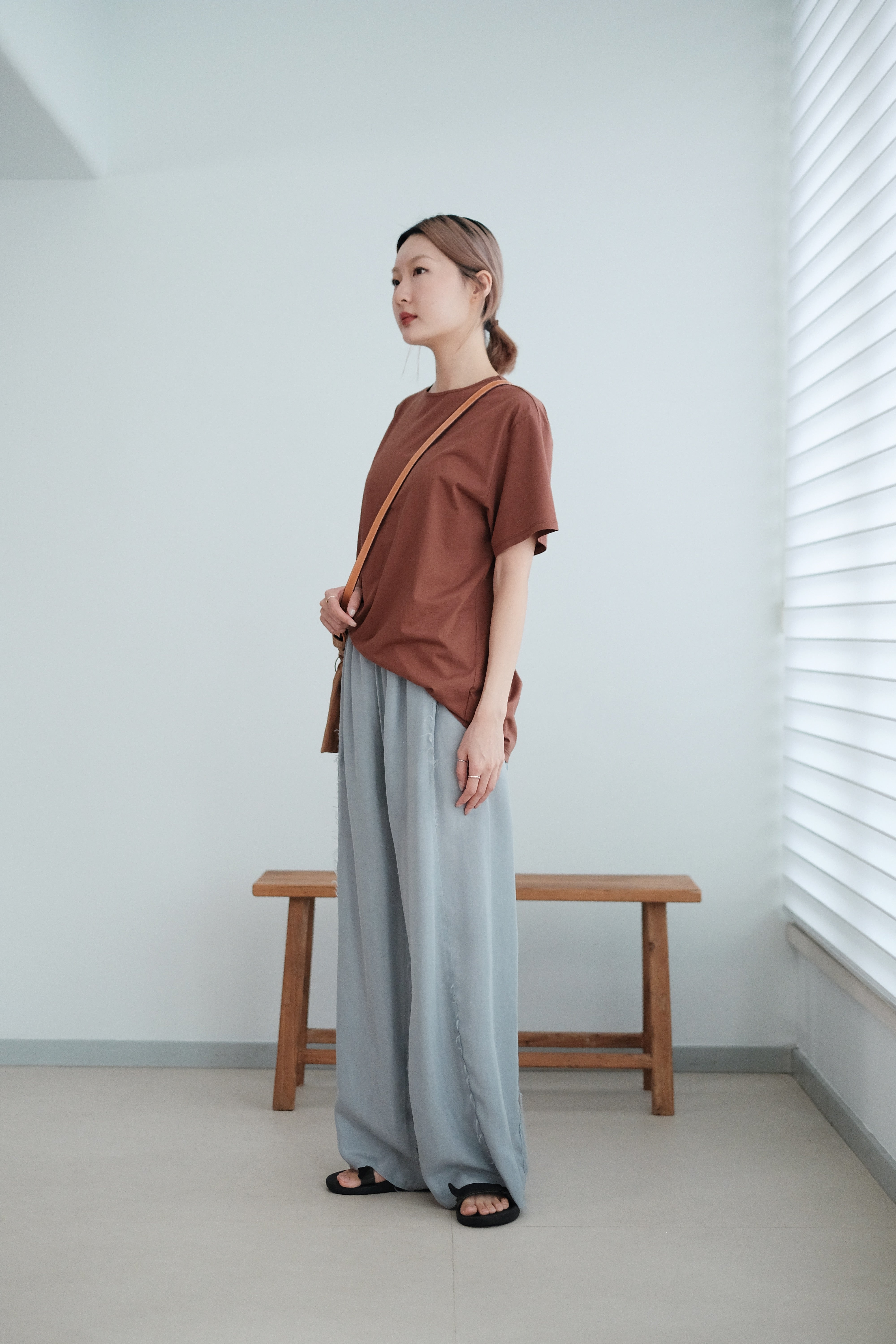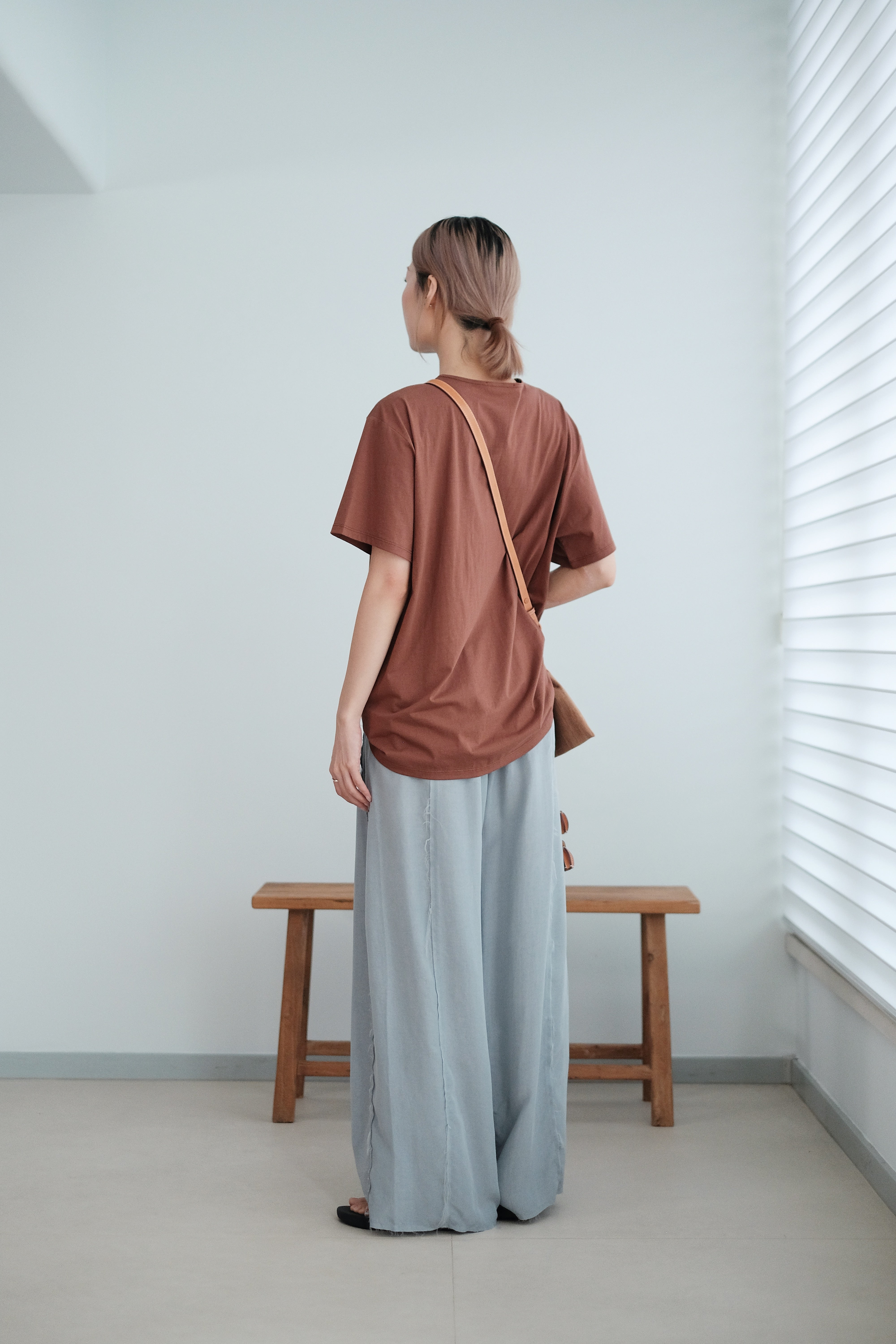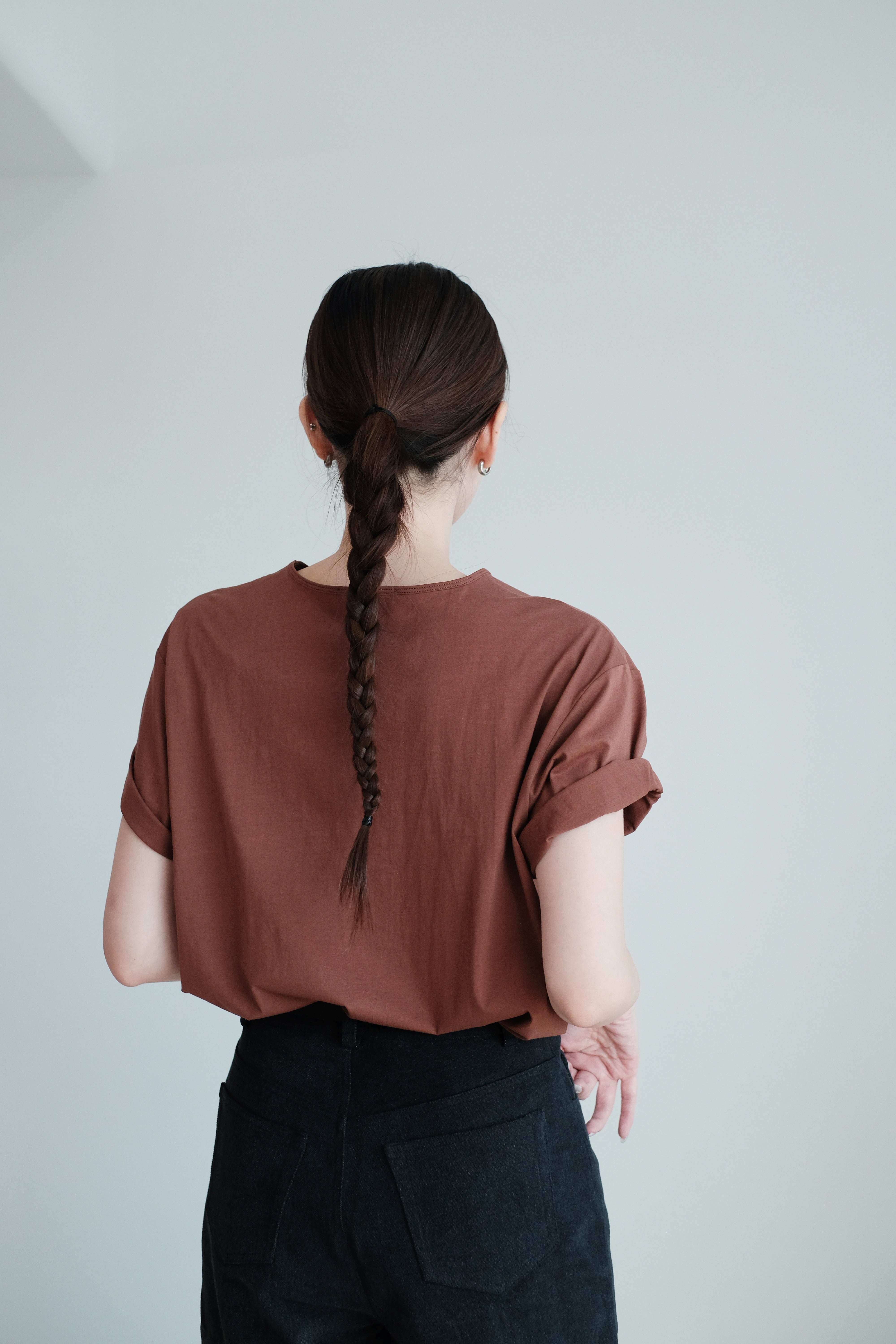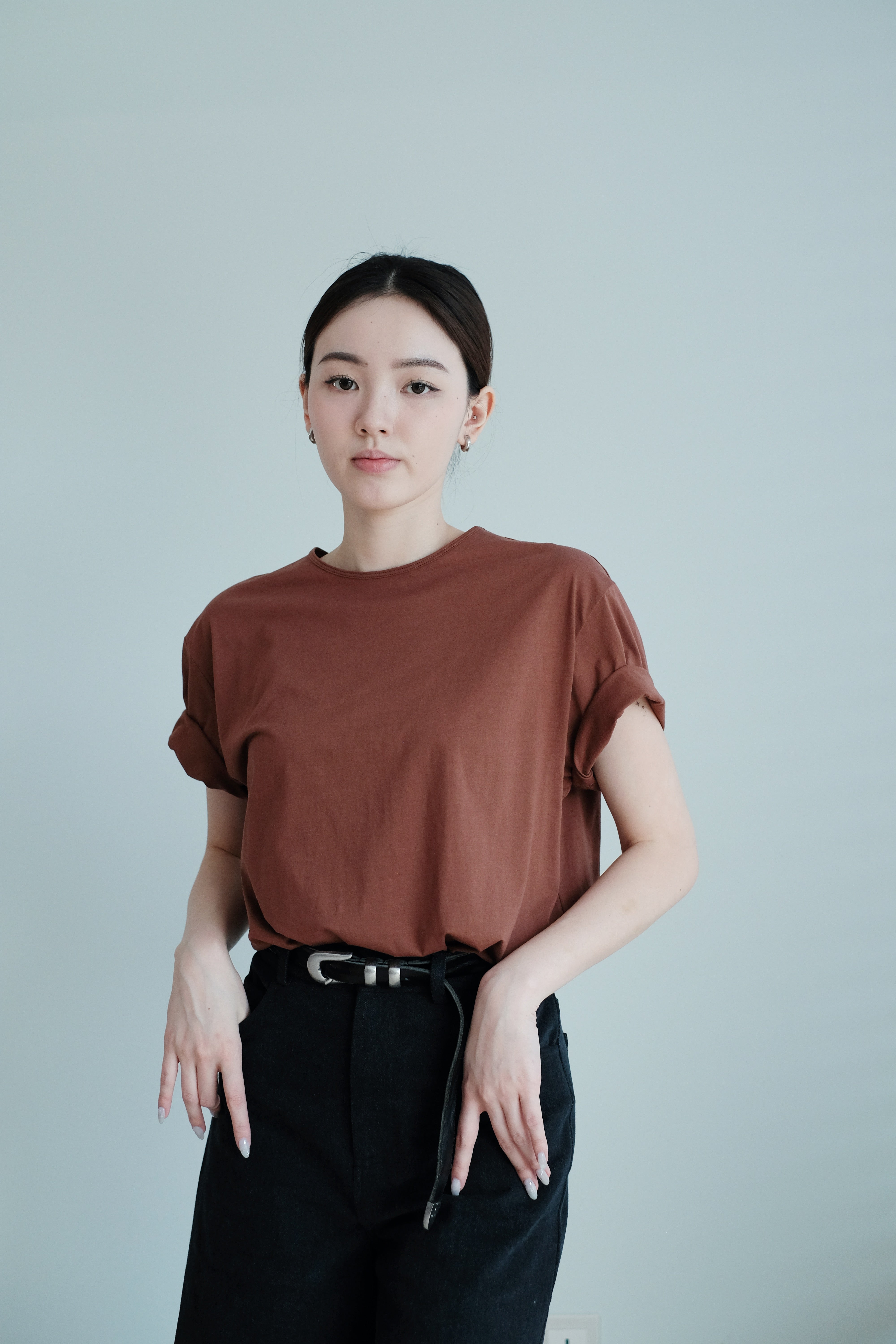 The warmth of caramel cocoa, reminiscent of afternoon sunlight lingering on a wooden table. Made from pure cotton, it’s soft and refined, carrying a quiet yet comforting strength. Whether worn alone or layered, it adds a touch of warmth to the everyday, giving minimalism a hint of storytelling.