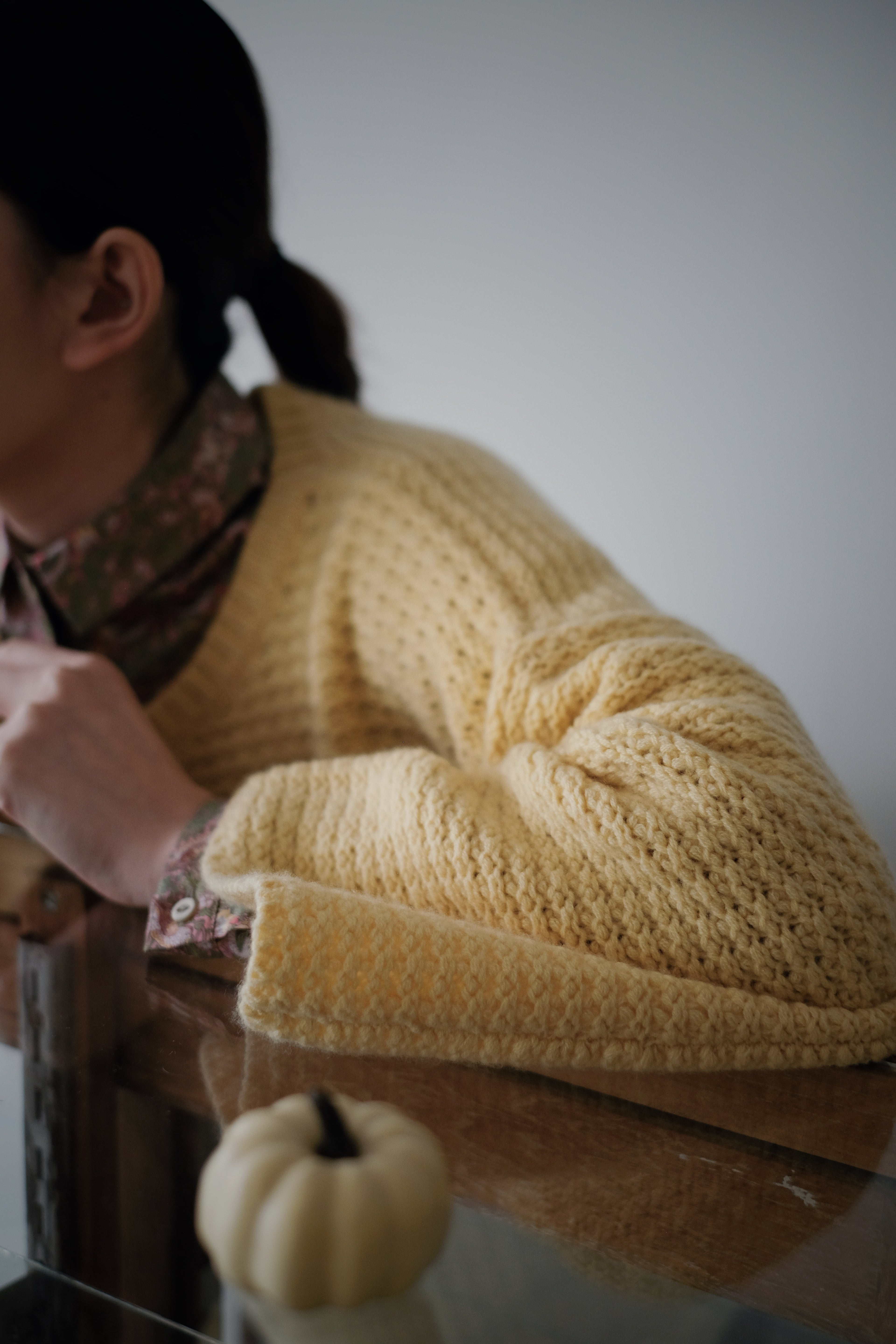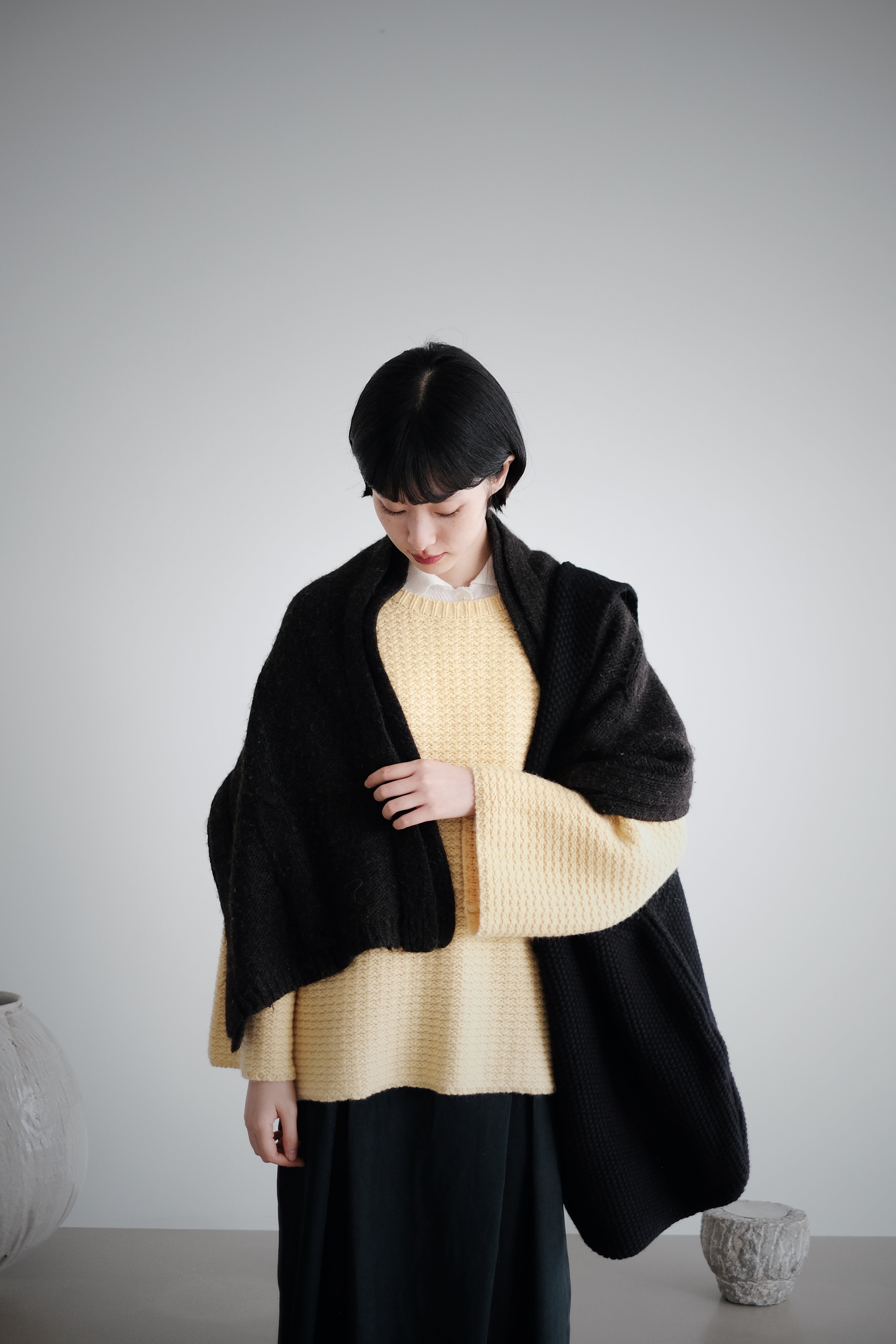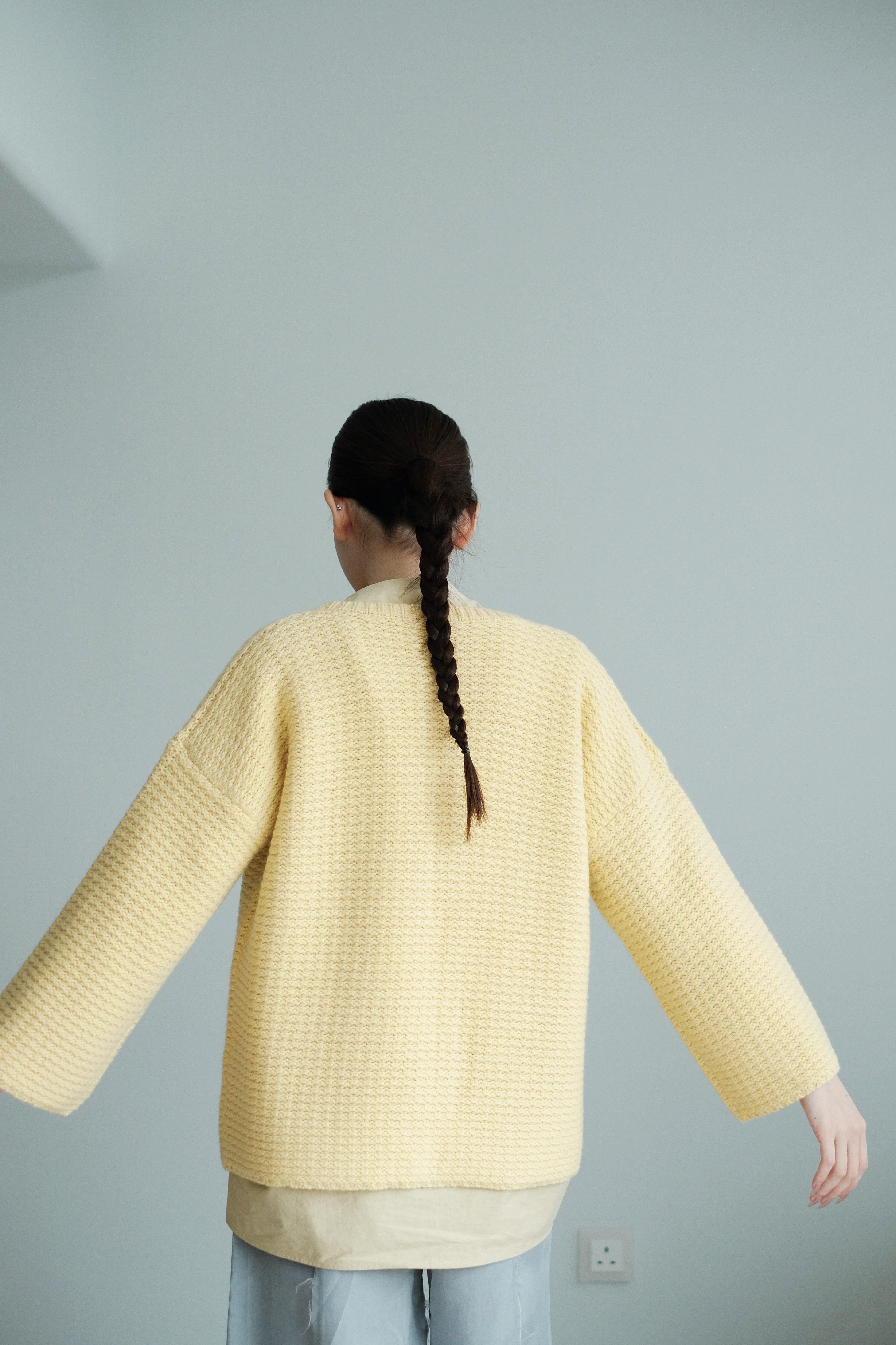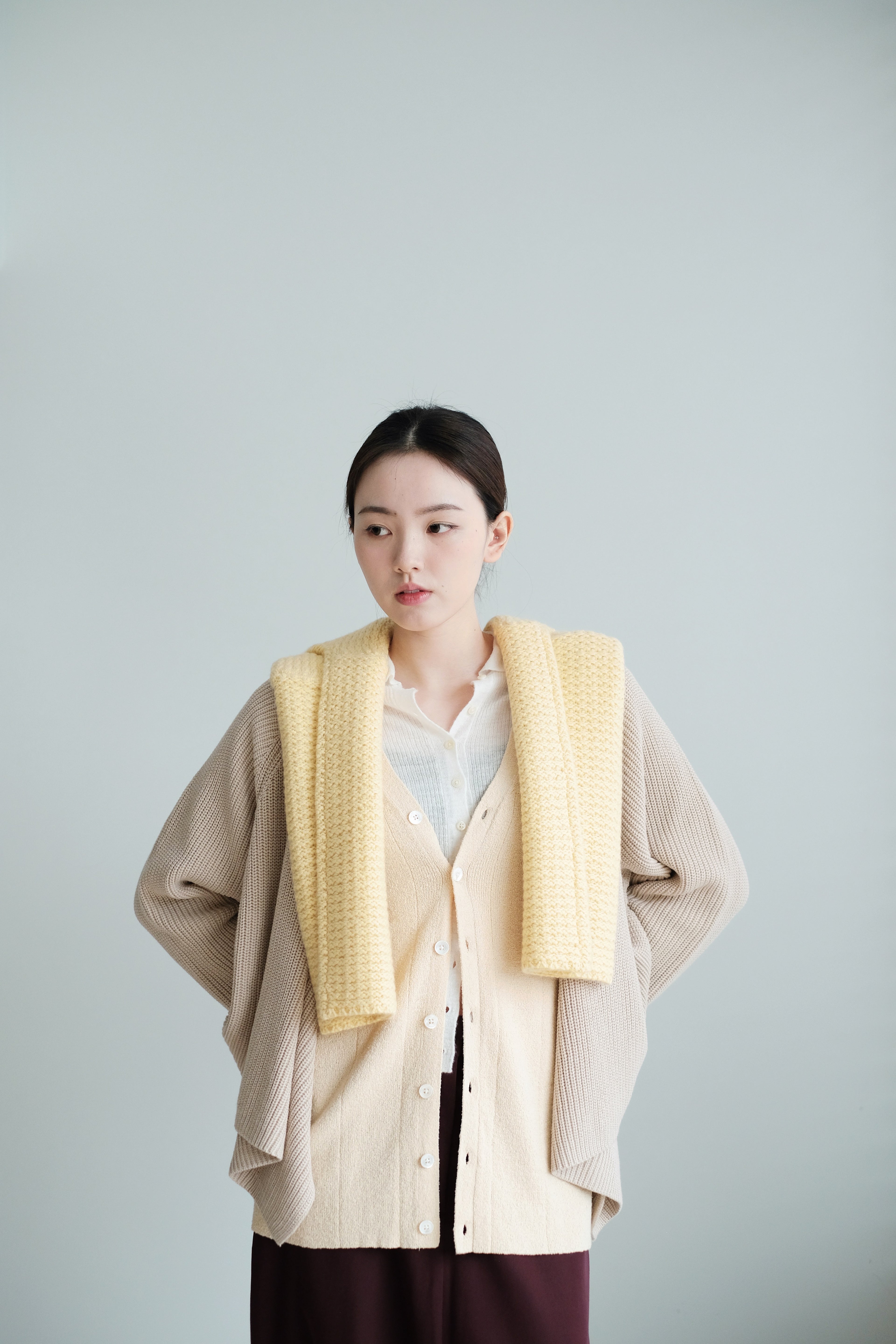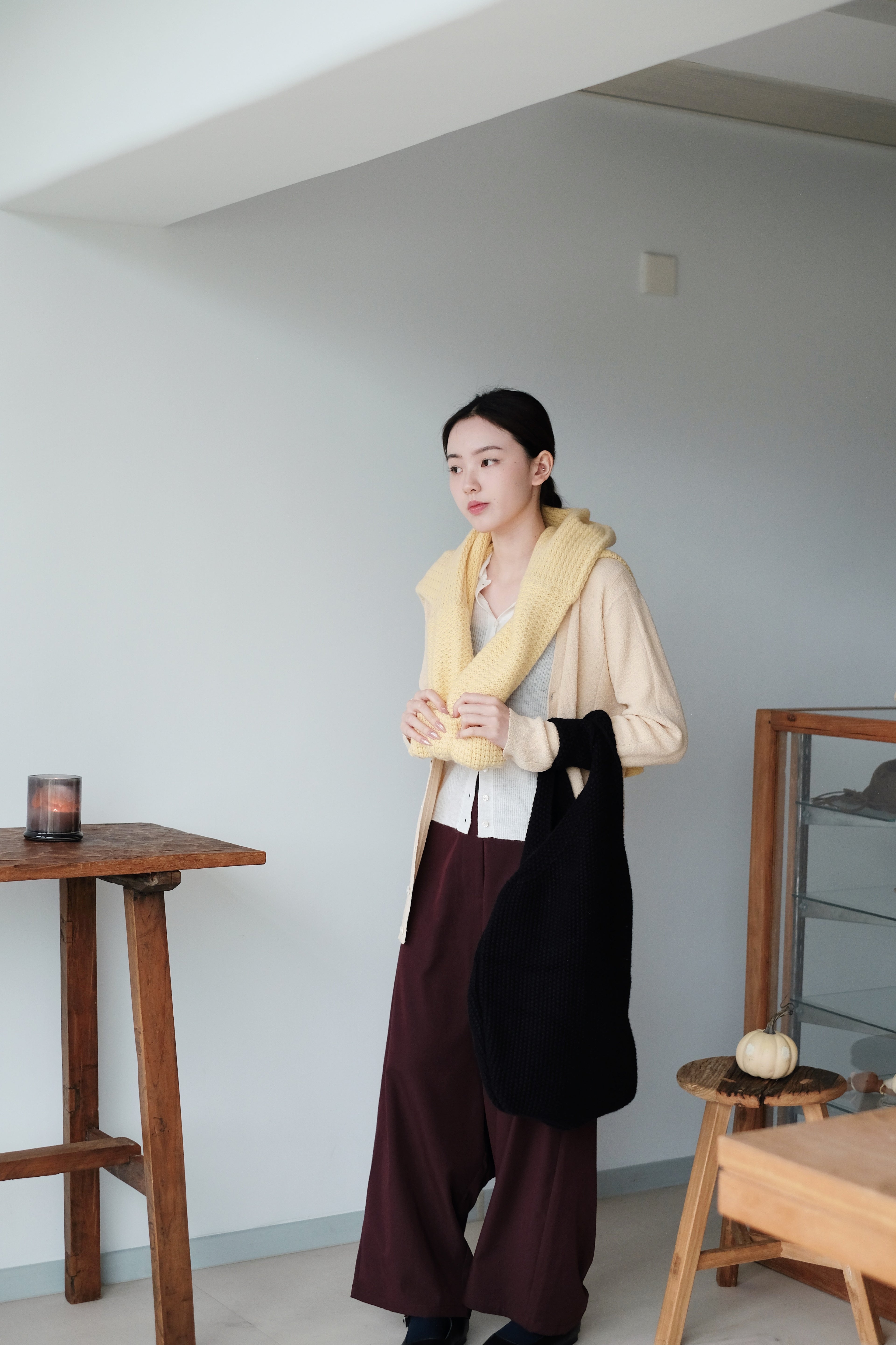 The knit structure adds natural elasticity and a quiet, matte sheen that moves with the light.