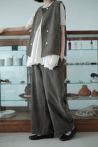 These lightweight corduroy pants are a spring-summer essential. With fine ribbing and a soft touch, they’re breathable and versatile—no longer just a winter fabric. The clean straight cut and elasticated waistband at the back make them easy to wear and effortlessly stylish.