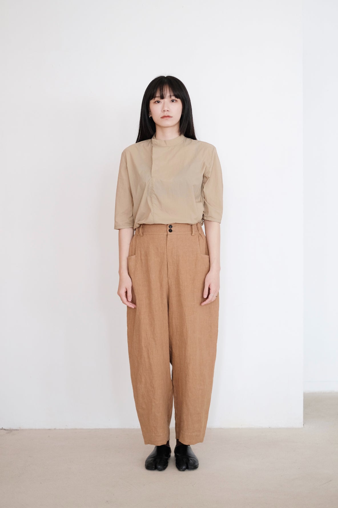 ・Full-length straight legs with side-seam pockets