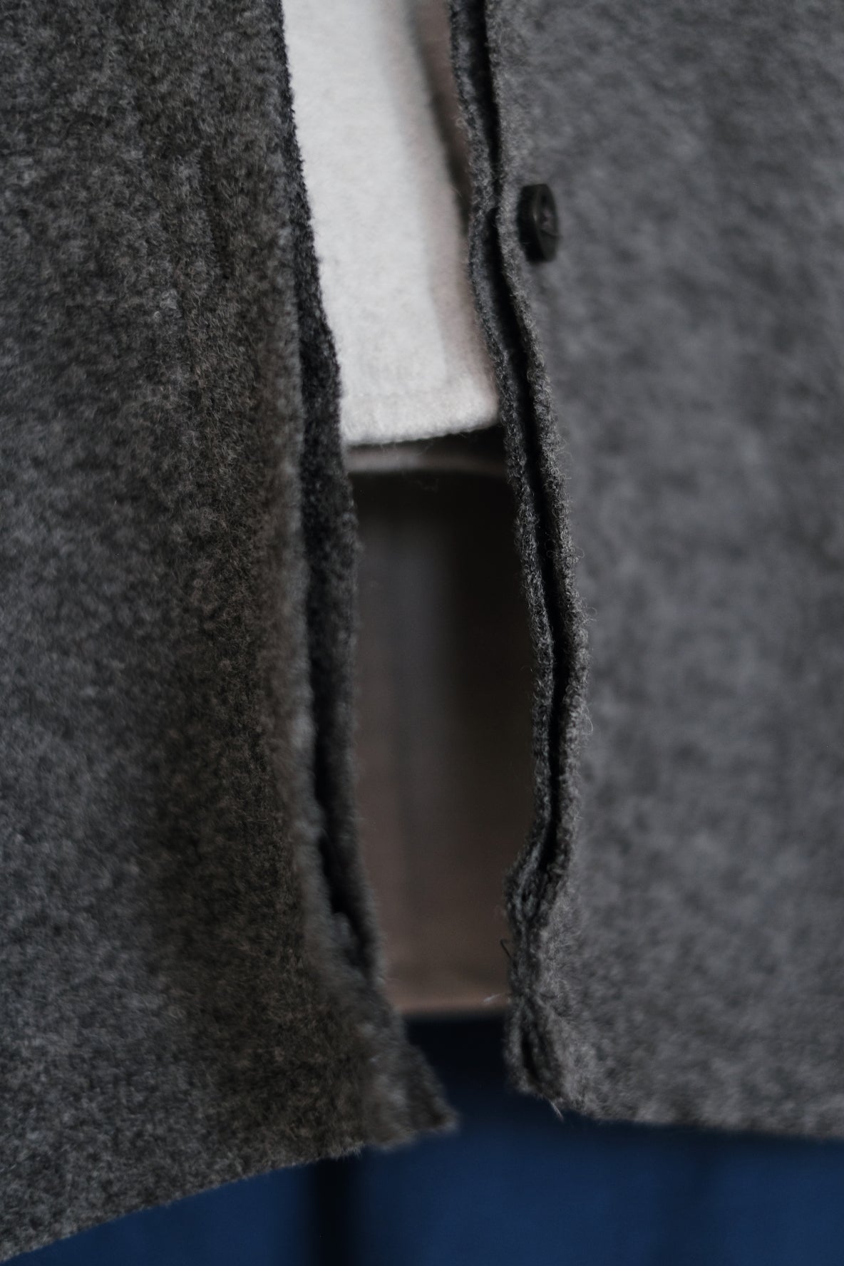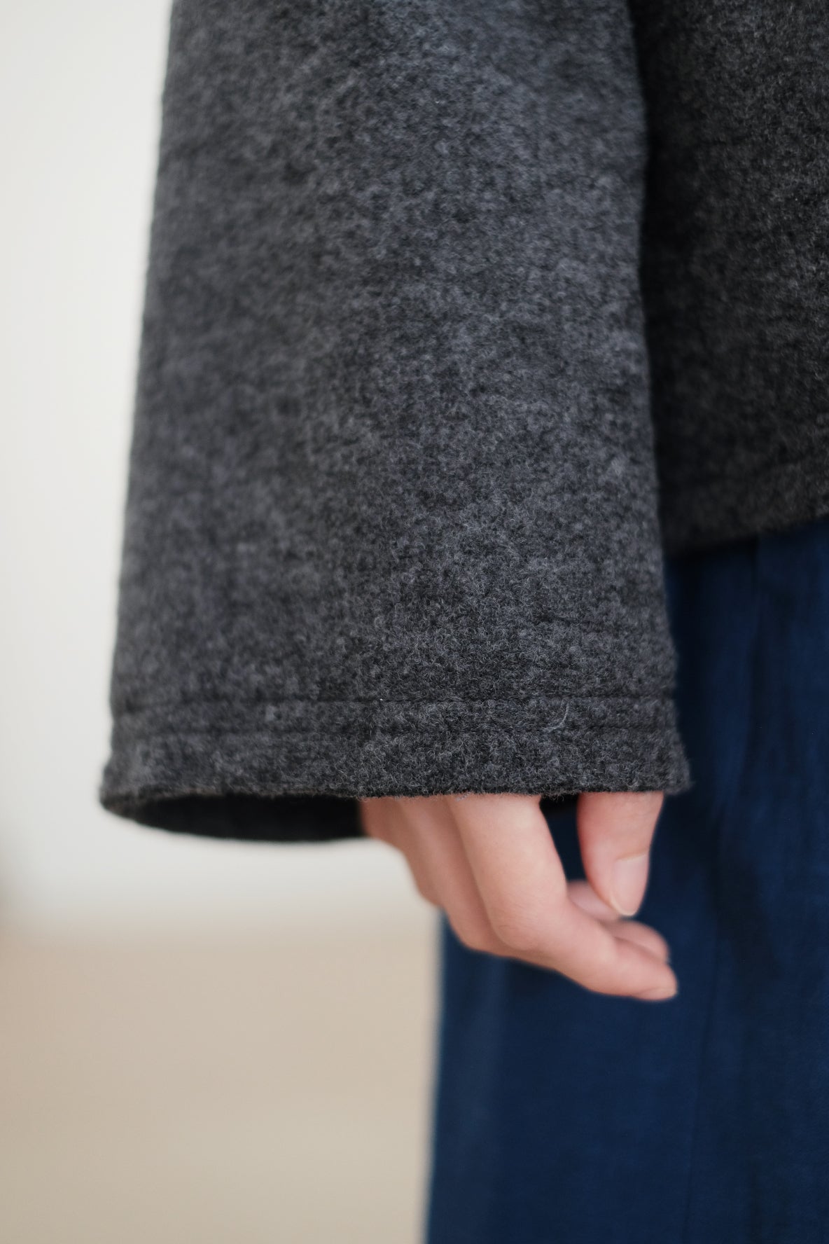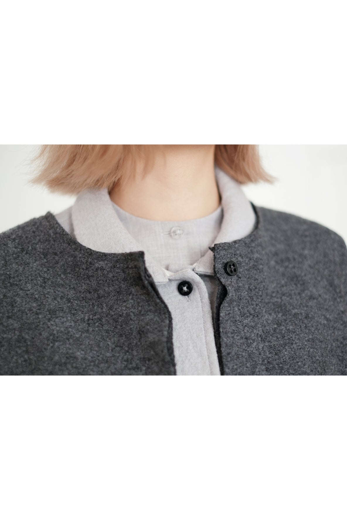 外套採用羊毛混紡布料製作