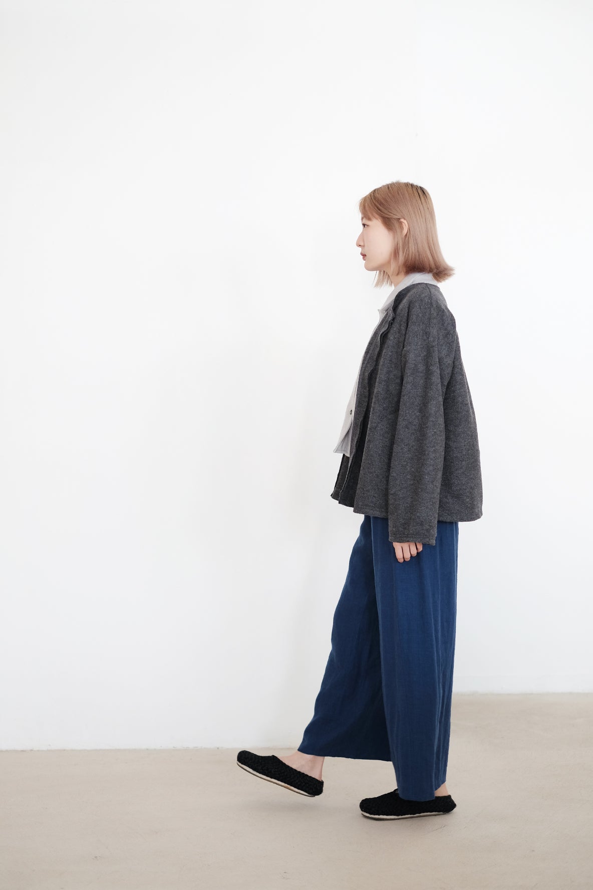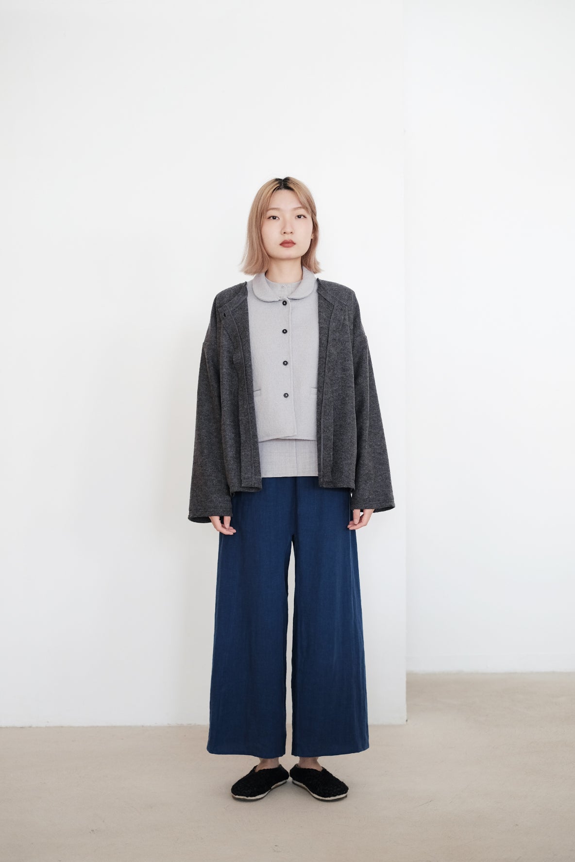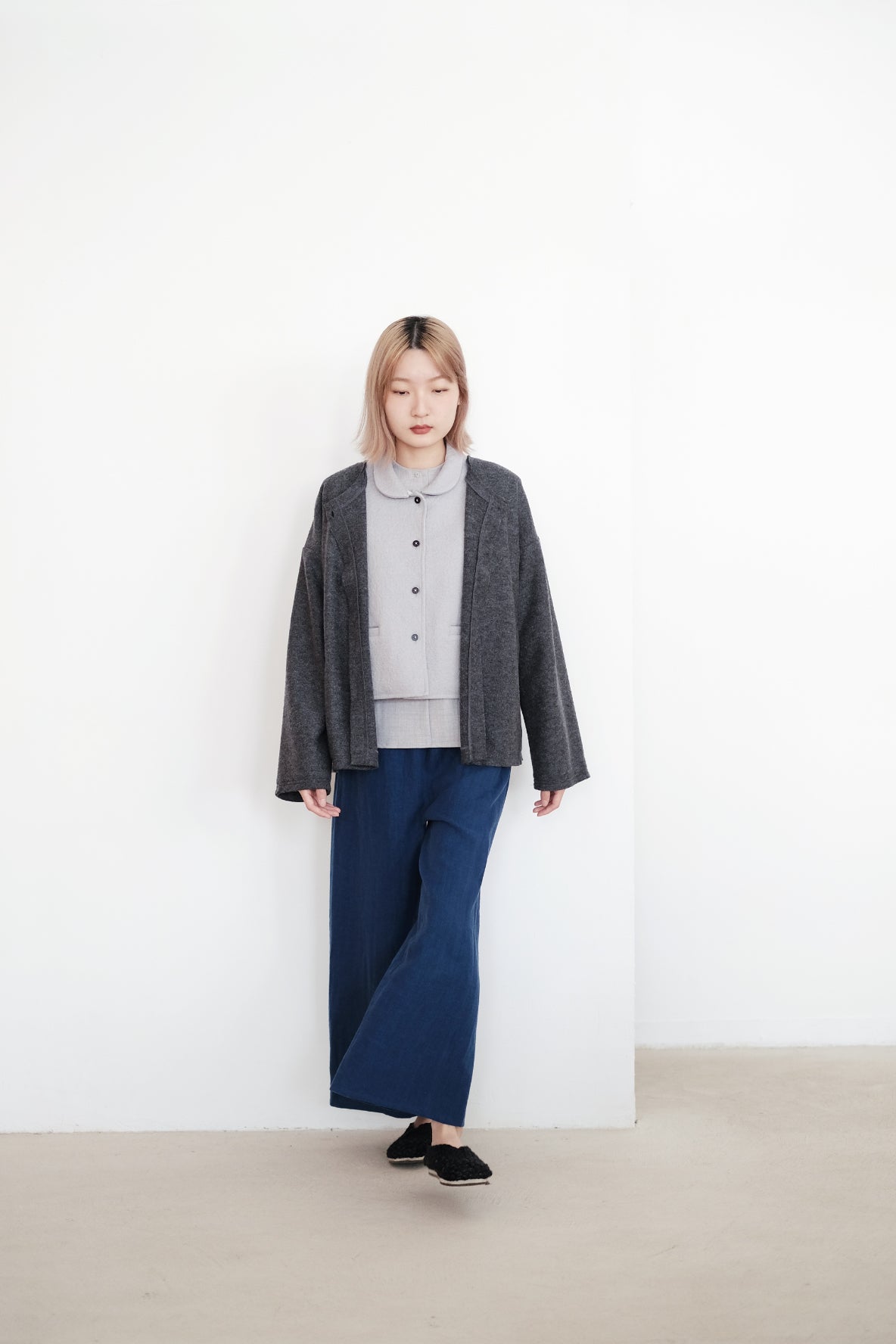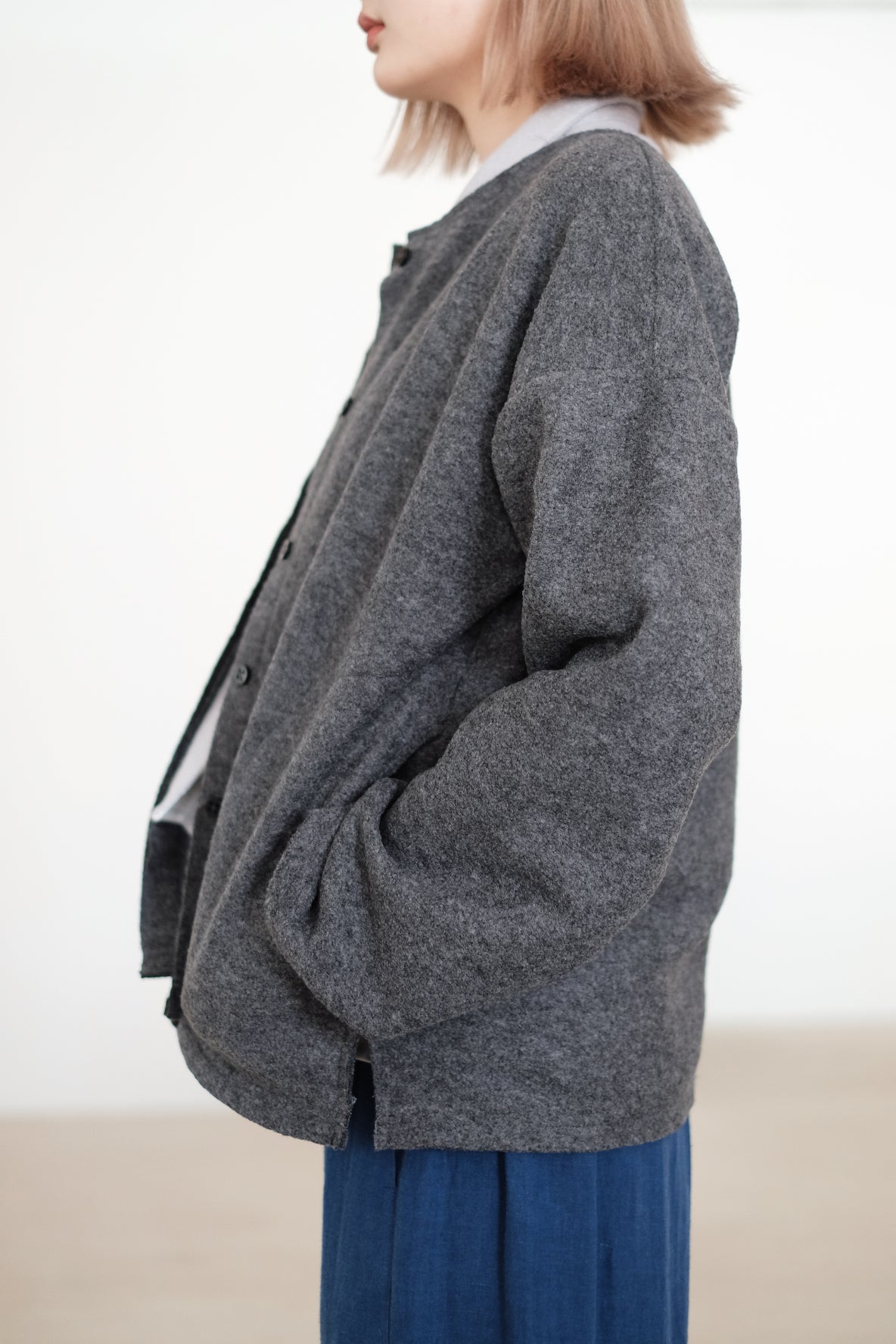 外套採用羊毛混紡布料製作