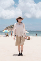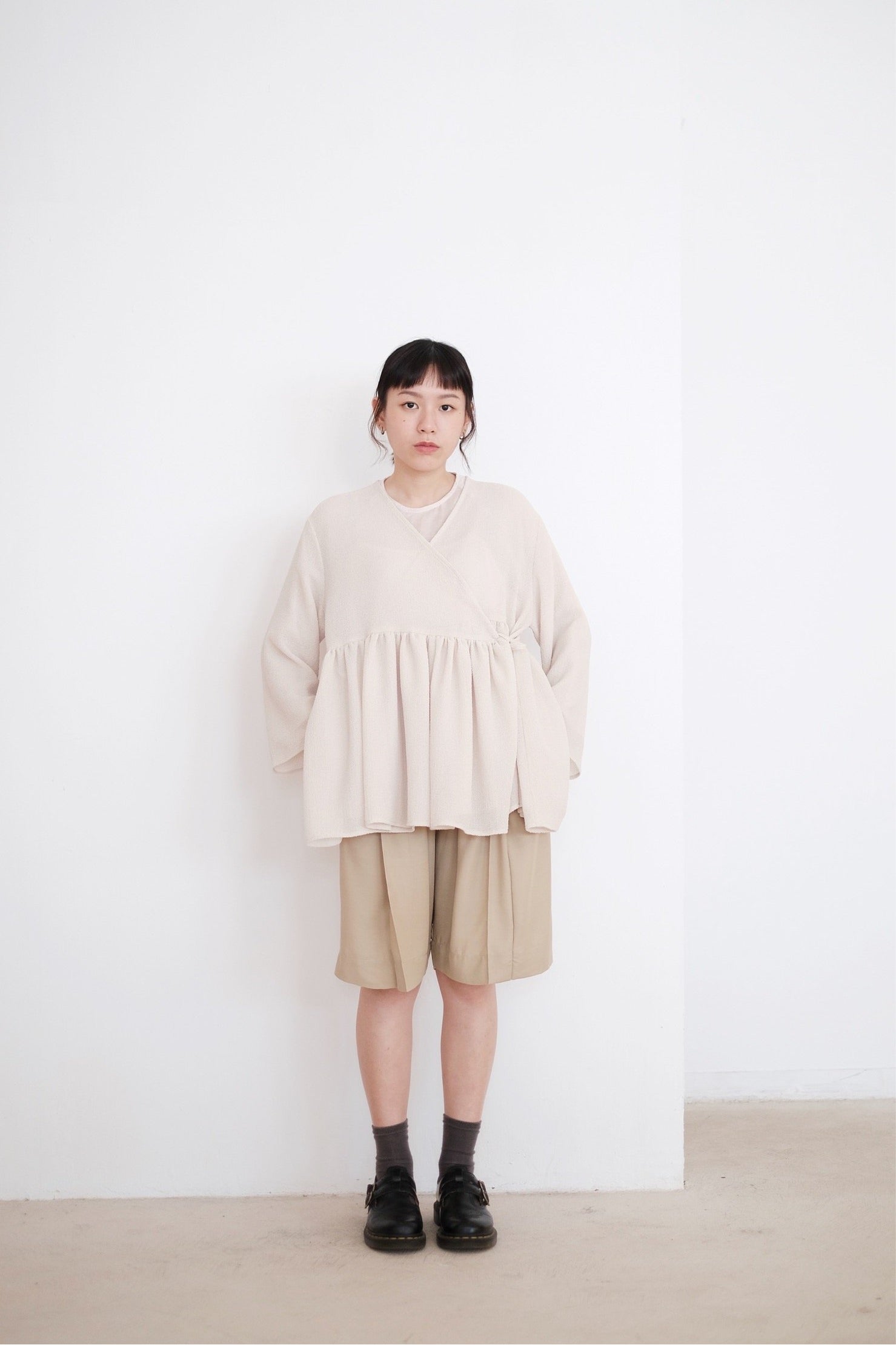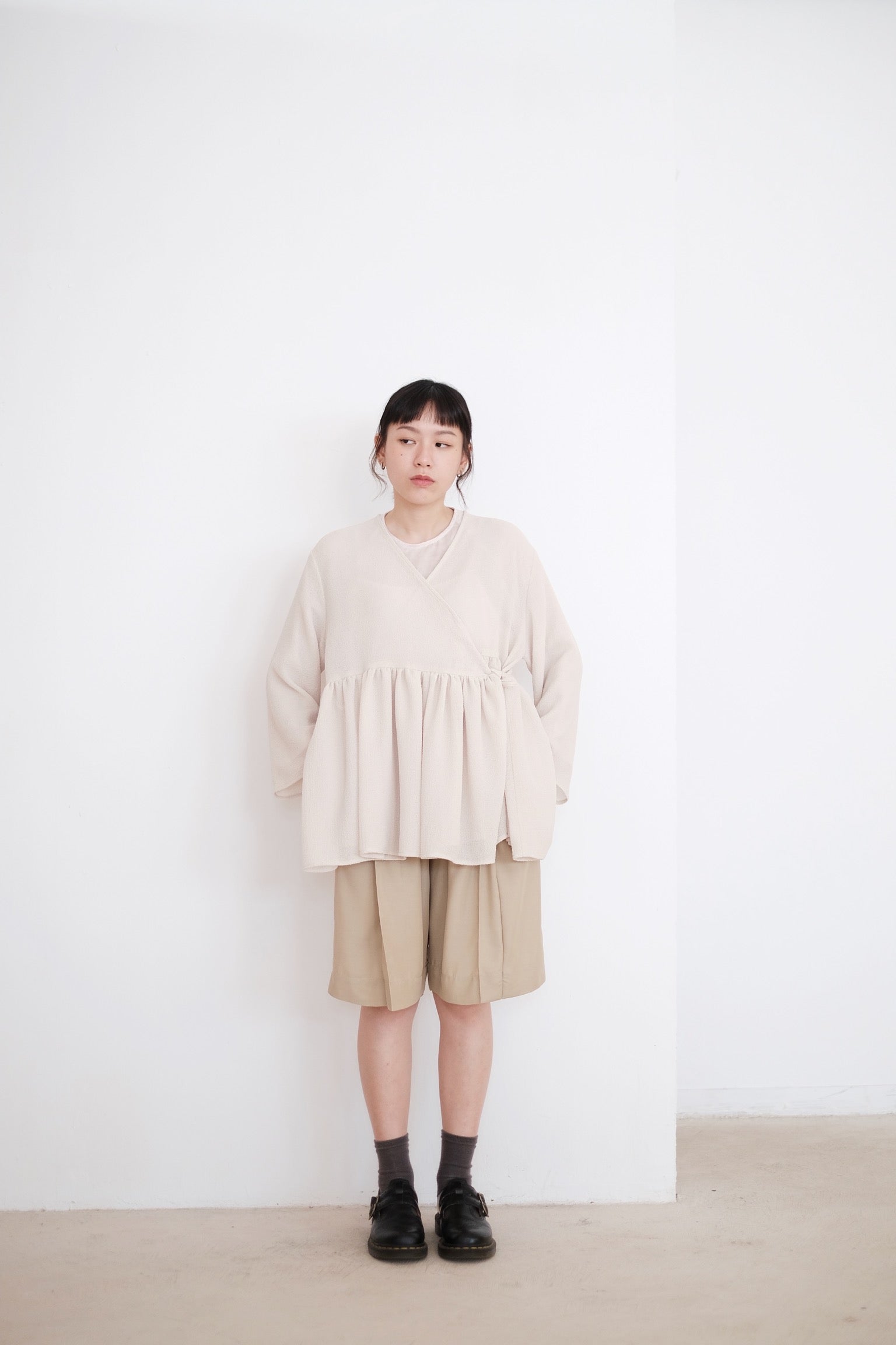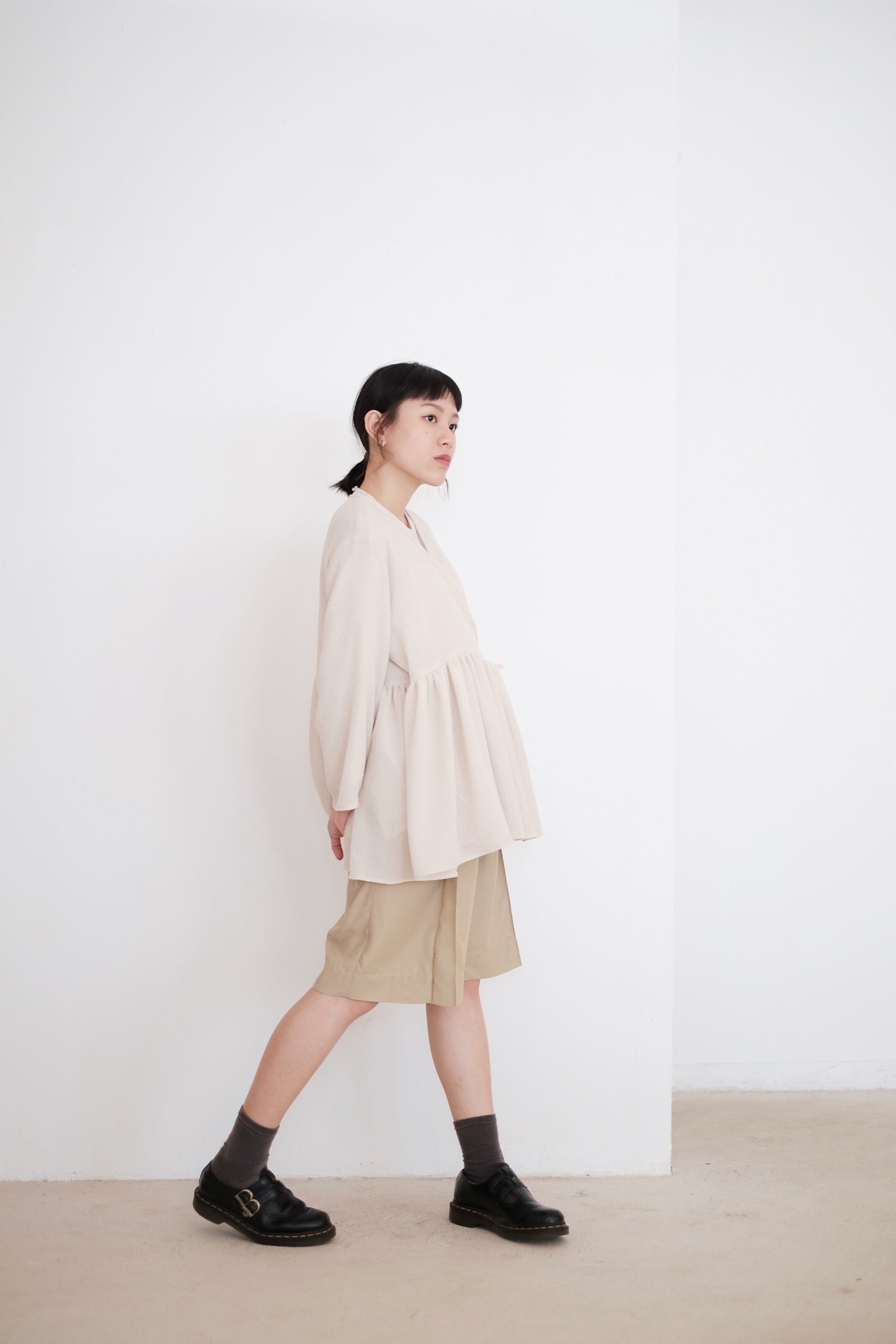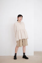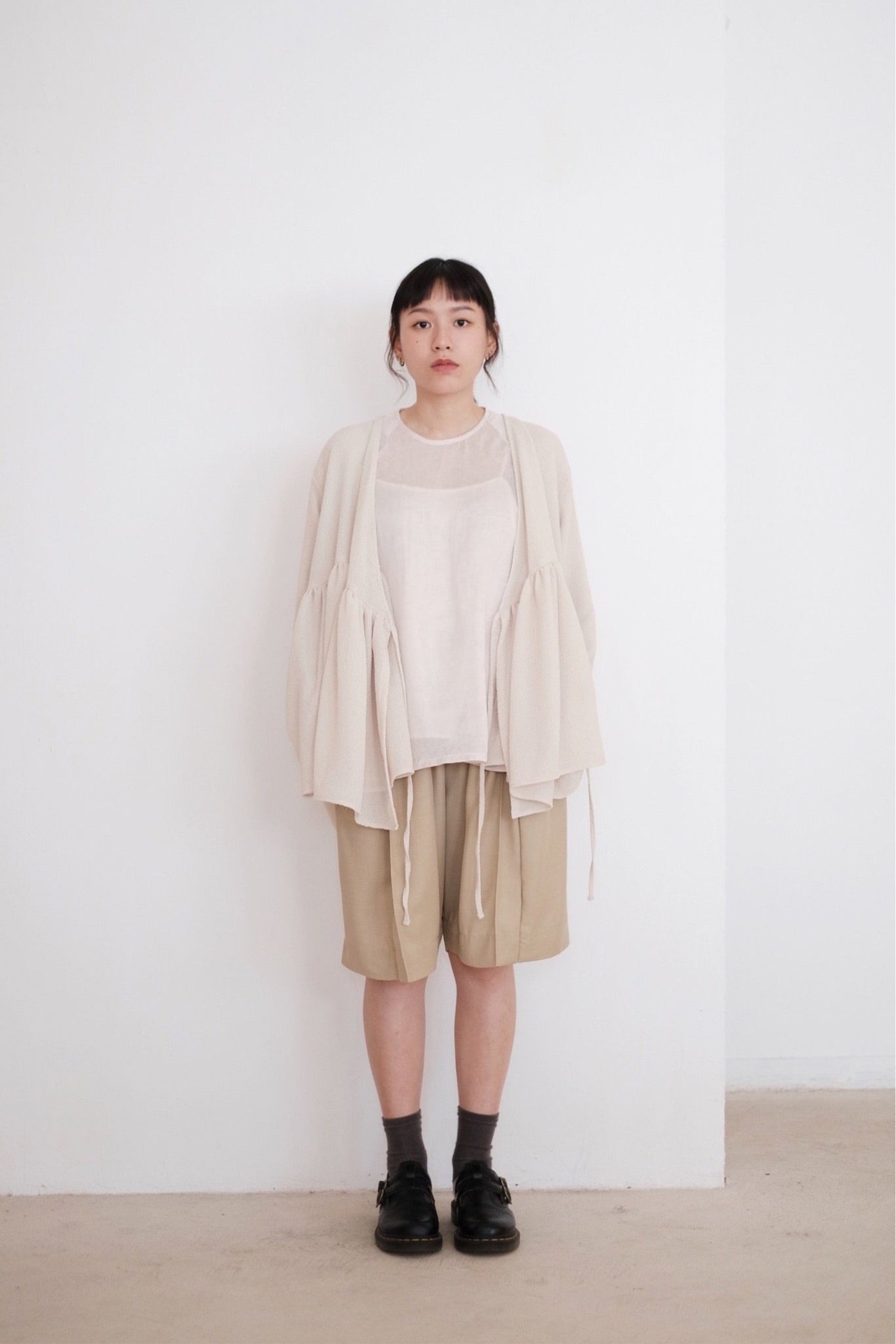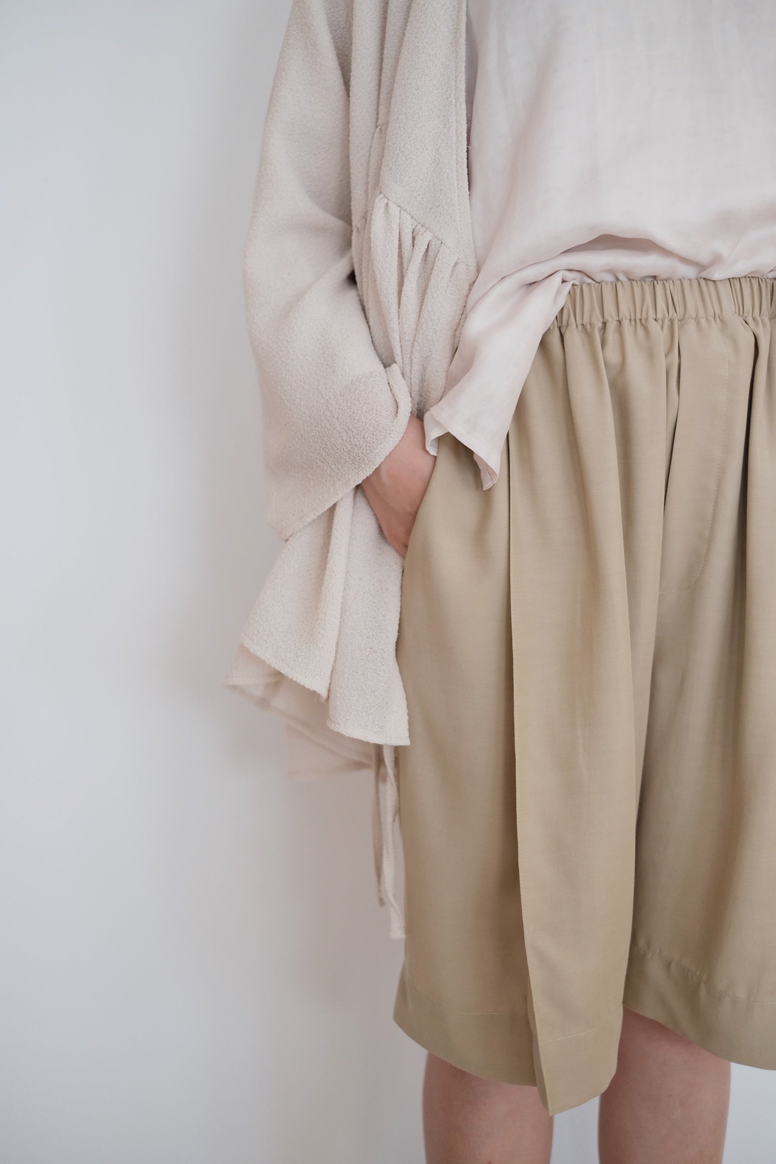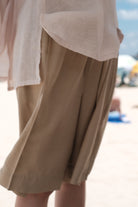 ARIA PLEAT-DETAIL SHORTS (BEIGE)