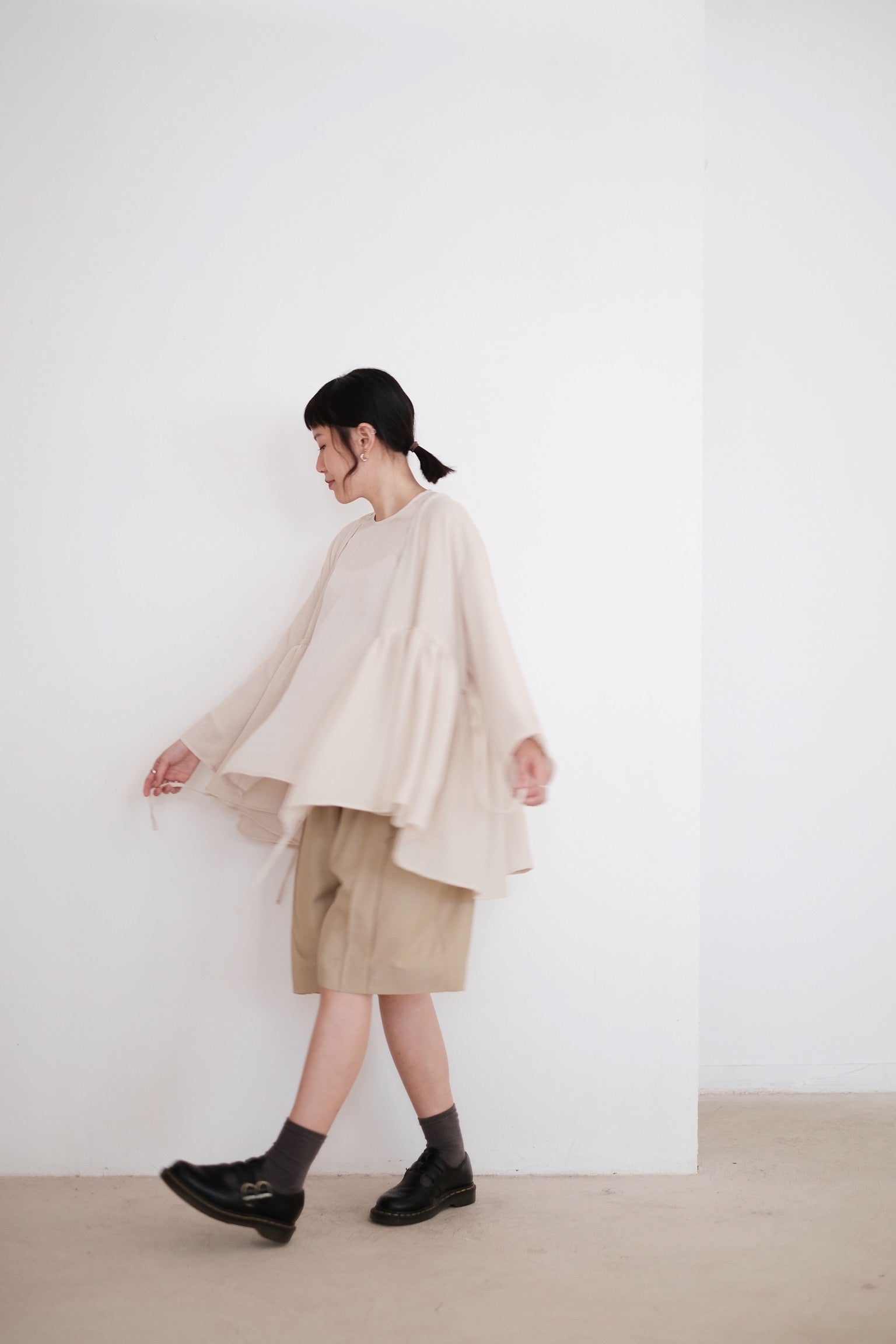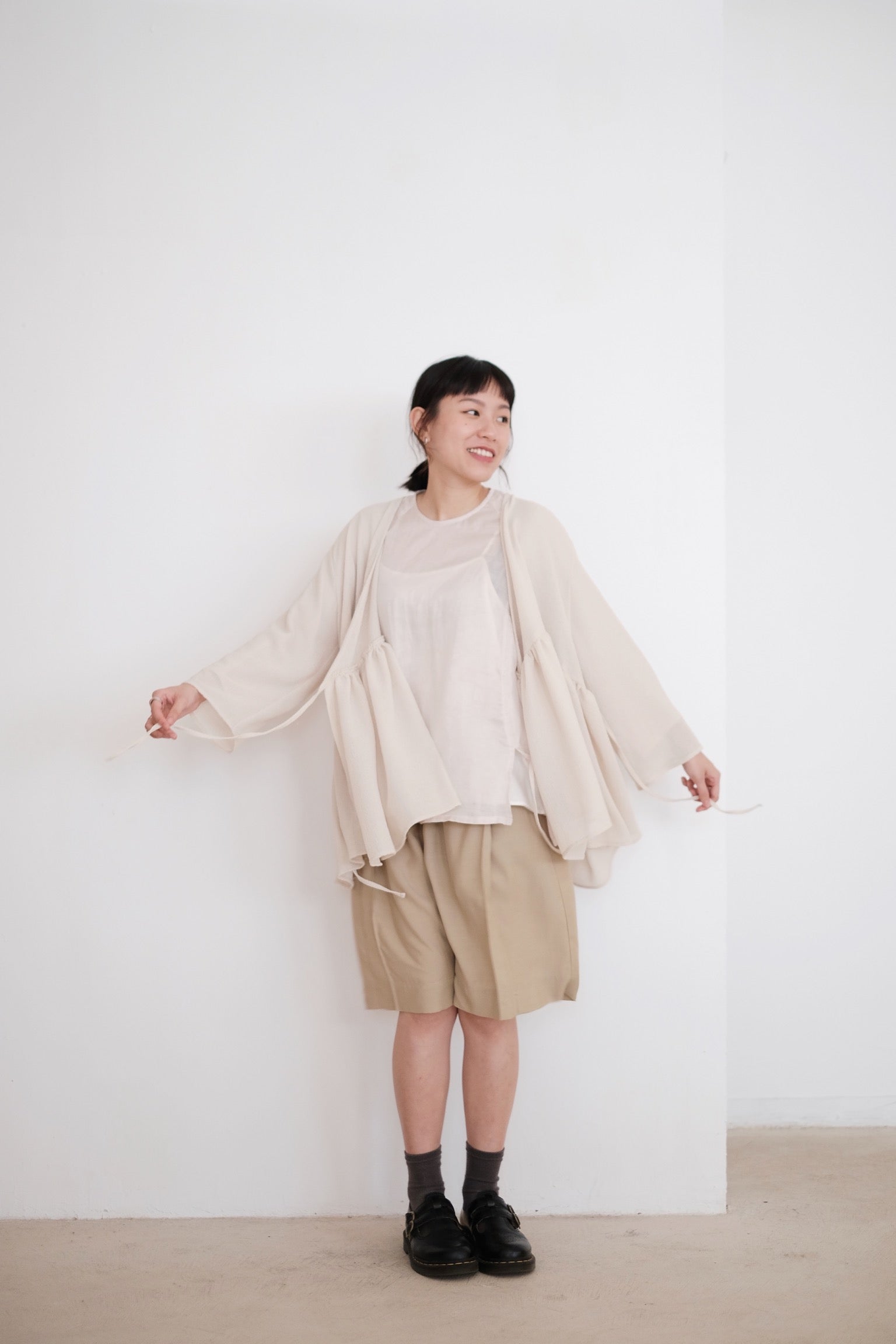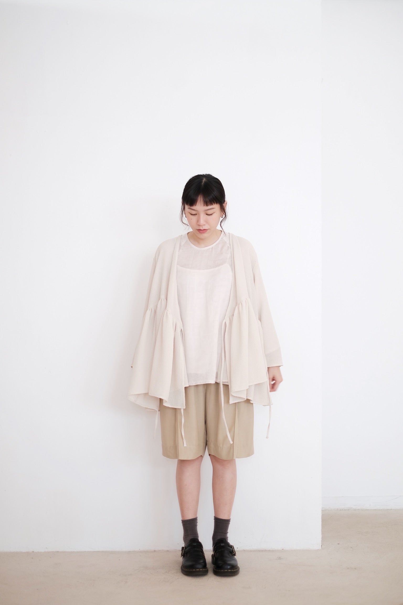 使用闊鬆直身的五分剪裁