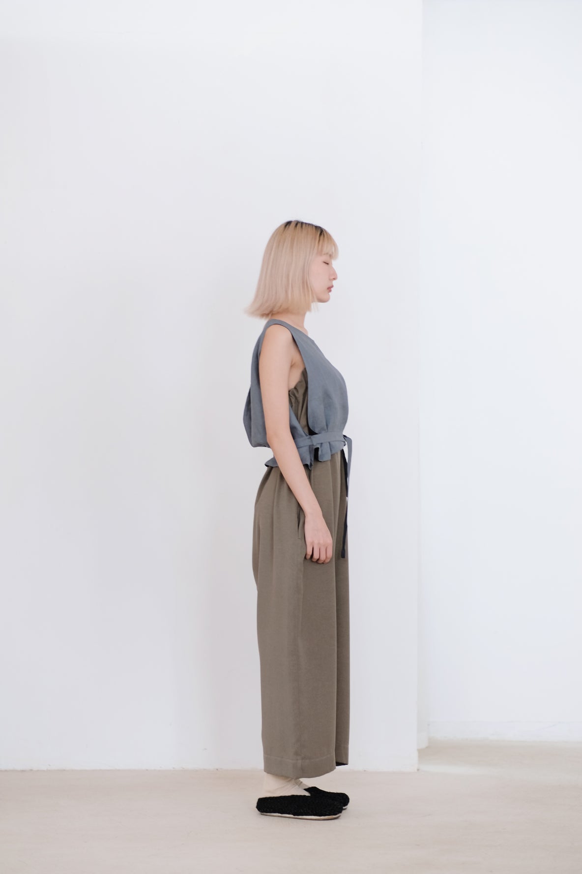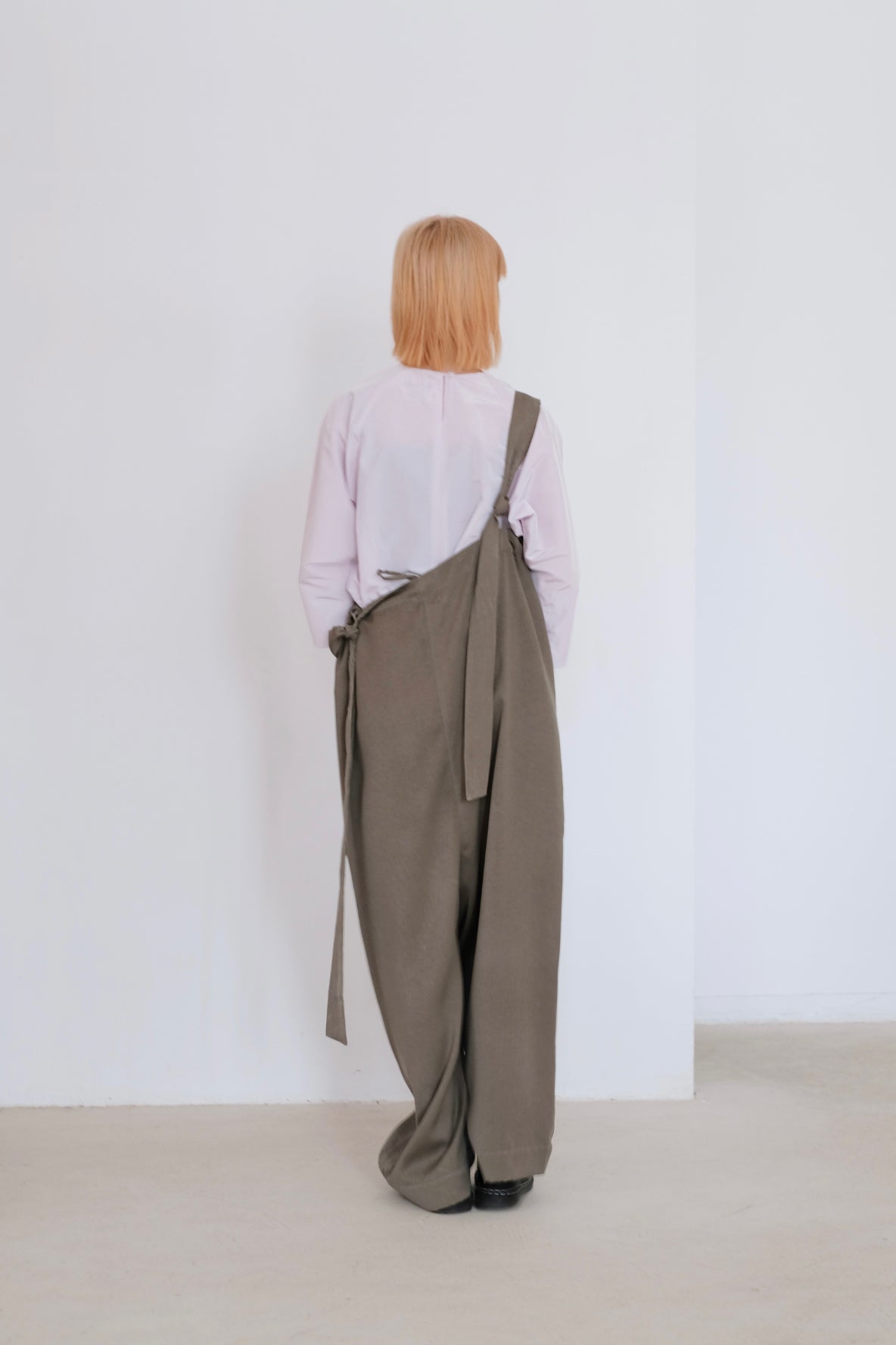 褲子肩帶接駁處可束起及肩帶綁繩設計