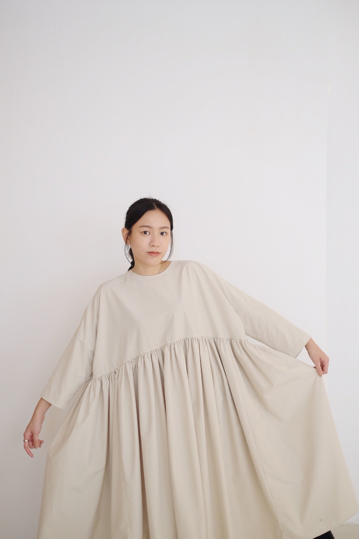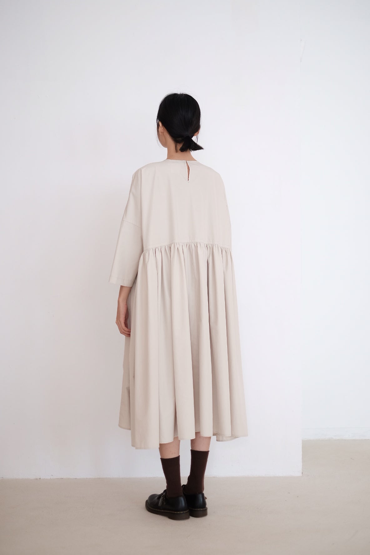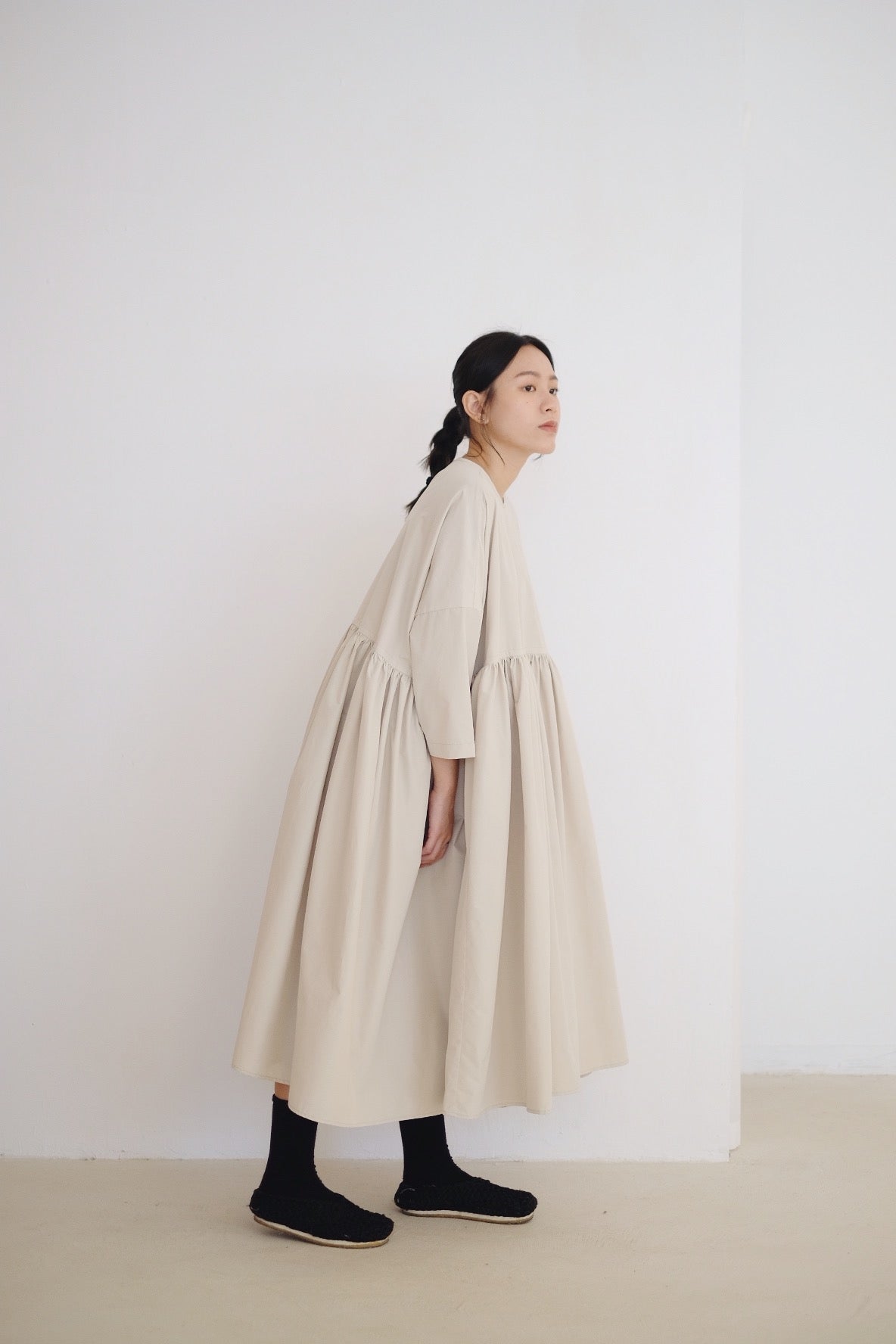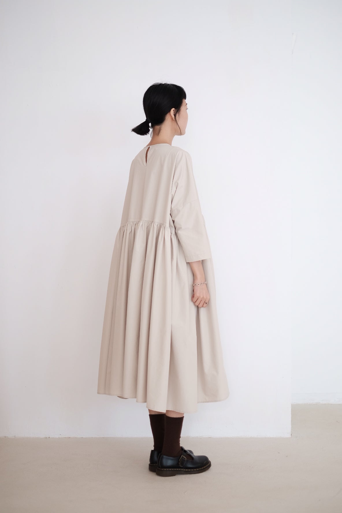 裙子的傘形剪裁和中長寬闊的下擺設計