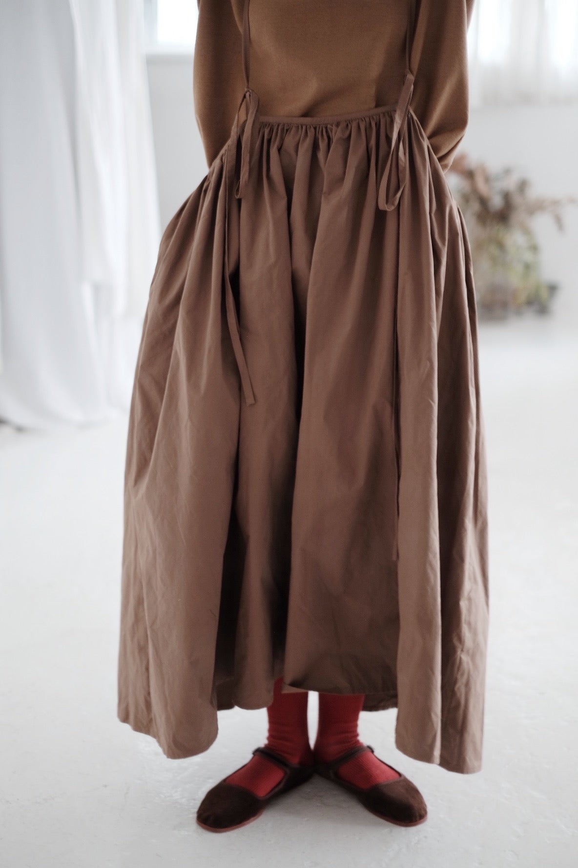 BROWN SKIRT WITH NARROW STRAPS