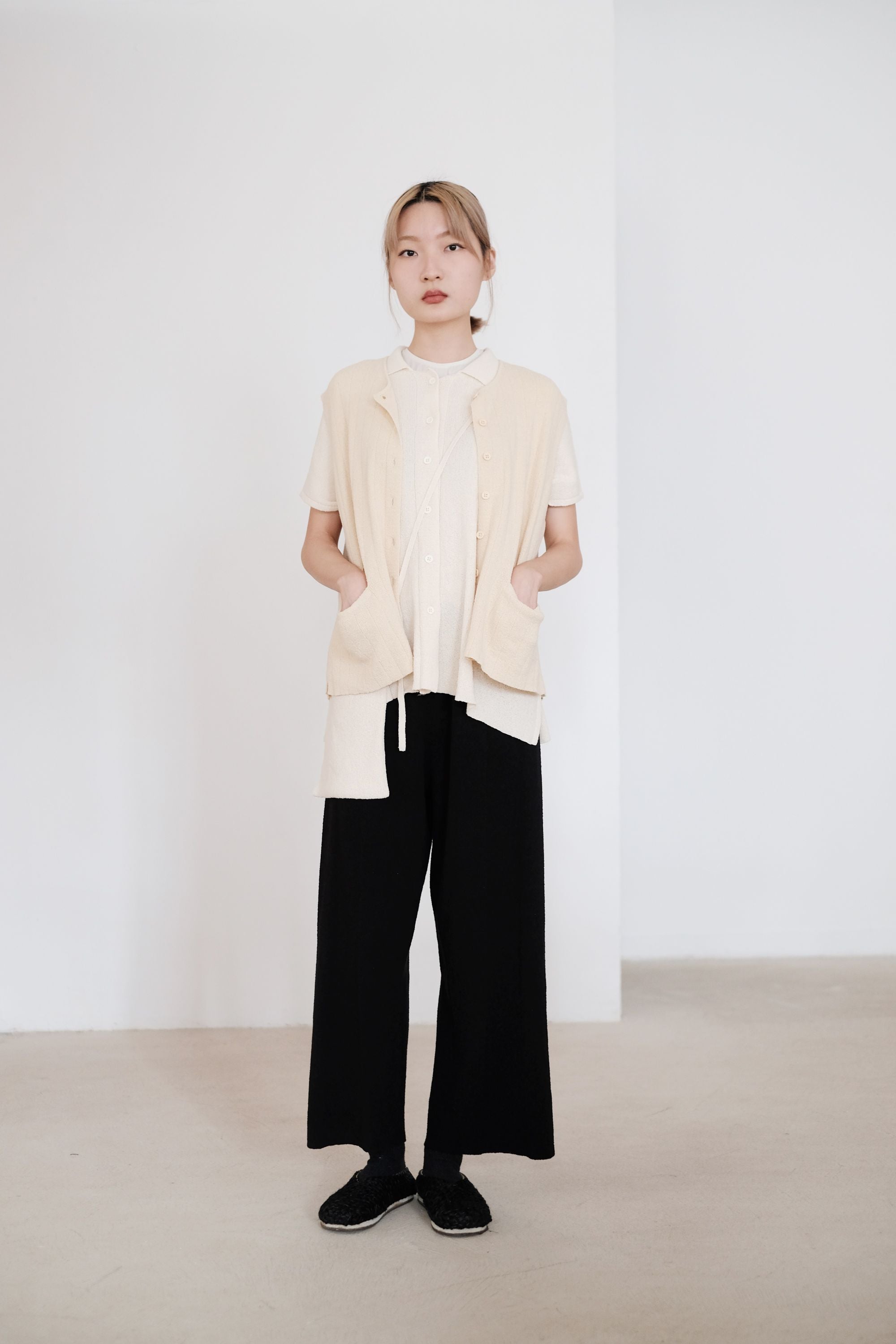 輕盈針織讓褲子鬆軟厚實卻不侷促