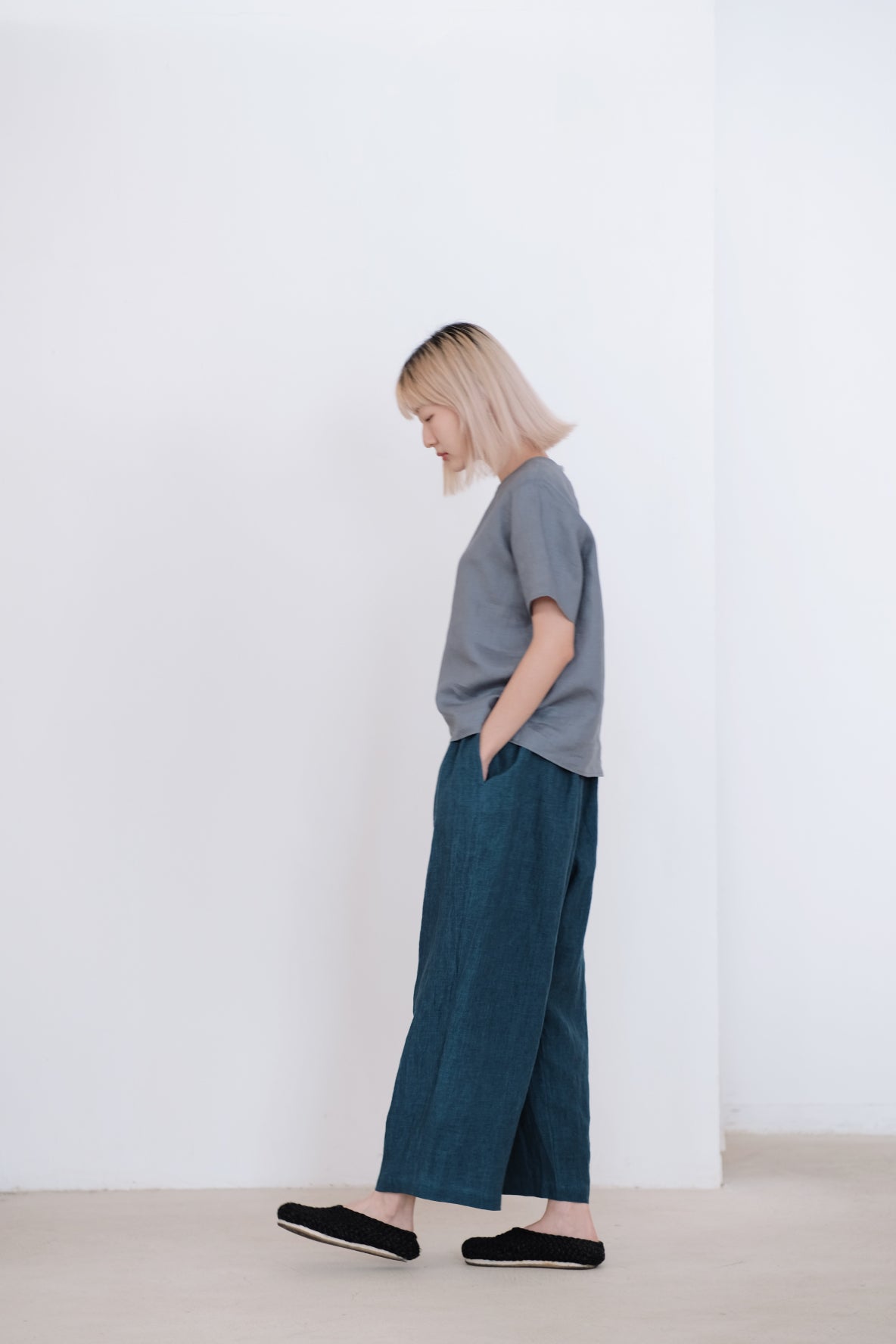 It features a dry texture and a casual texture of 100% linen with a scrubbing feeling. It is a slightly thin material that is easy to use with 40 single thread.