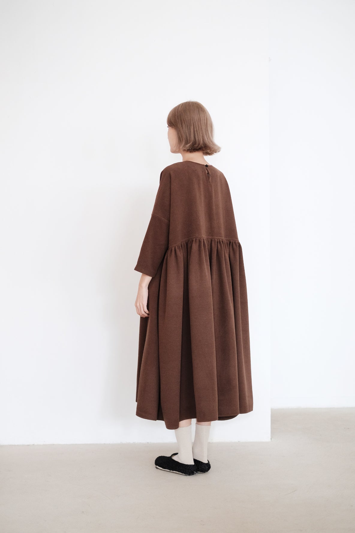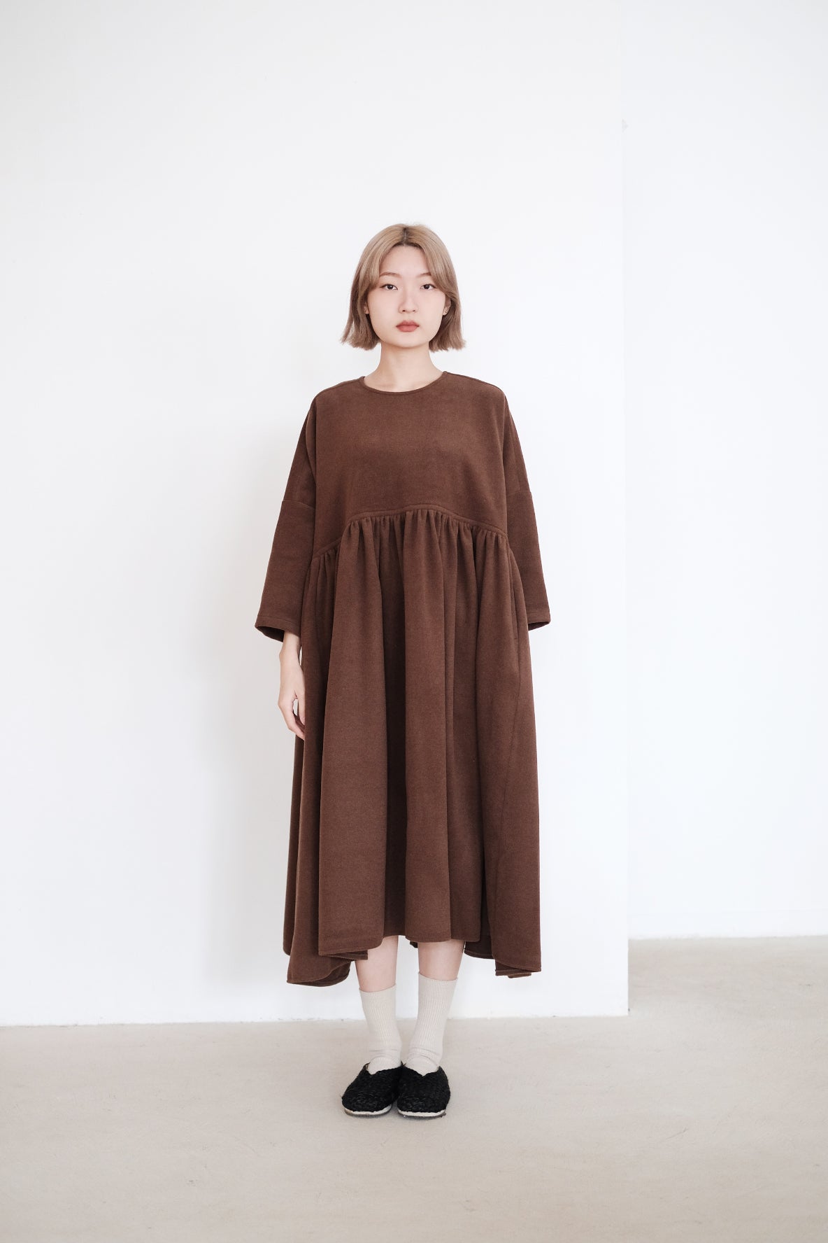 裙子的傘形剪裁和中長寬闊的下擺設計
