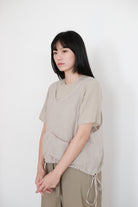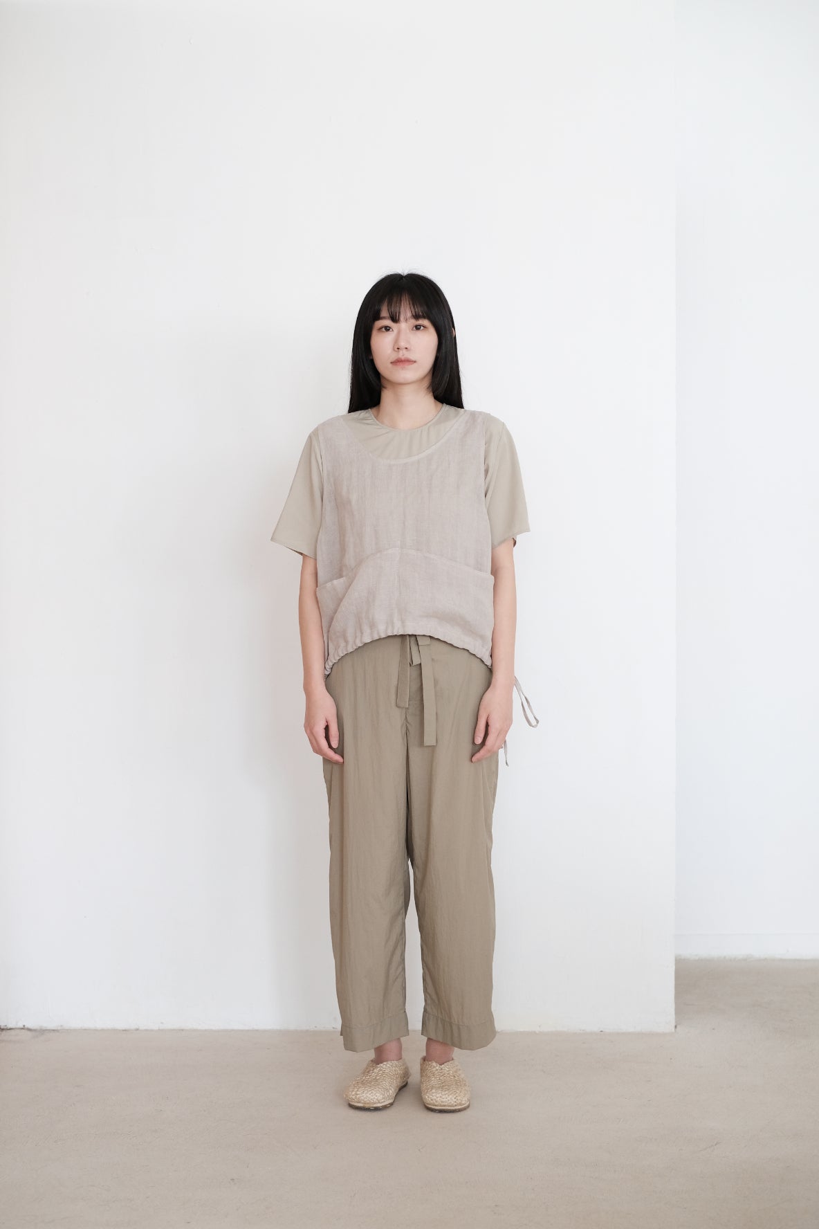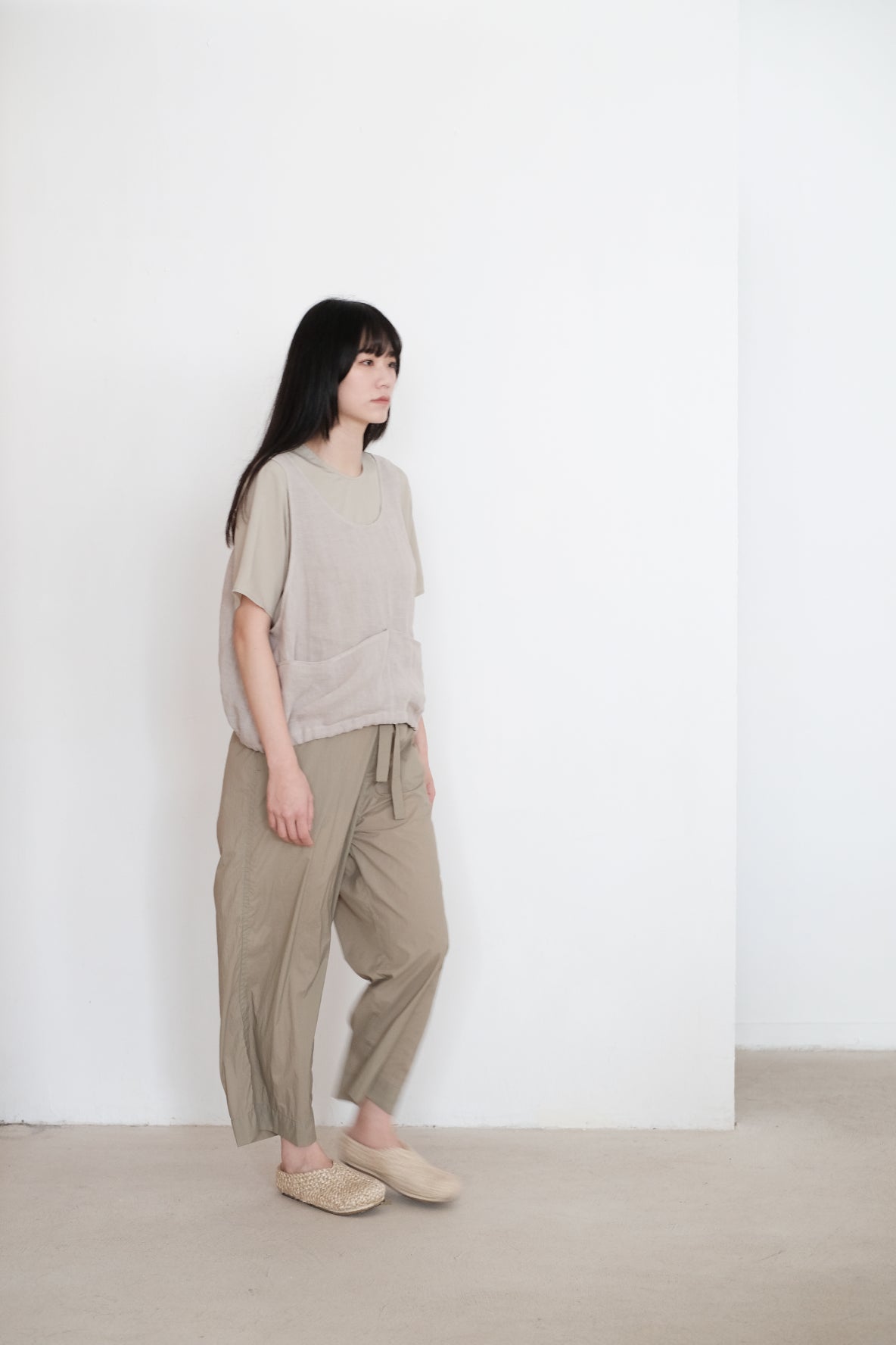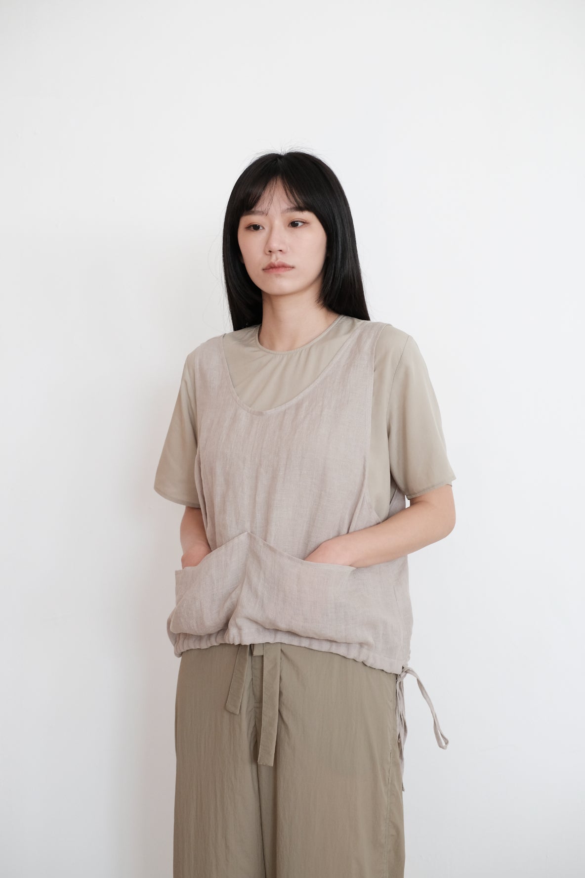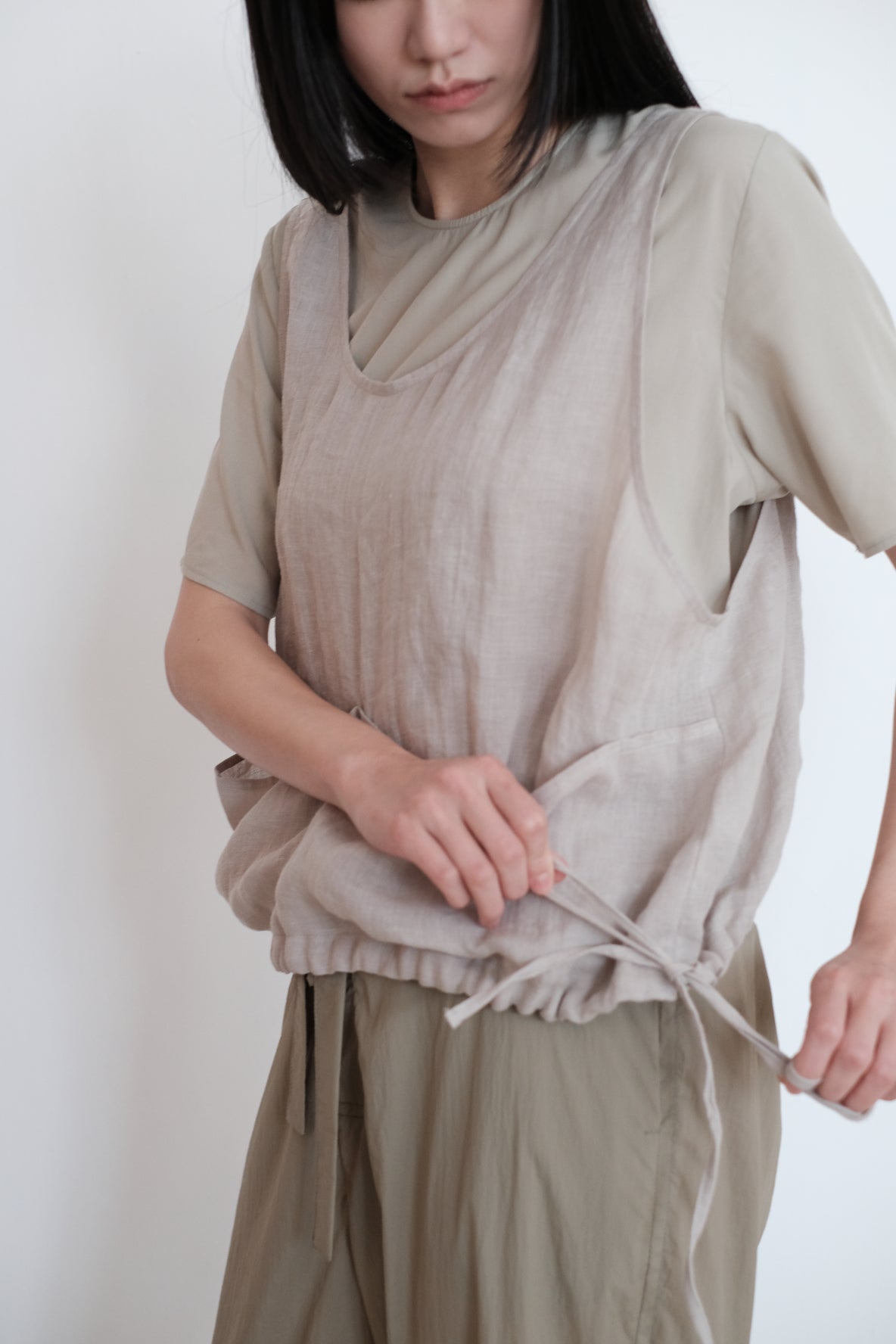 ・Cut for a relaxed, and short cropped vest with a pair of flat pocket on the front